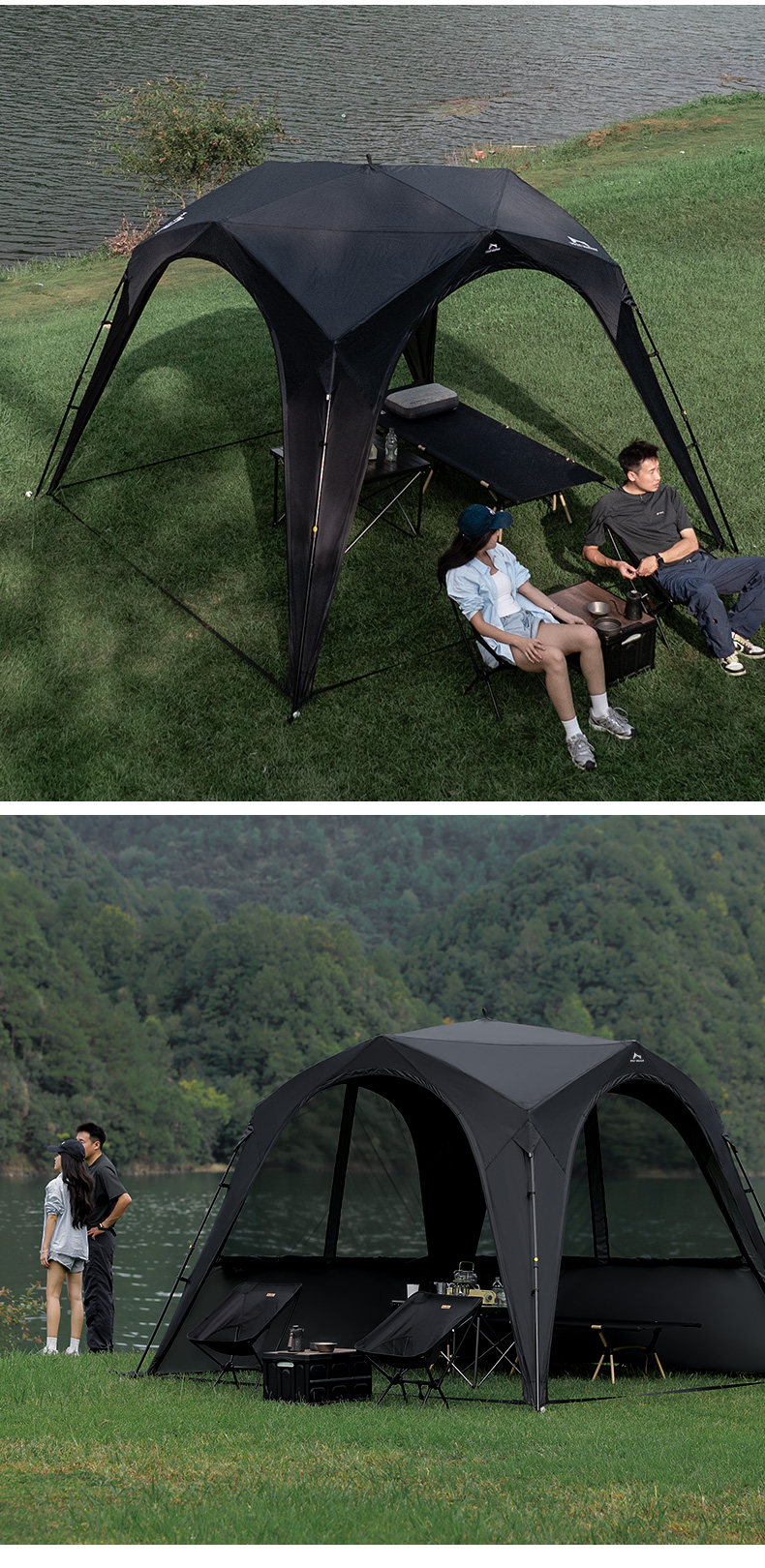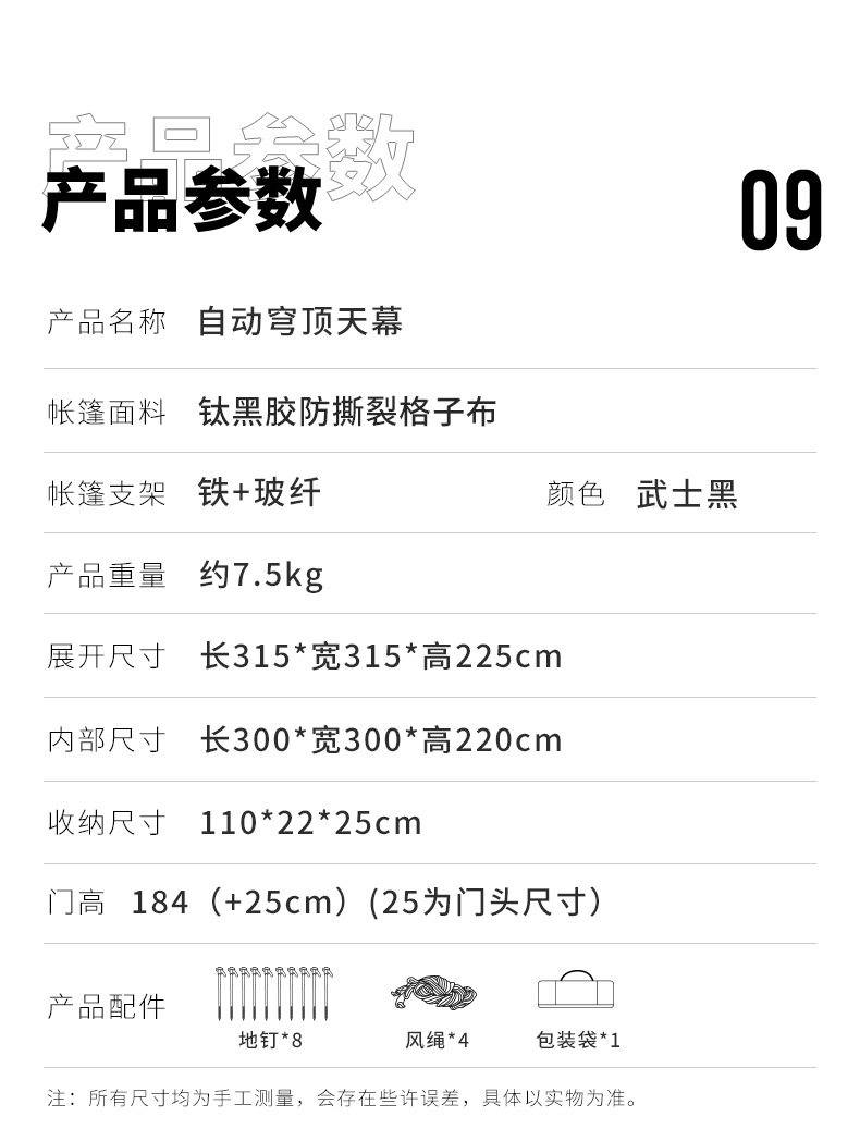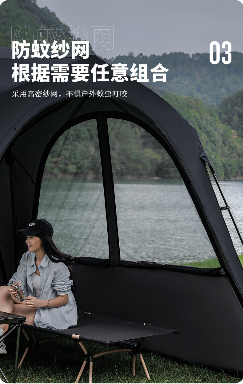 狼行者自動穹頂天幕速開一體式帳篷戶外露營鈦黑膠遮陽棚防曬防雨