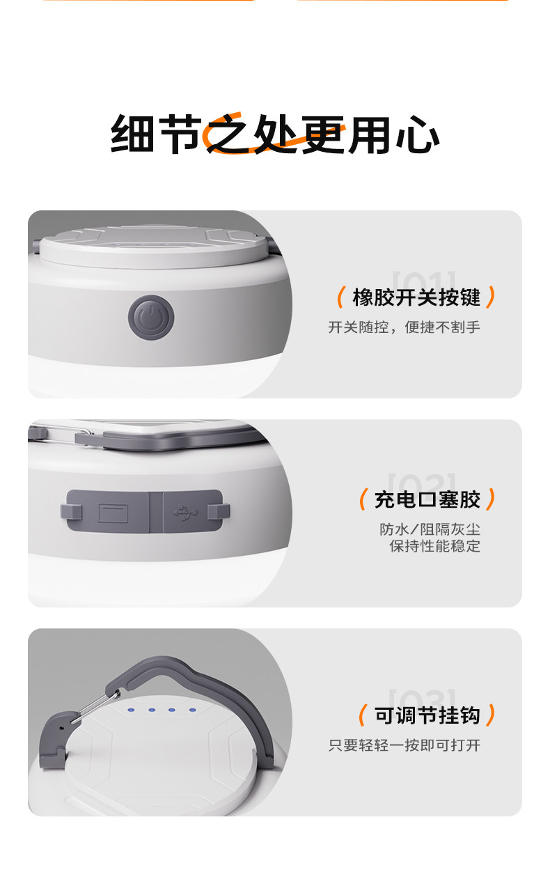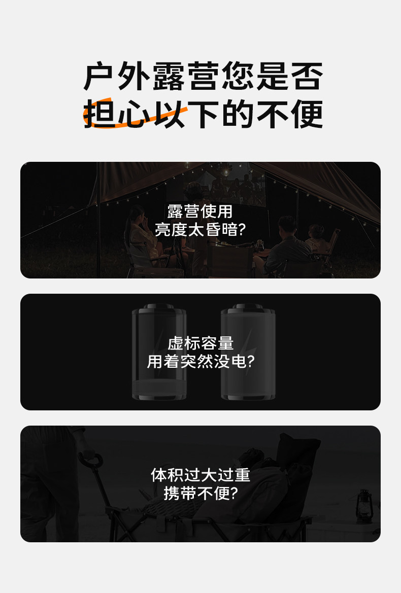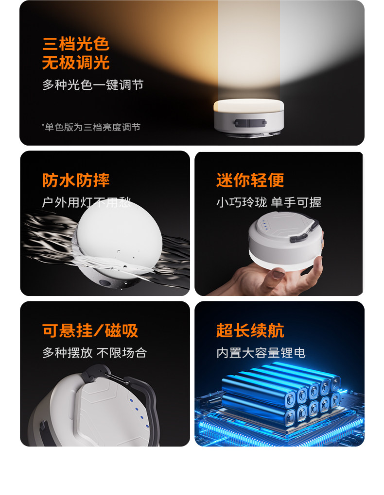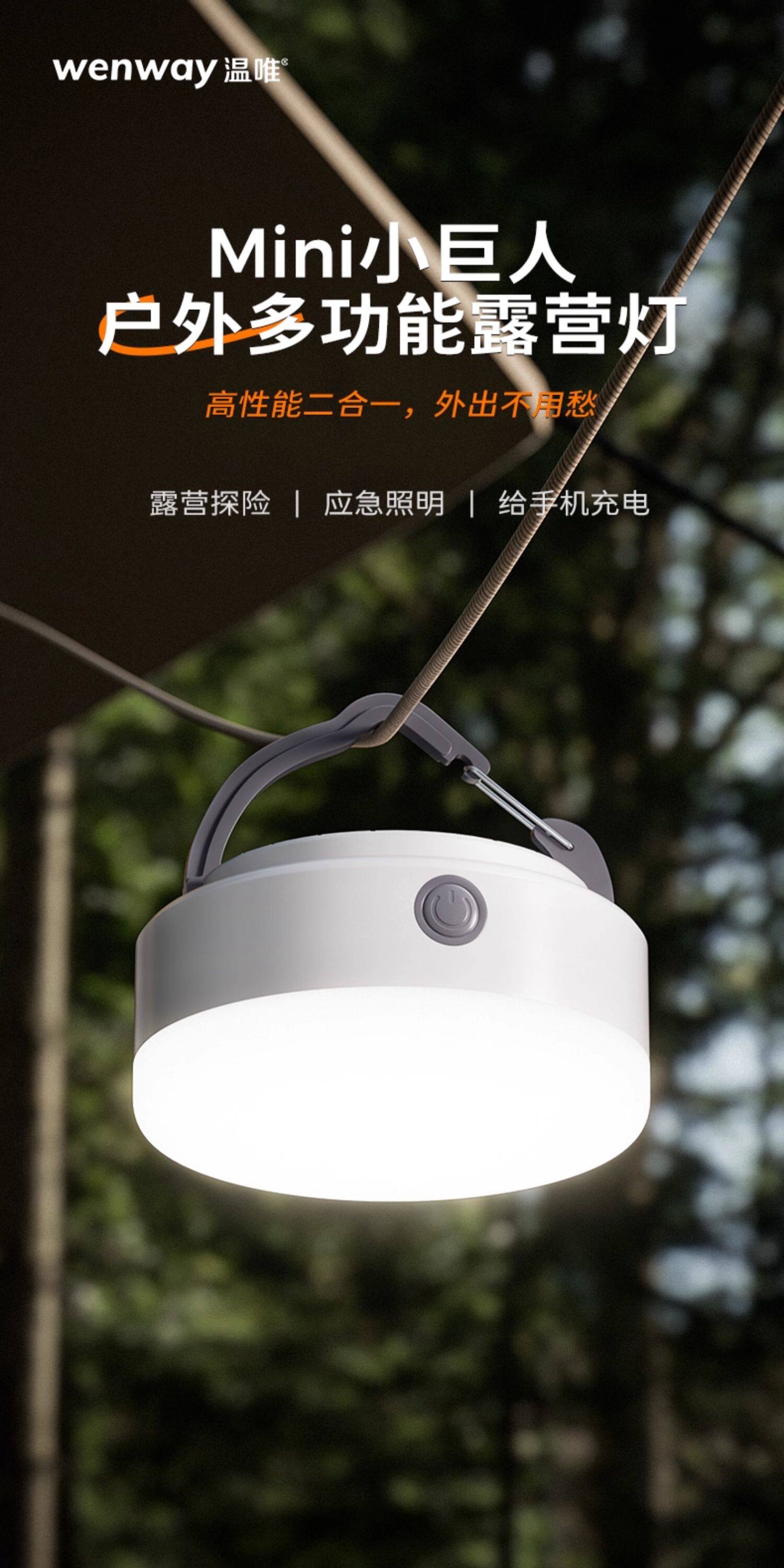 溫唯露營戶外照明燈LED營地帳篷燈迷你可攜式野營燈長續航充電馬燈