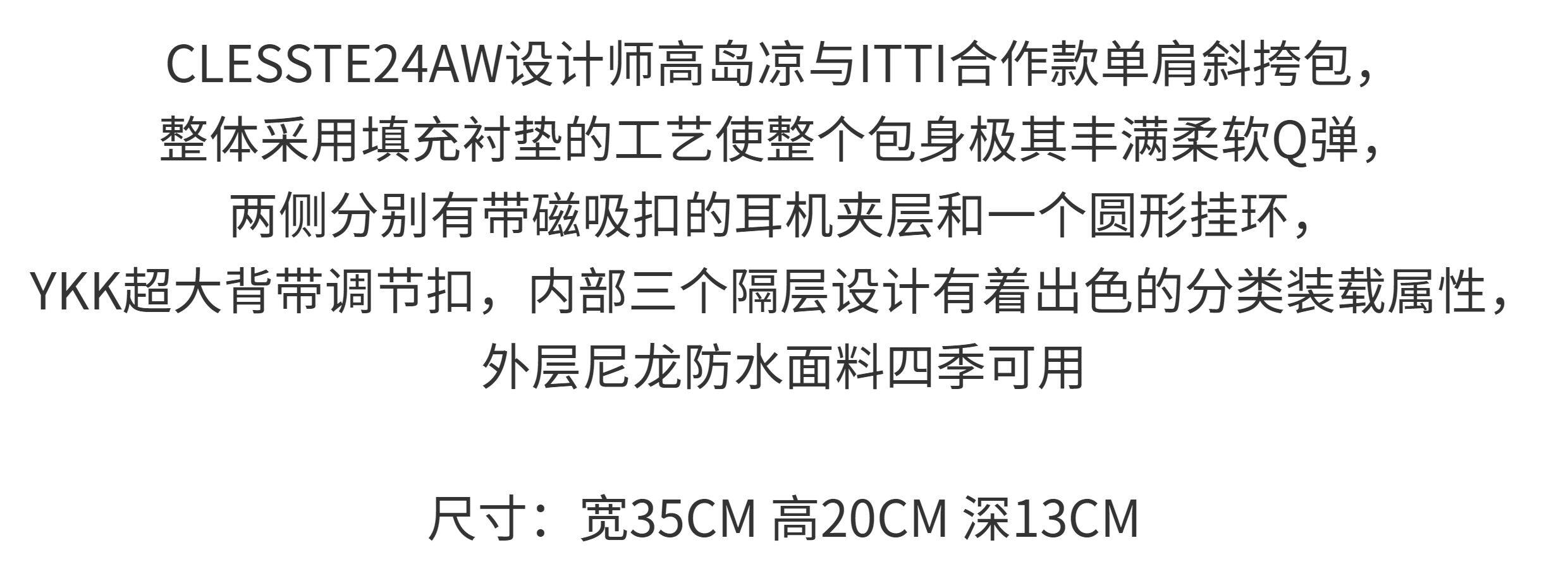 CLESSTE PADDED HOLIDAY BAG充棉尼龍單肩斜後後背包麵包防潑水機能潮