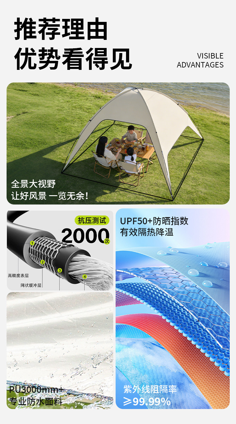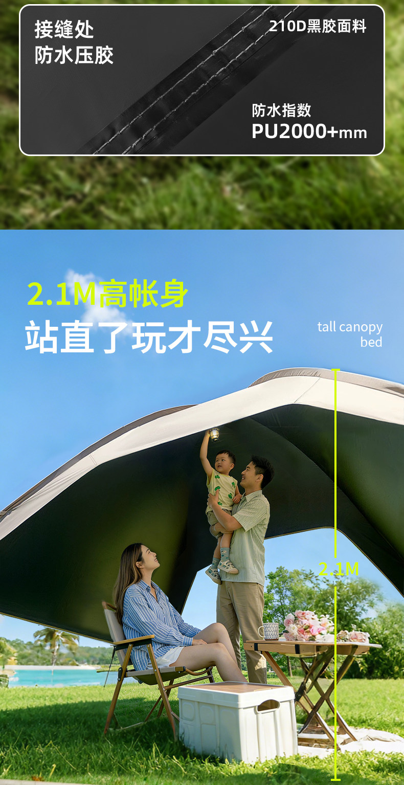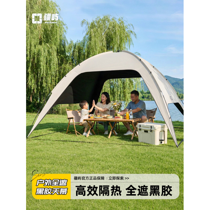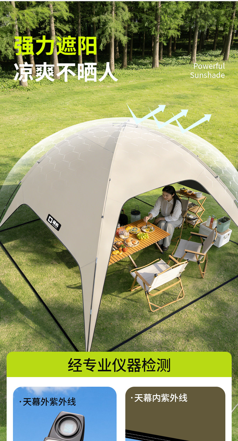 疆嶼戶外黑膠新型天幕帳篷露營速開穹頂防曬大遮陽棚野營大全套
