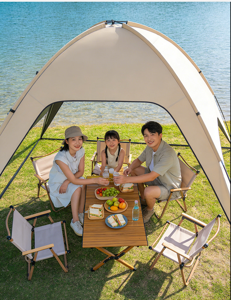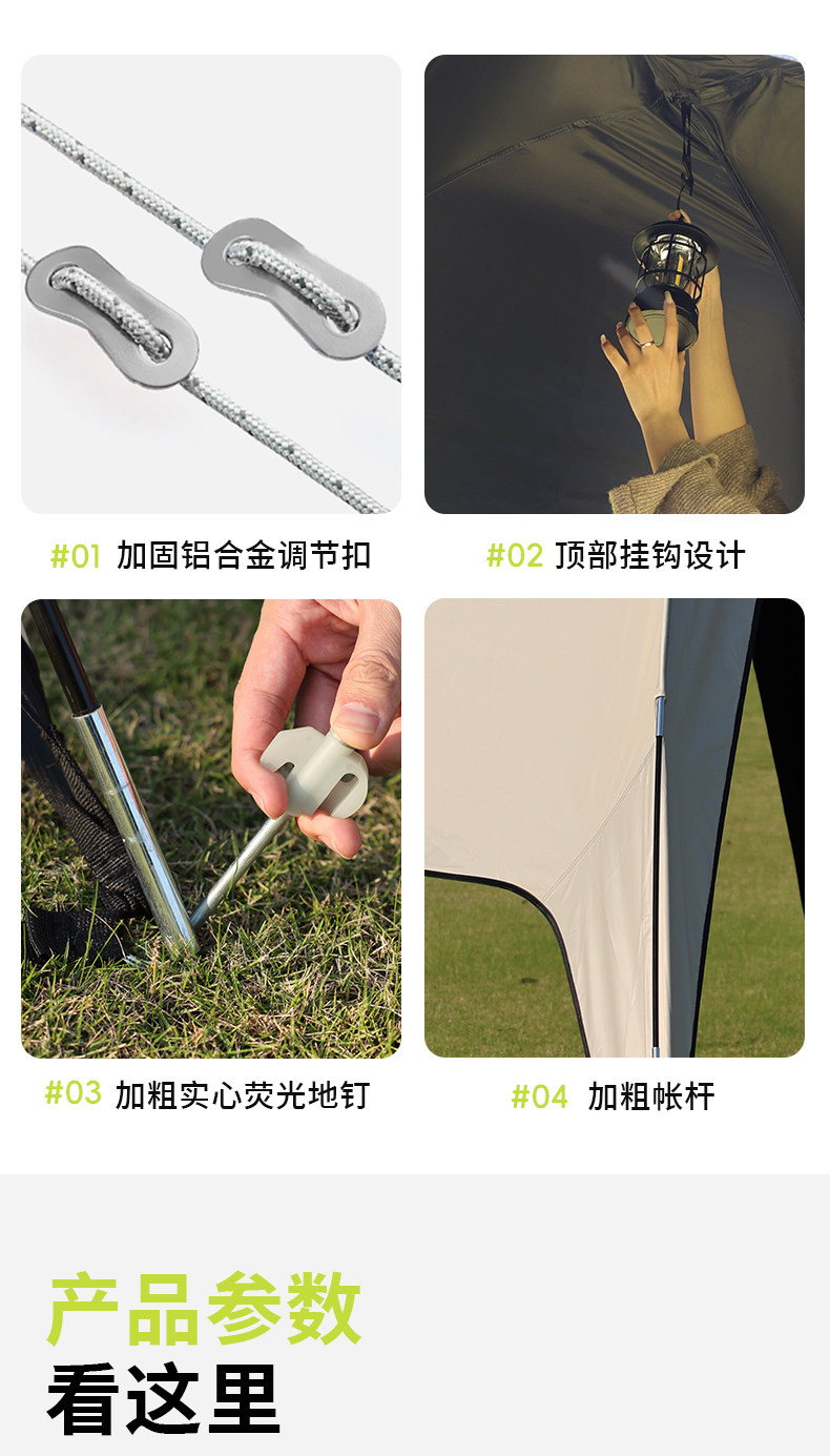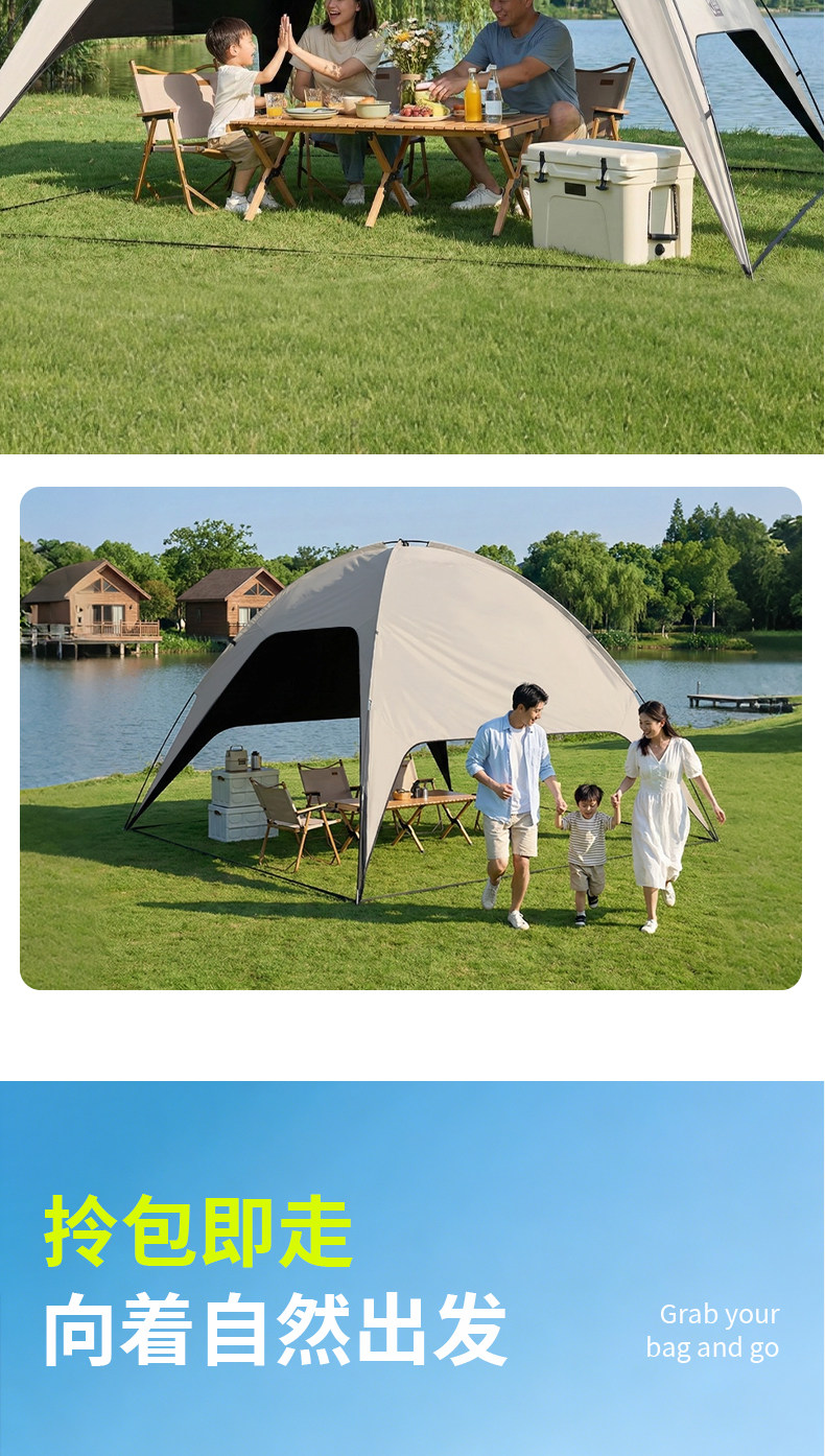 疆嶼戶外黑膠新型天幕帳篷露營速開穹頂防曬大遮陽棚野營大全套
