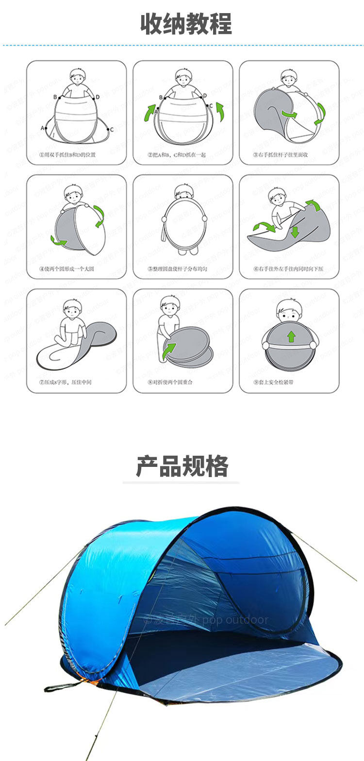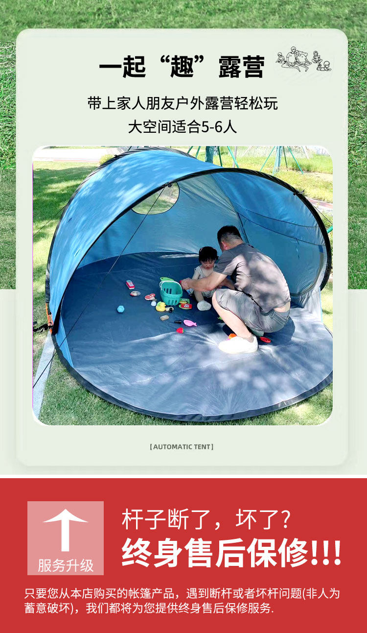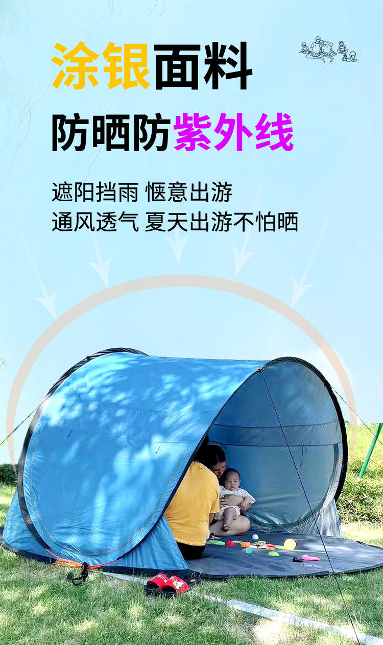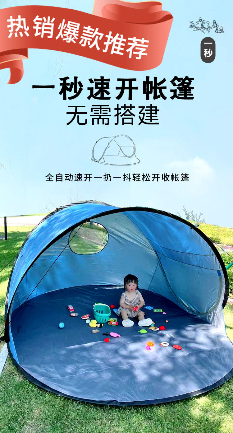 2-8人大號全自動速開沙灘帳篷可攜式兒童公園戶外 海邊海灘遮陽防曬