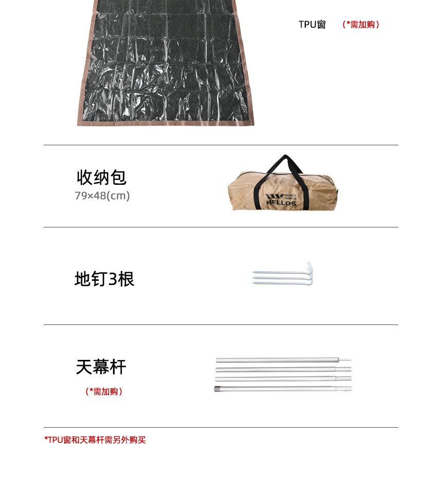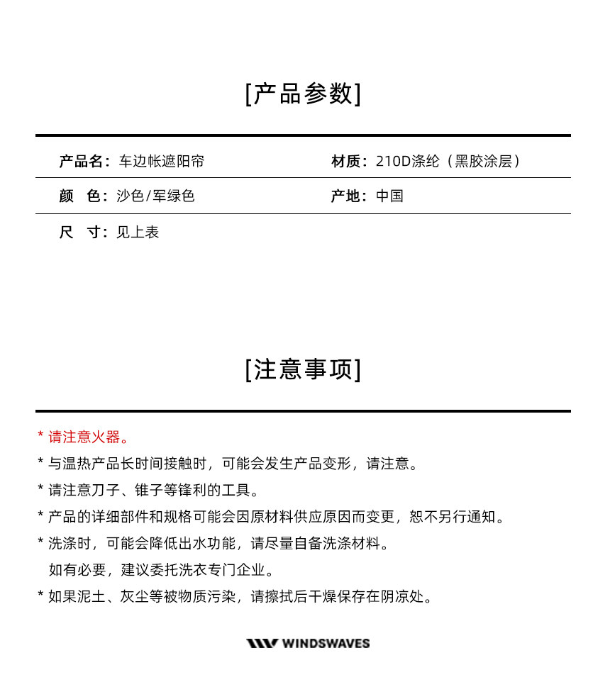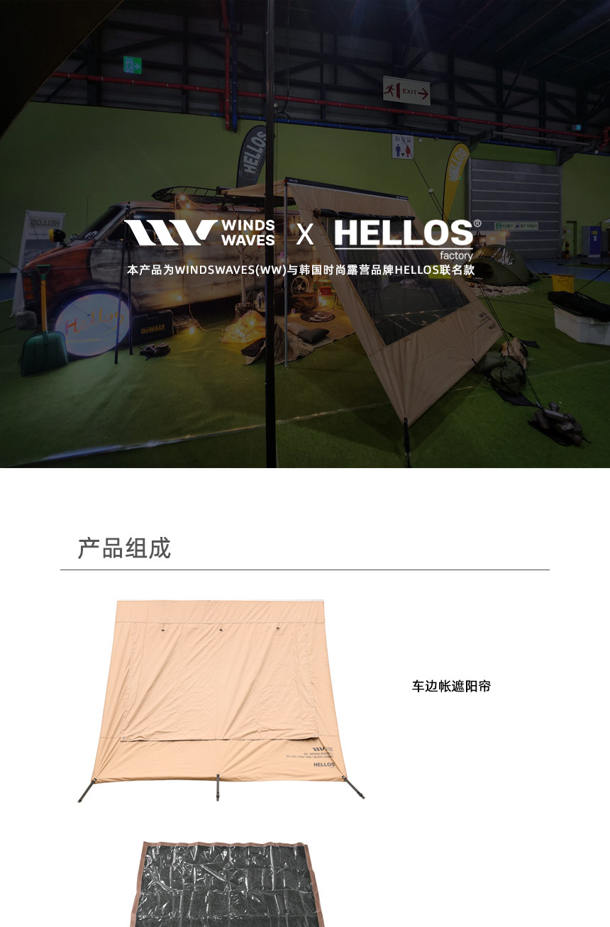 韓國WINDSWAVES車用側邊帳篷黑膠車邊延伸帳帶紗窗防曬防雨遮陽棚