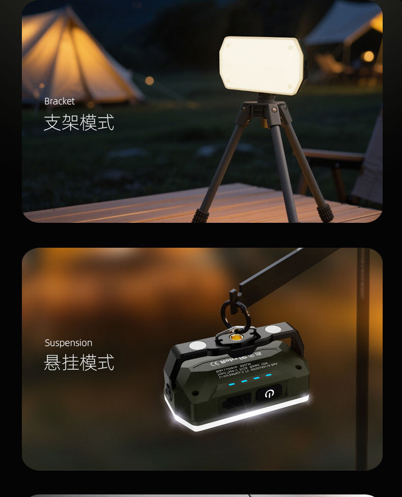 戶外露營燈卡片式磁吸工作燈帳篷燈氛圍燈野營照明燈充電超長續航