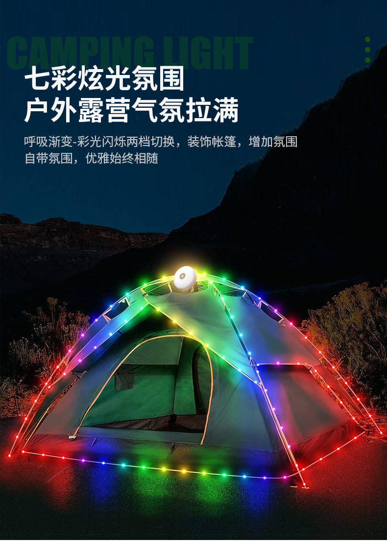 探界者10米氛圍LEDUSB充電戶外帳篷七彩串燈帶卷尺收納野營