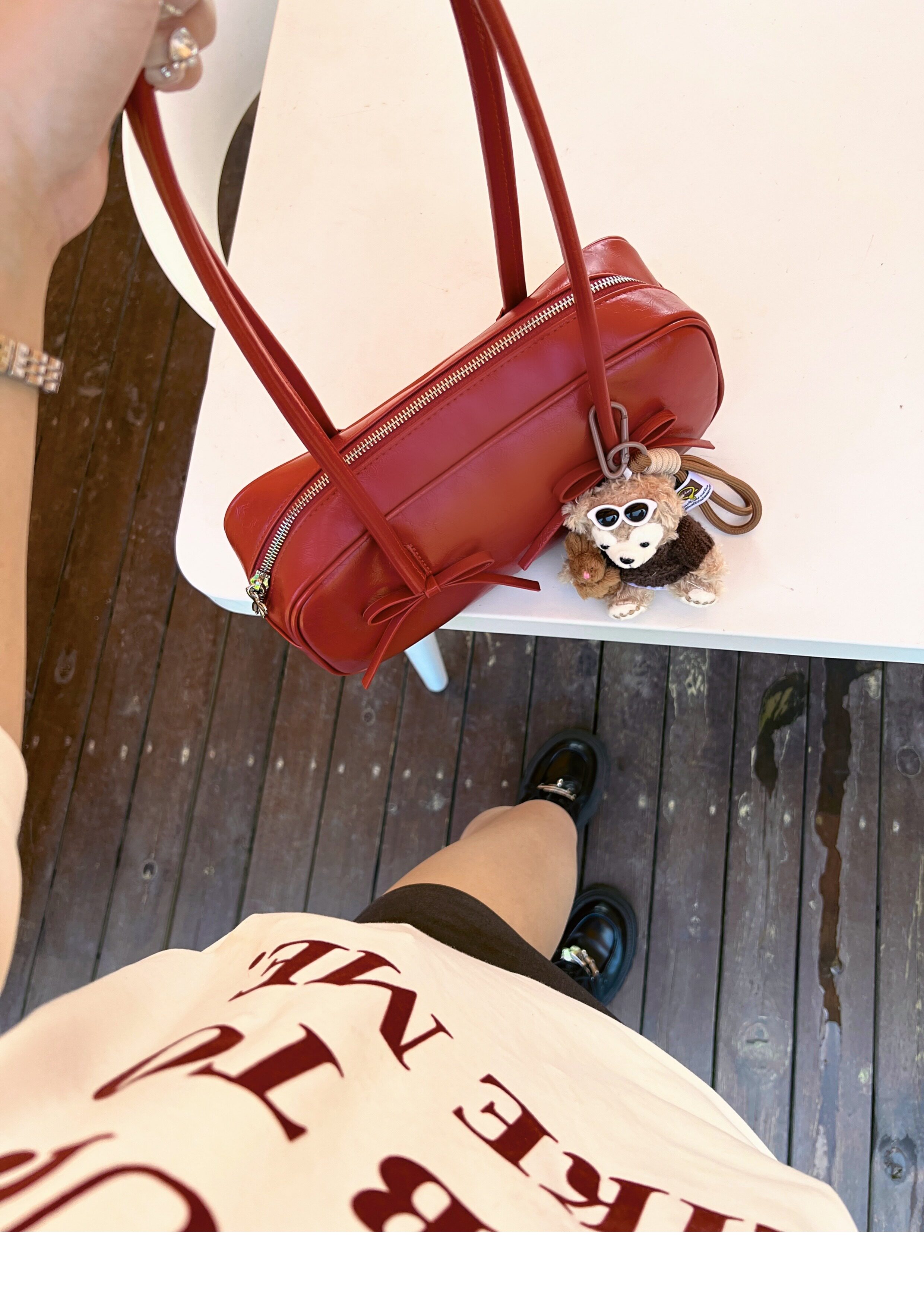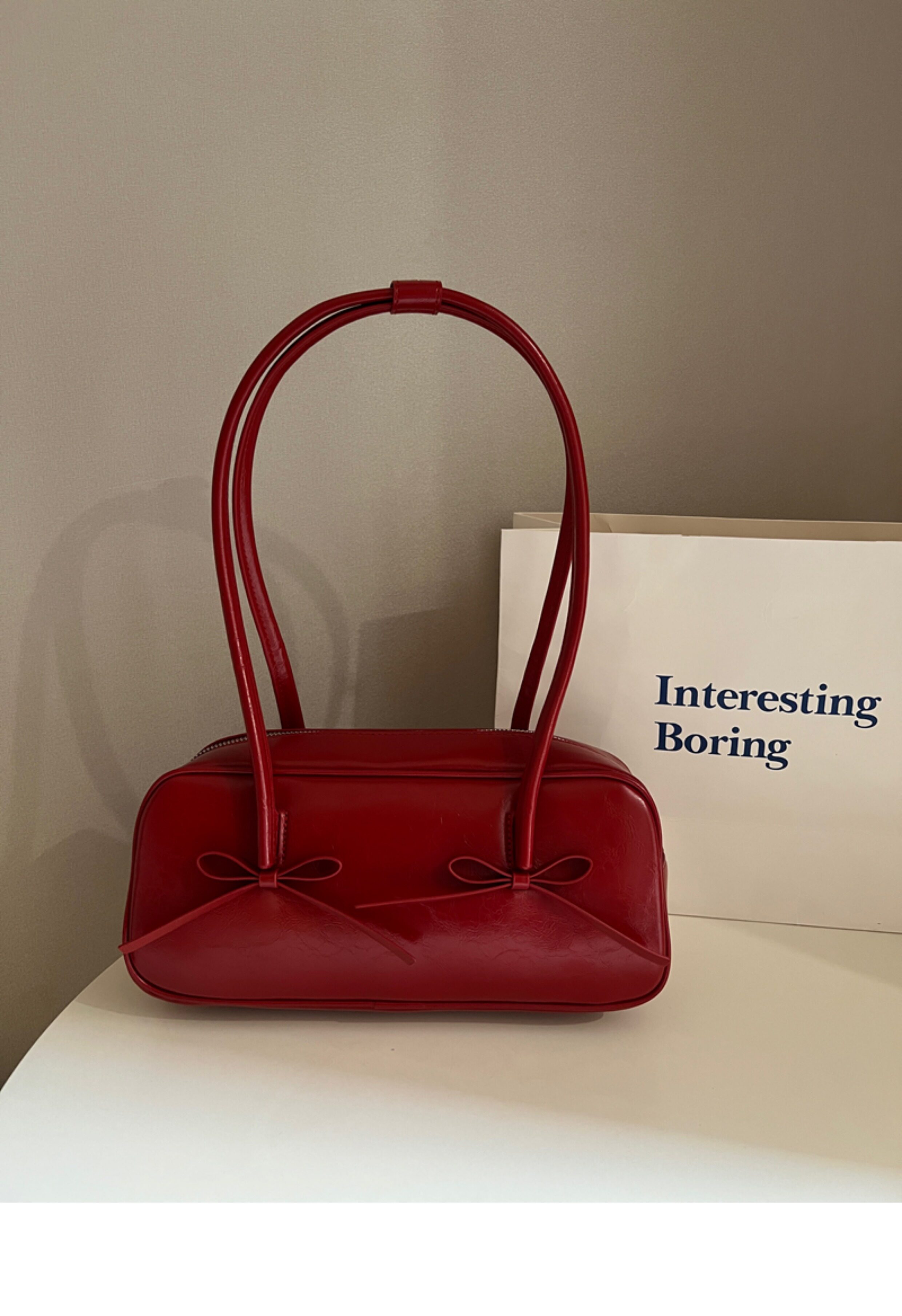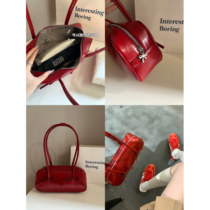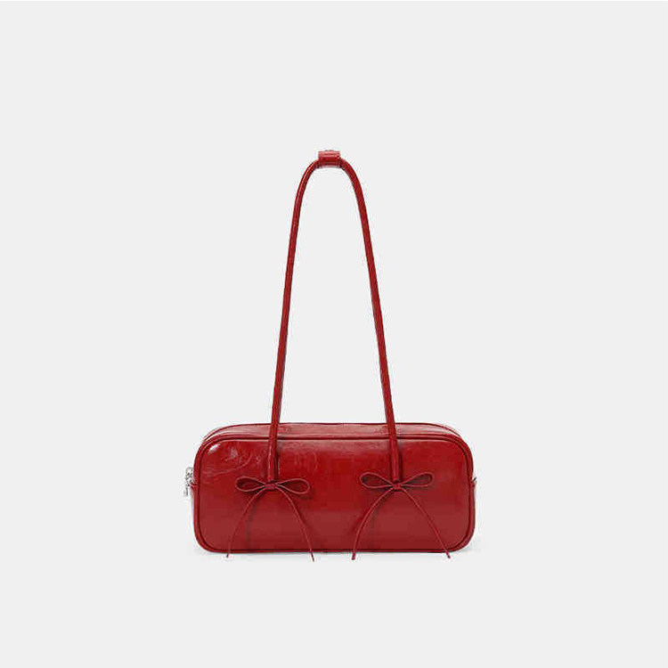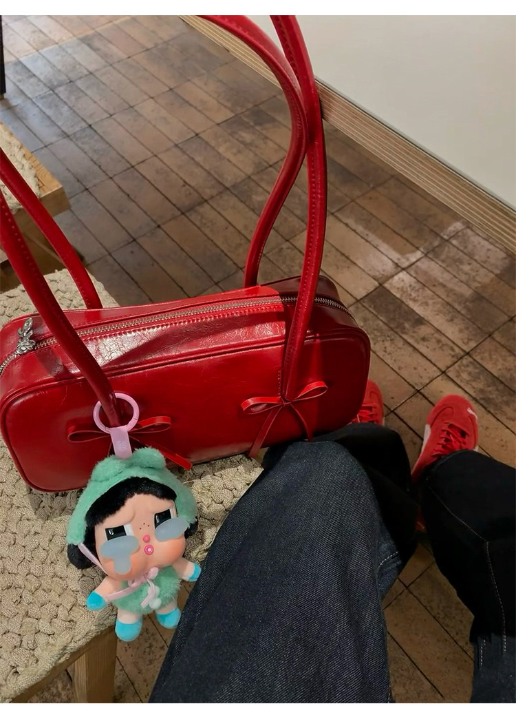 阿馨yolo 網紅同款紅色蝴蝶結法棍包高級感小衆設計百搭腋下包女
