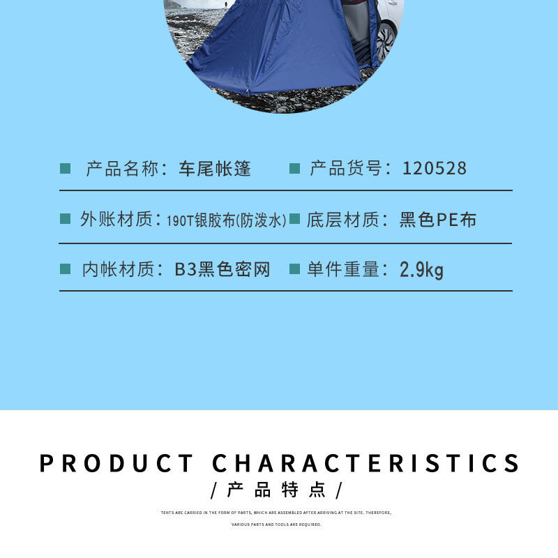 戶外汽車車尾延展帳篷可攜式野營速開防雨雙層越野車可攜式