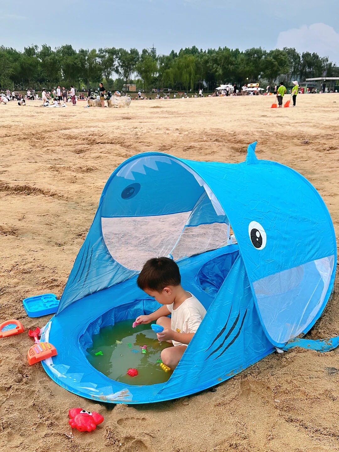 兒童沙灘帳篷戶外可折曡可攜式防曬遮陽棚寶寶玩水帳篷海邊沙灘帳