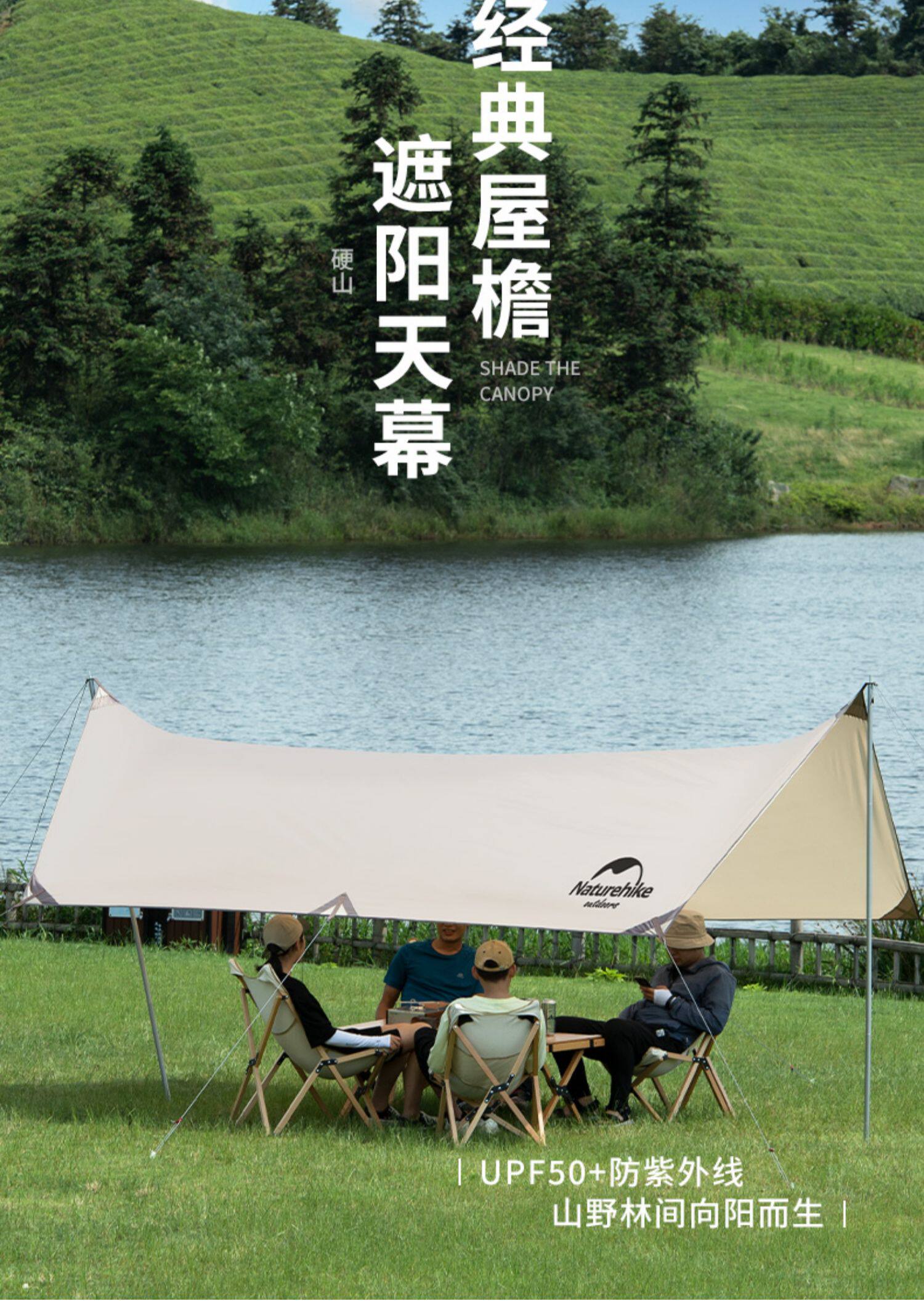 挪客硬山黑膠超大天幕超輕防雨防曬天幕野外露營沙灘帳篷遮陽棚