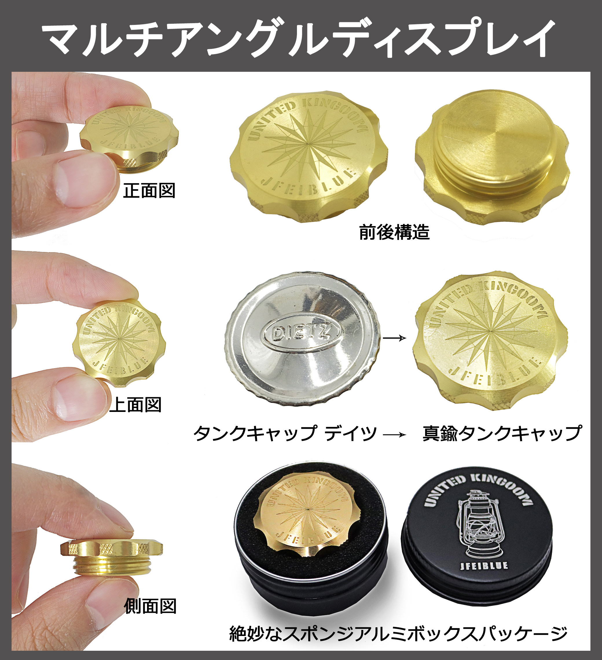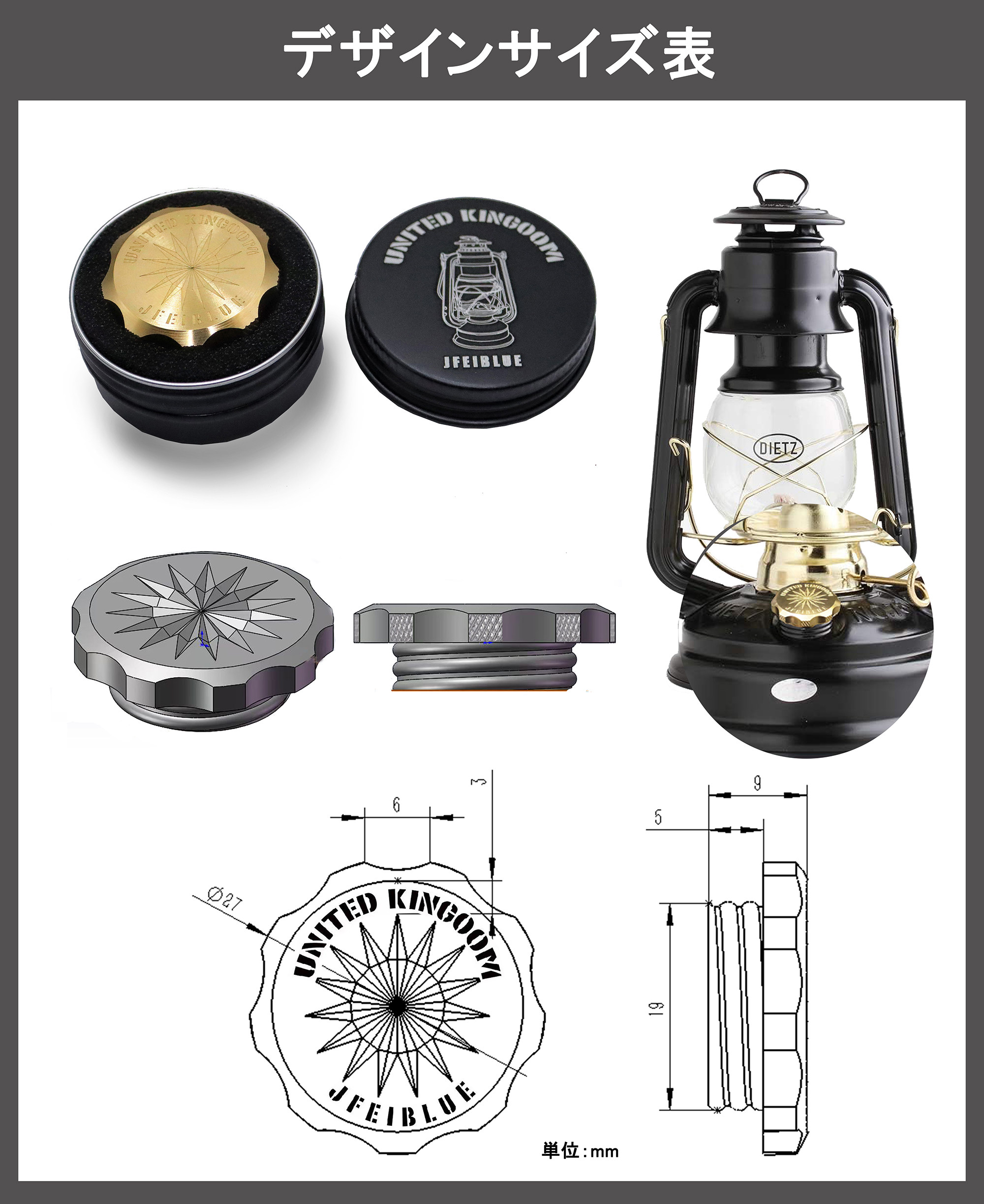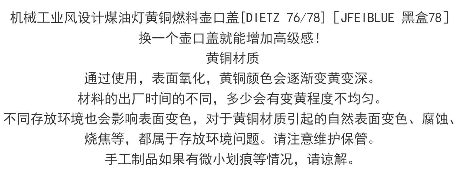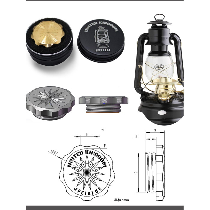 JFEIBLUE機械風設計煤油燈壺口蓋燃料口蓋黃銅製適用於dietz78/76