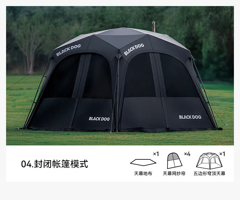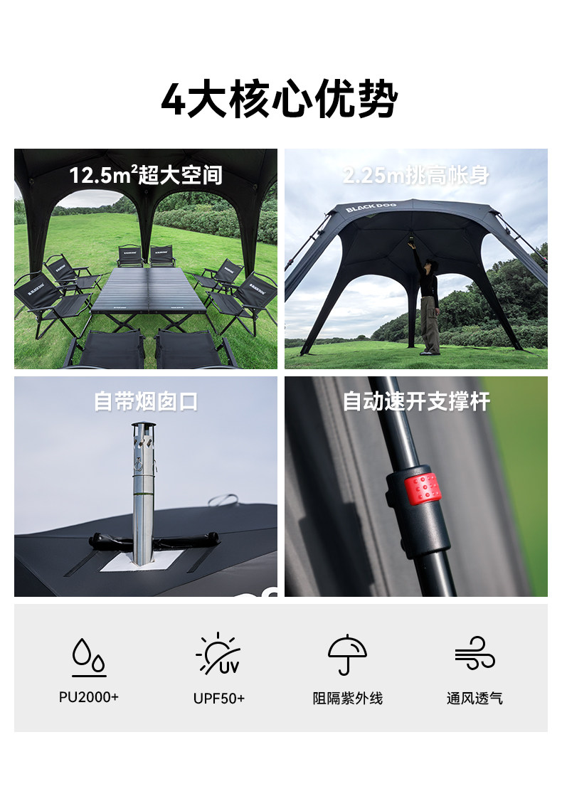 BLACKDOG黑狗戶外自立速開天幕黑膠帳篷露營防風雨穹頂防曬遮陽棚