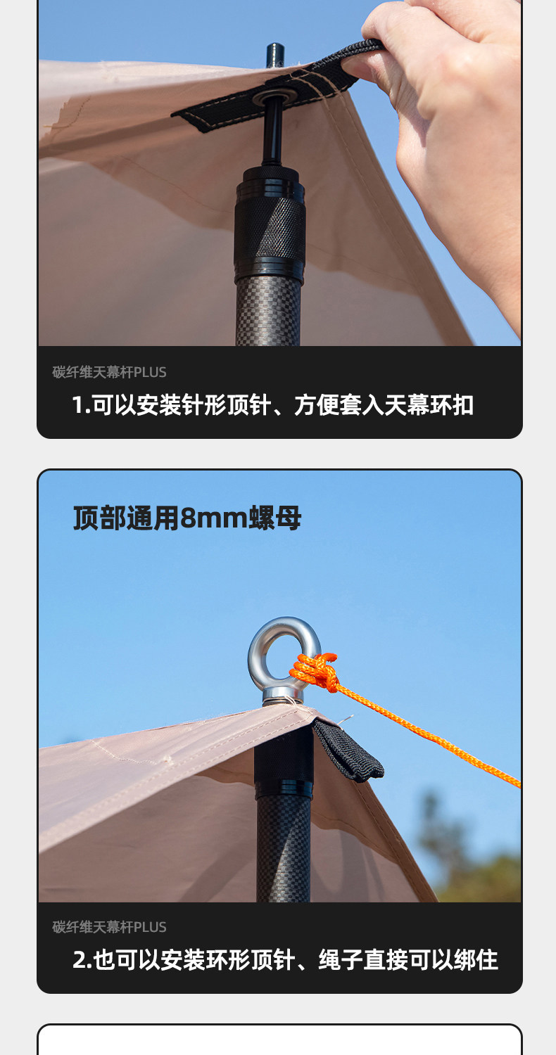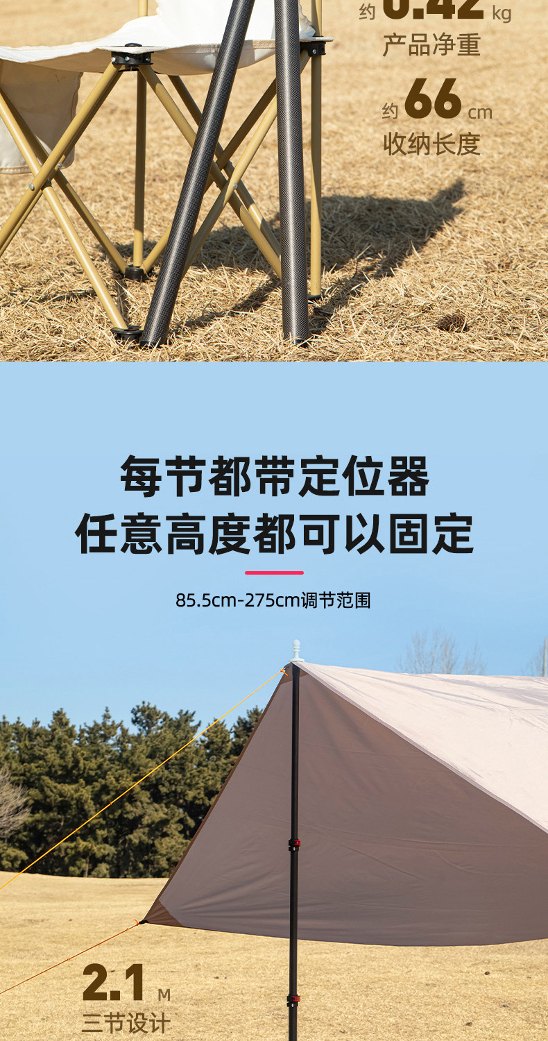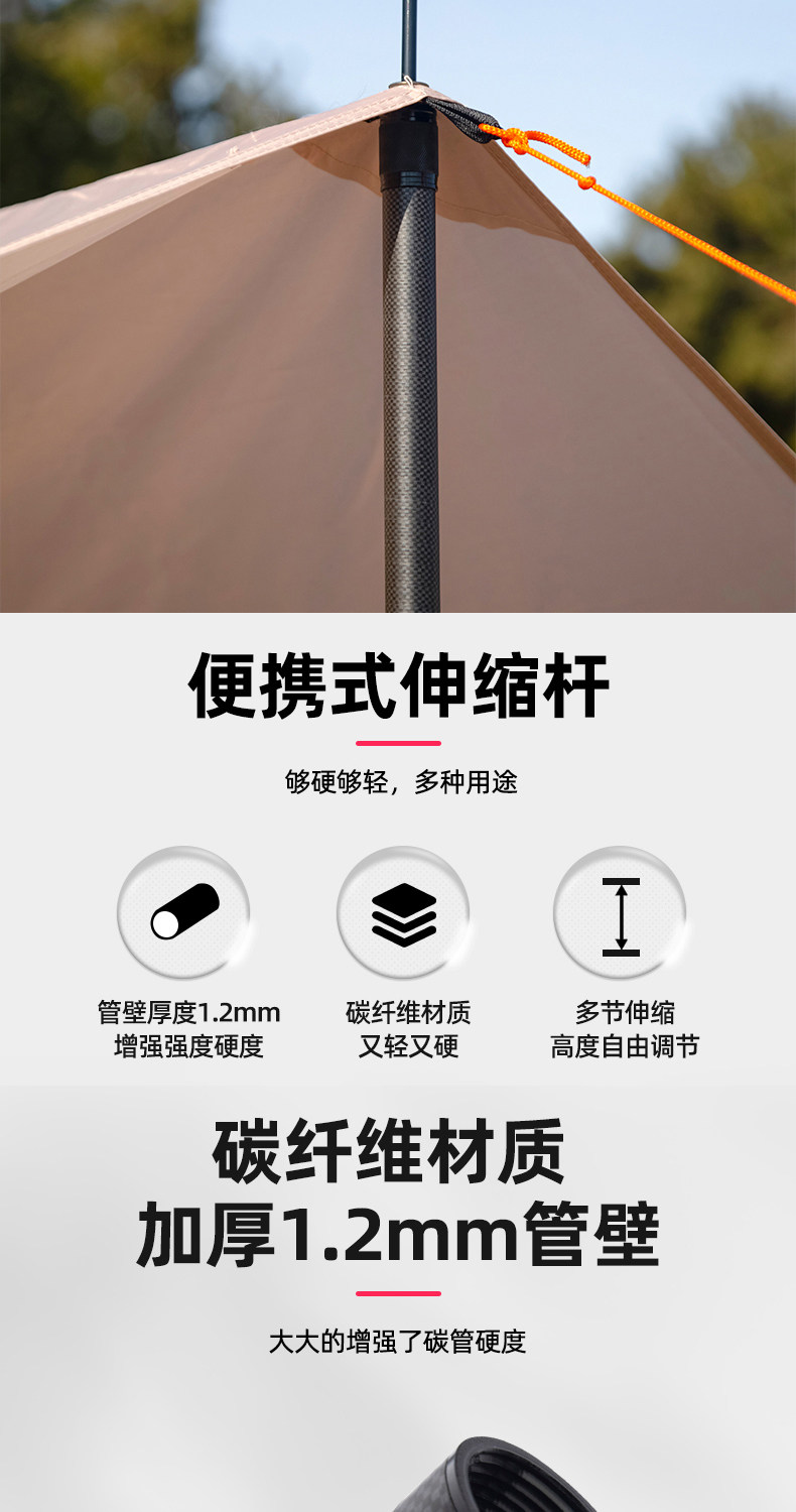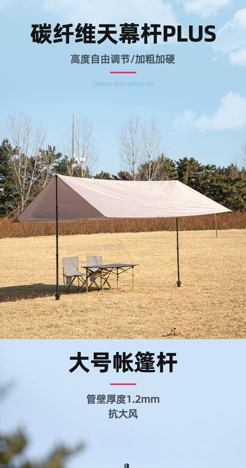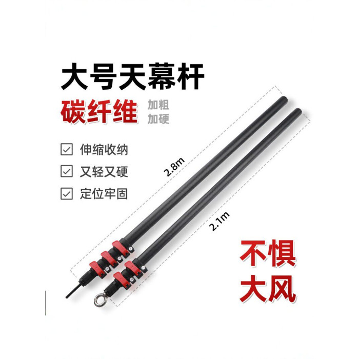 黑膠天幕桿碳纖維帳篷門廳支撐桿露營超長營柱延伸支架加粗加硬桿
