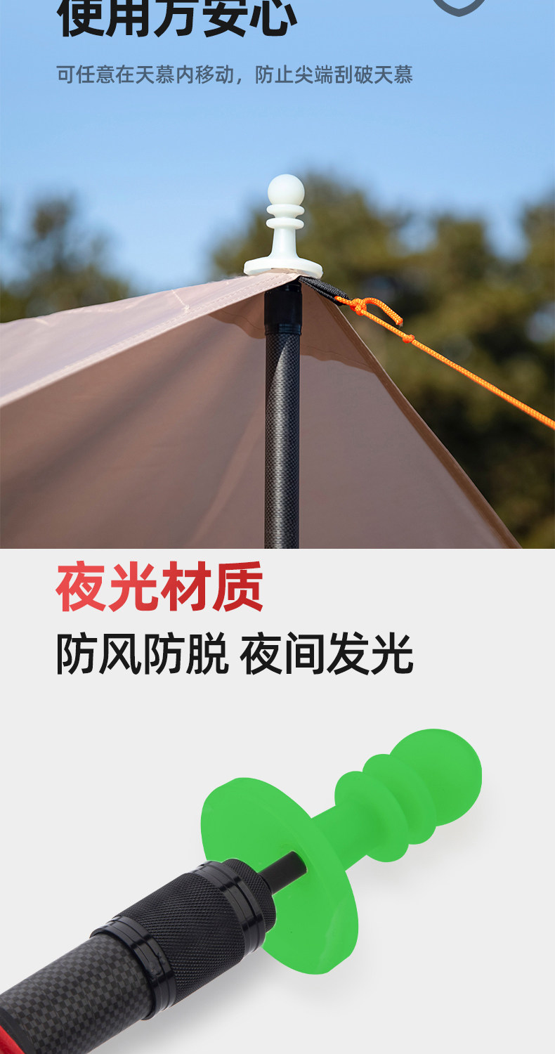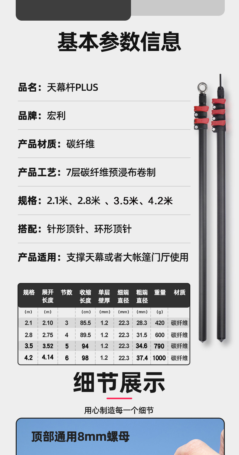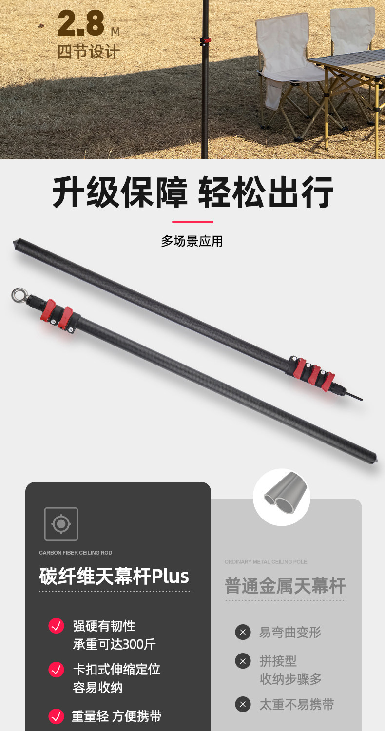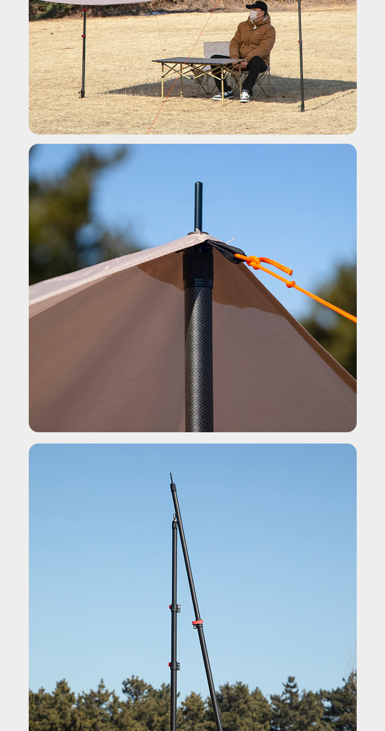 黑膠天幕桿碳纖維帳篷門廳支撐桿露營超長營柱延伸支架加粗加硬桿