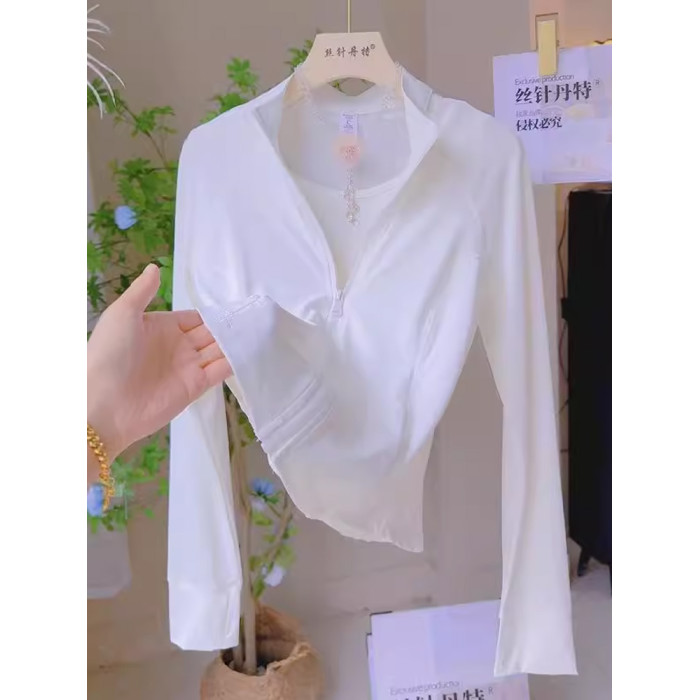2026夏季新款女士時尚立領修身收腰防曬長袖拉鍊百搭休閒上衣外套