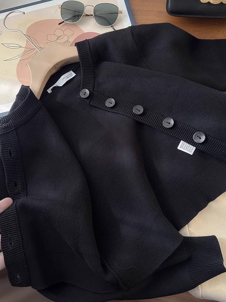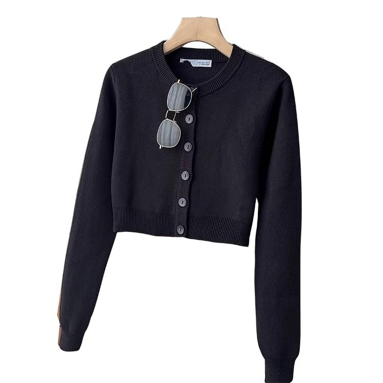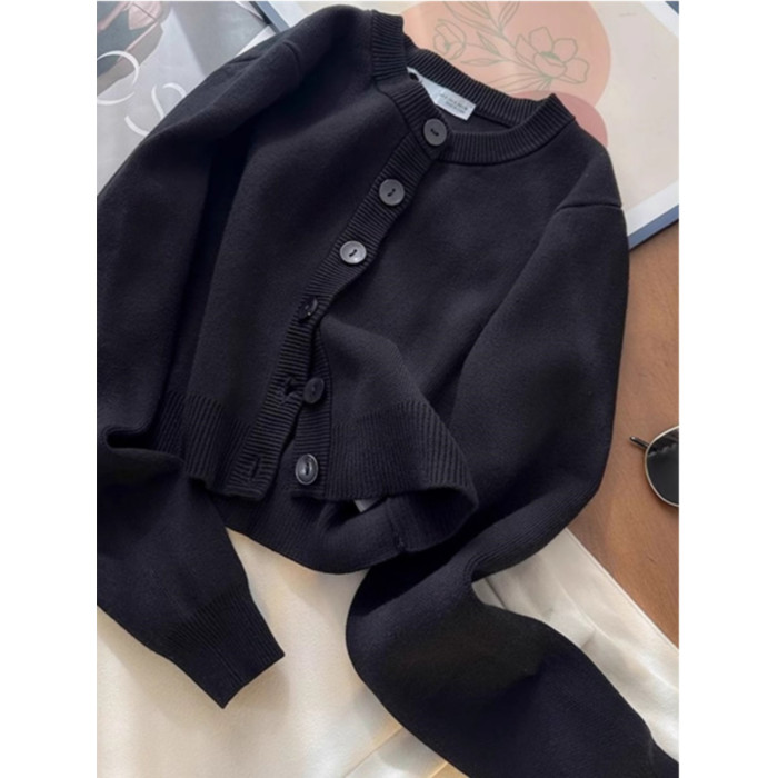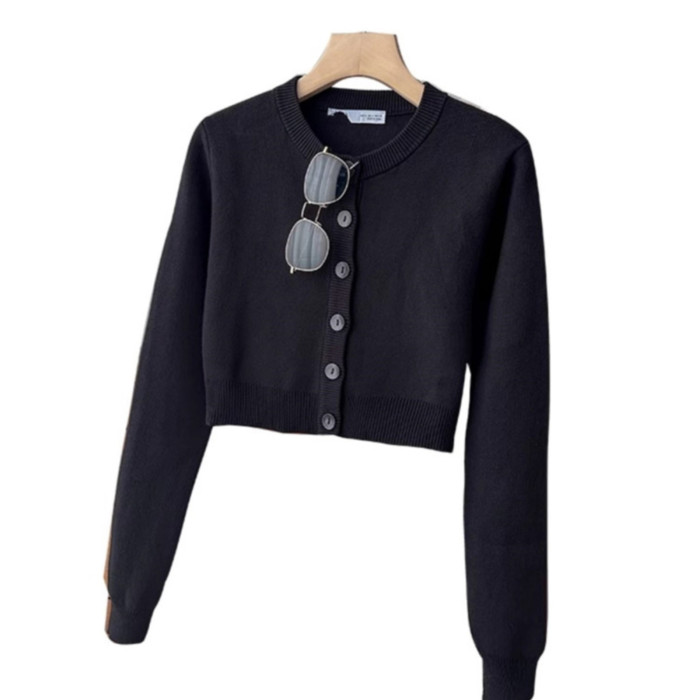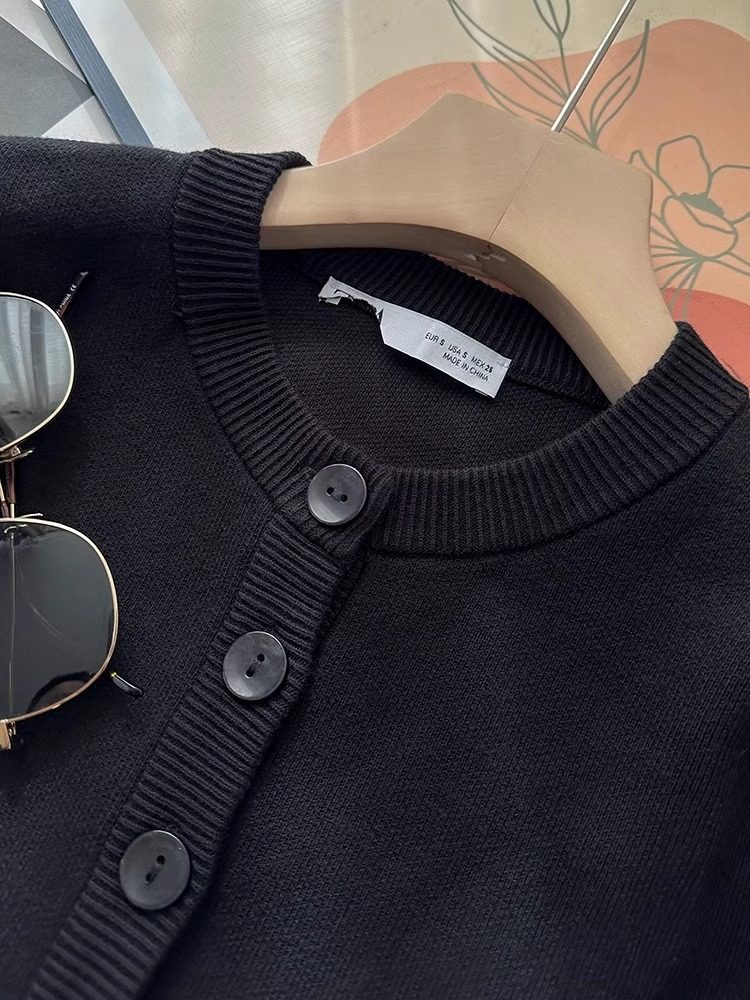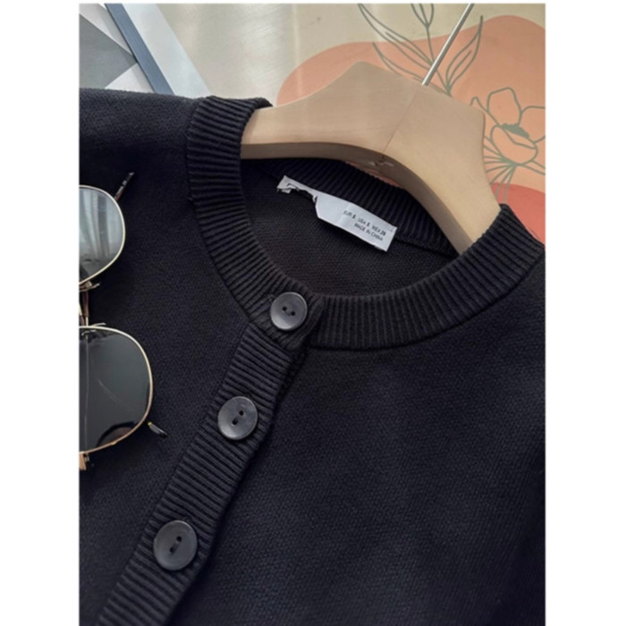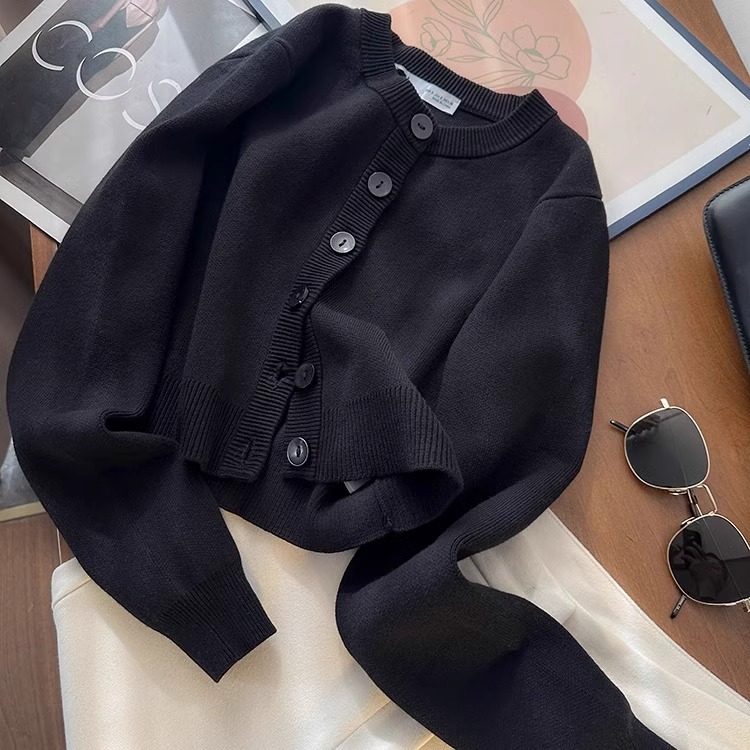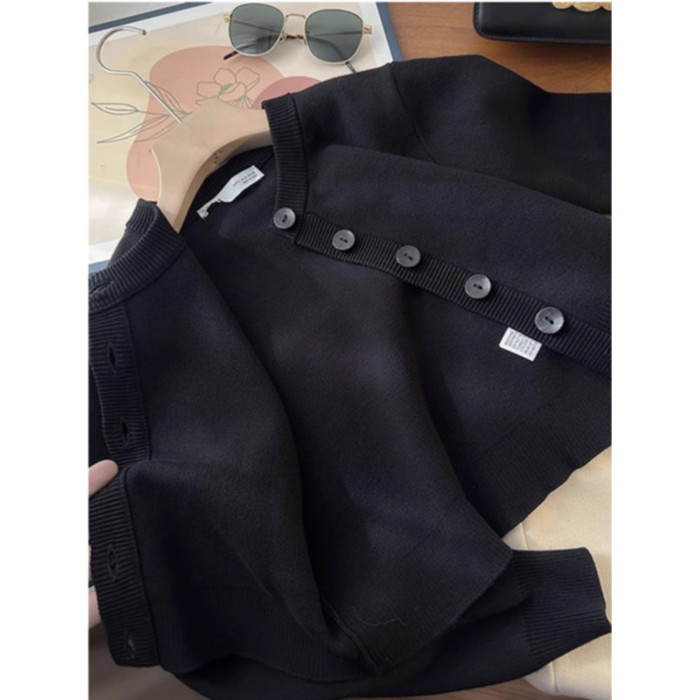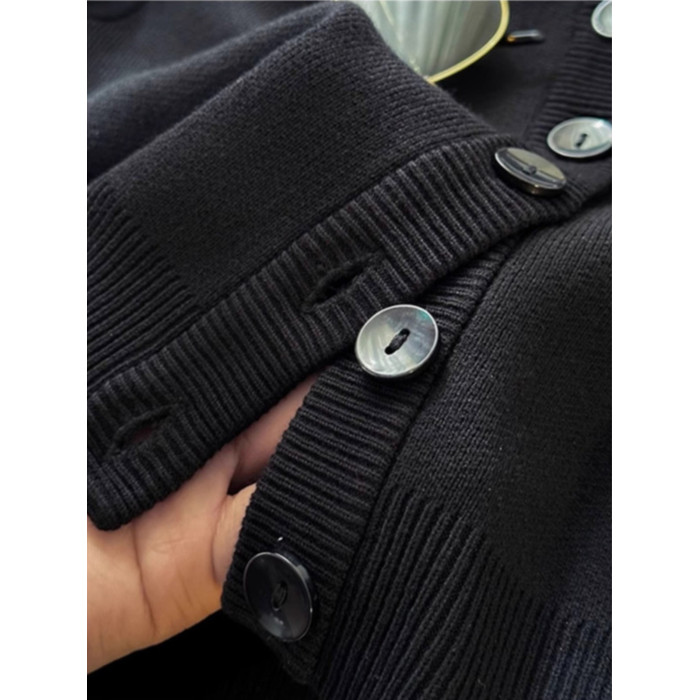南油高奢女裝黑色長袖短款針織毛衣秋冬高級感開衫外套上衣