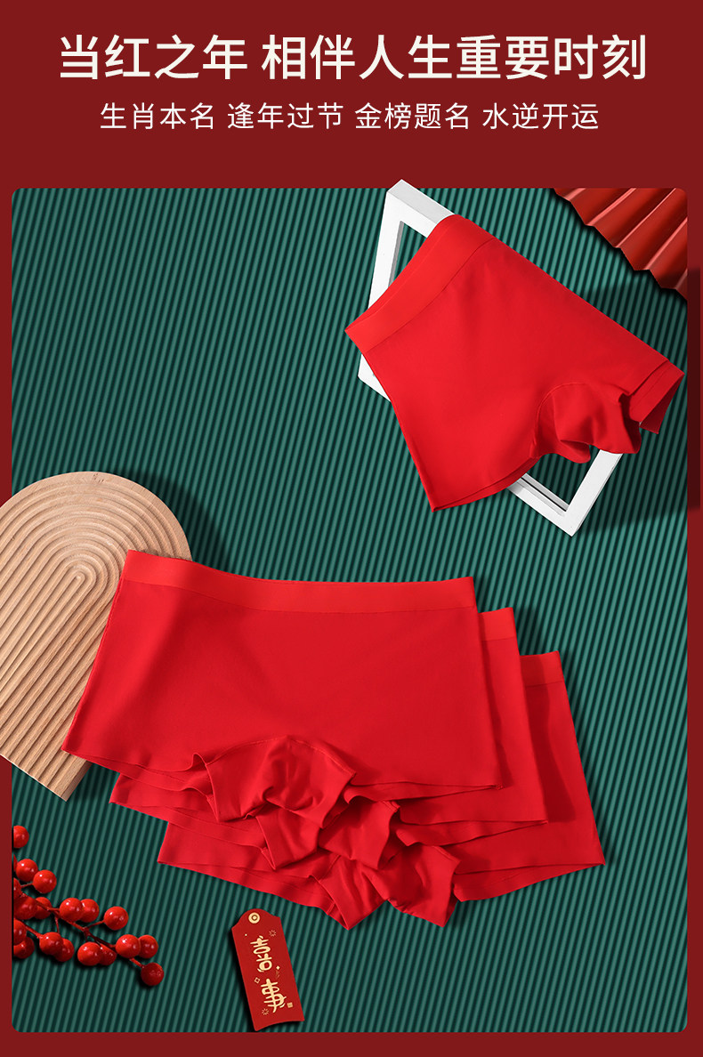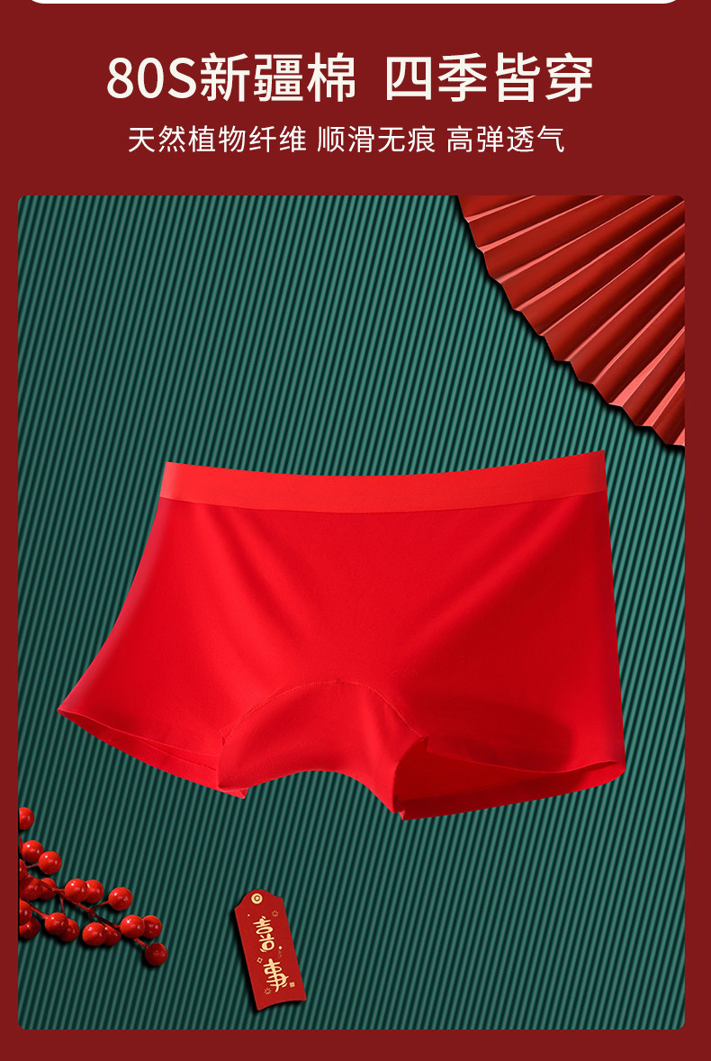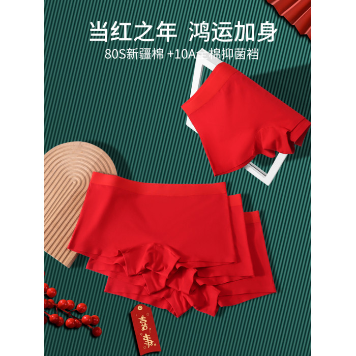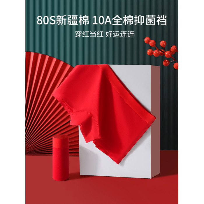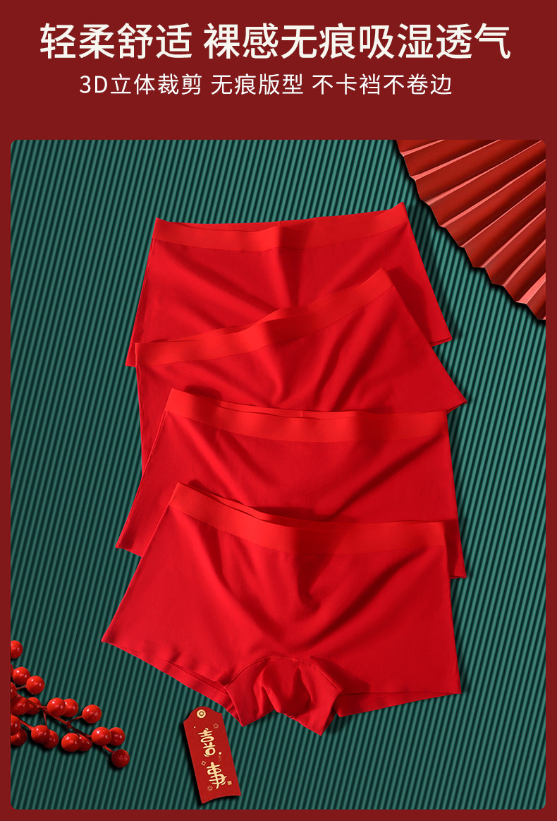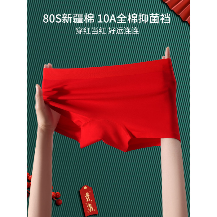 大紅內褲本命年女士純棉平角褲全棉抗菌襠透氣舒適四角短褲底褲紅