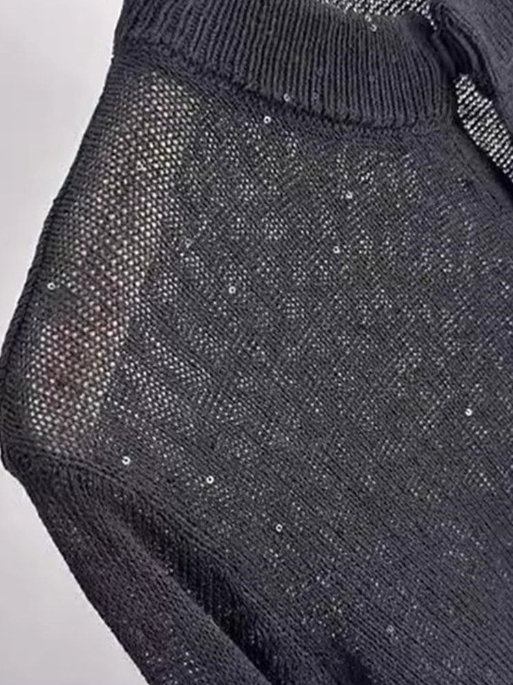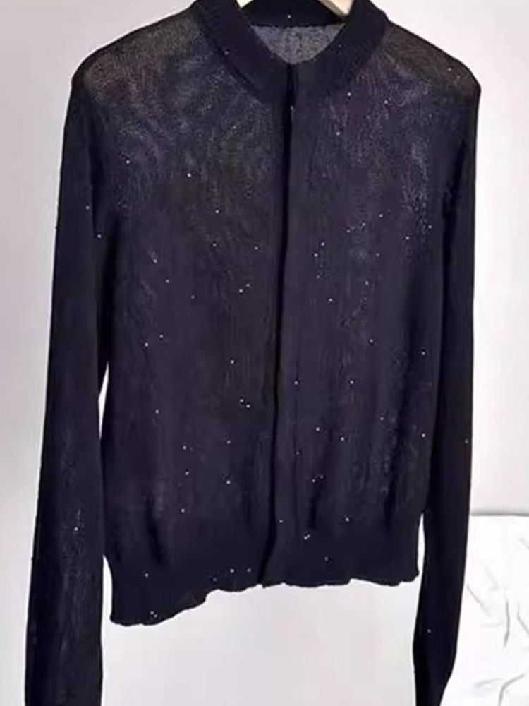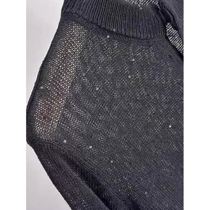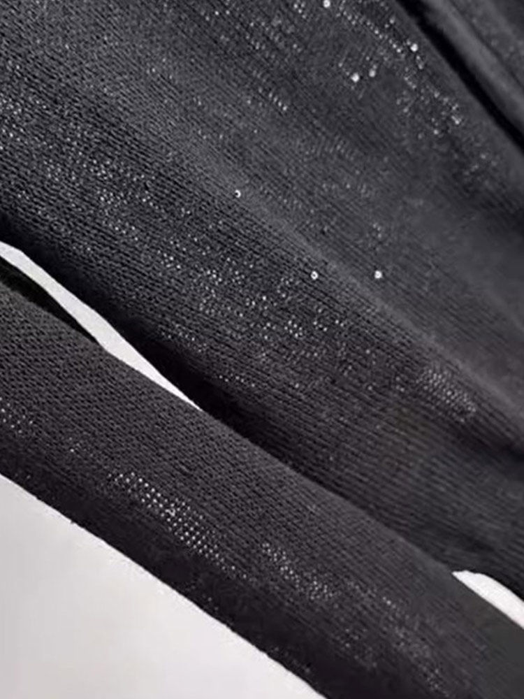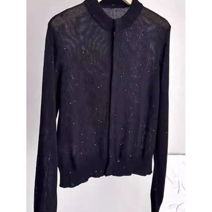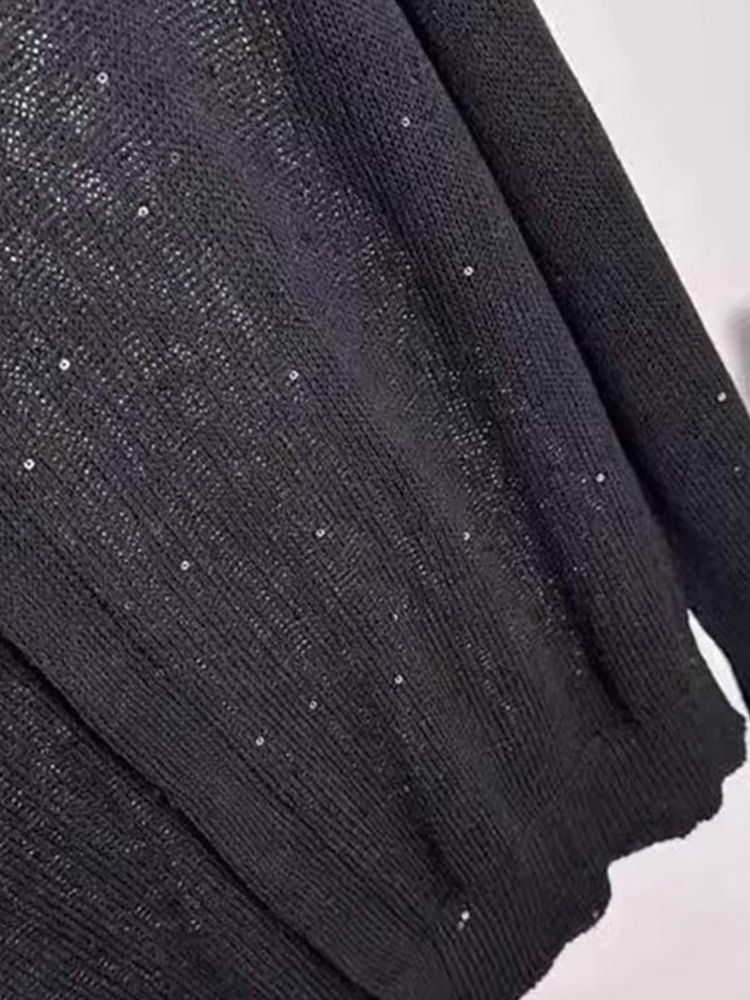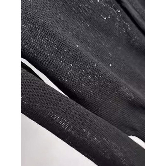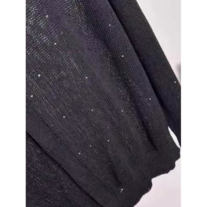 法式上衣亮片設計感圓領長袖針織開衫顯瘦新款洋氣外搭小衫舒適女