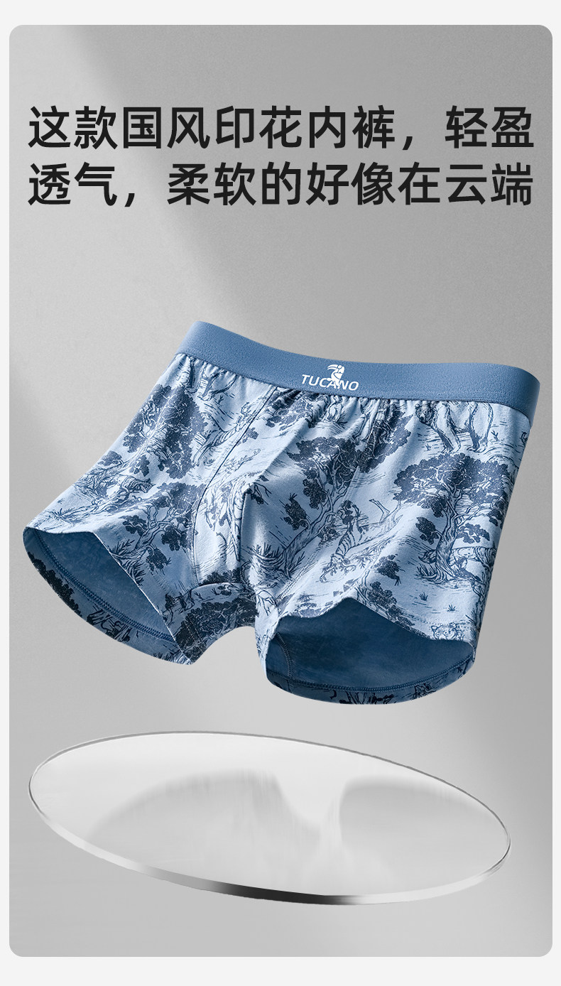 啄木鳥官方旗艦店男士純棉內褲抑菌四角短褲2026新款國風印花新款