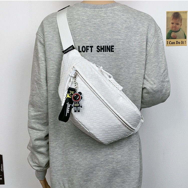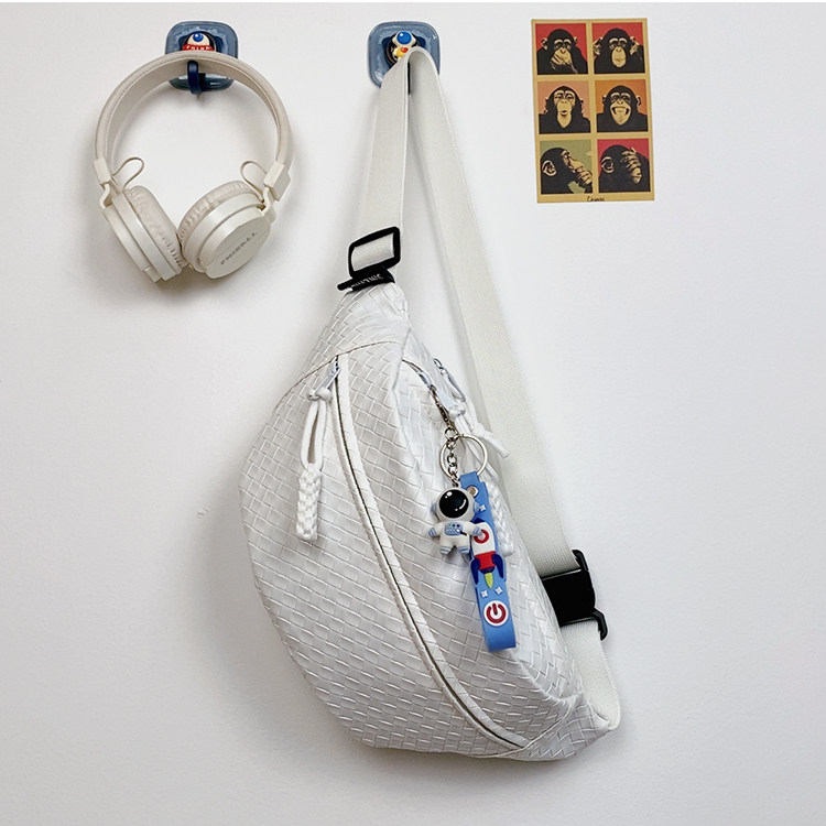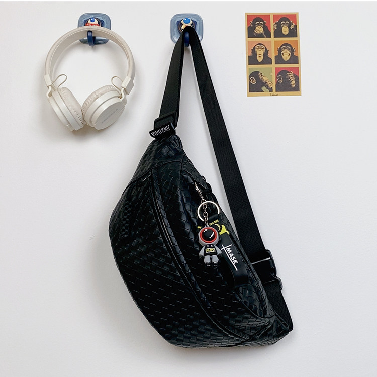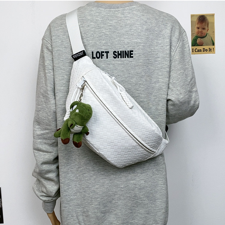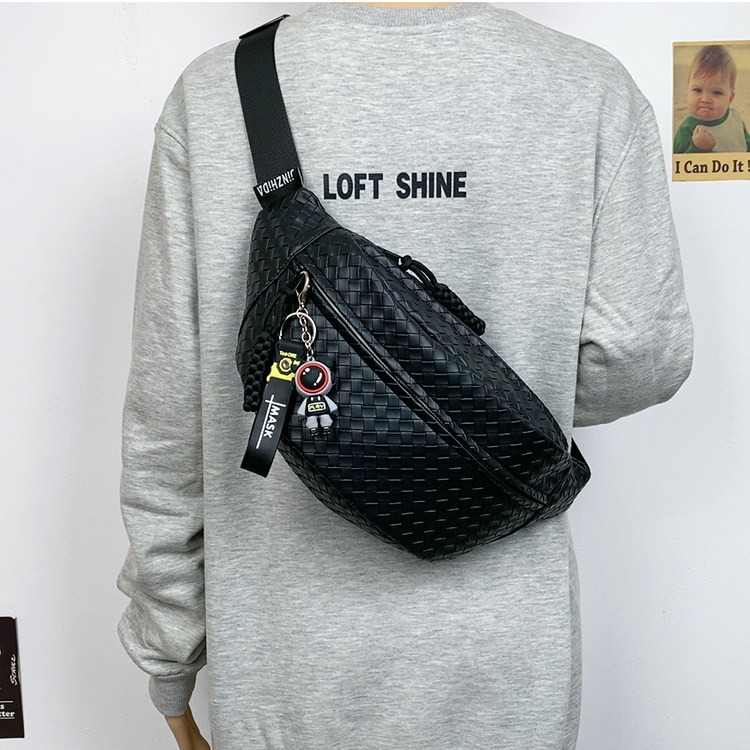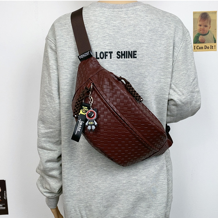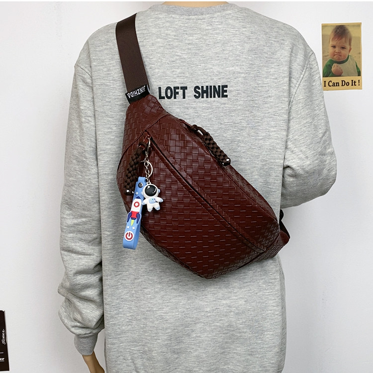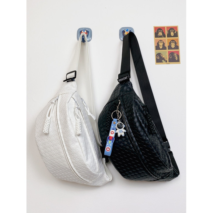 pu編織胸包男女生斜後後背包簡約休閒通勤包騎行包機車後後背包運動單肩包