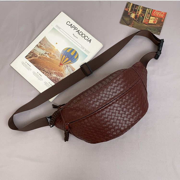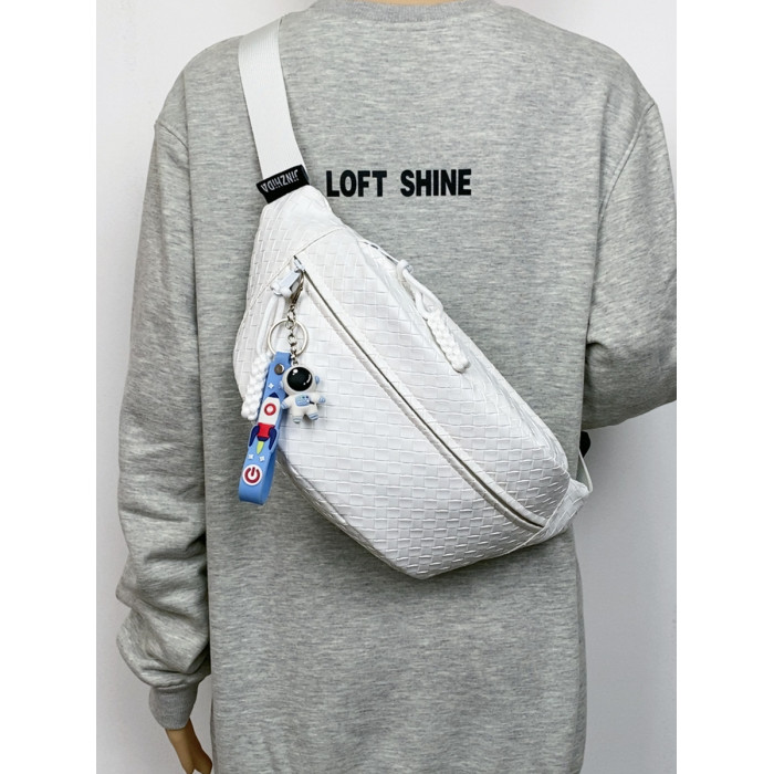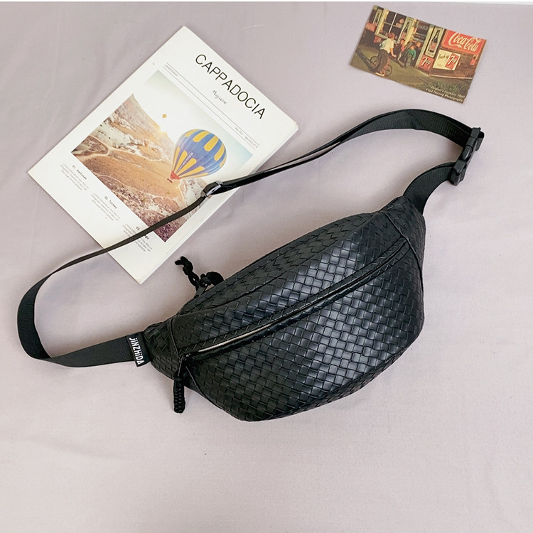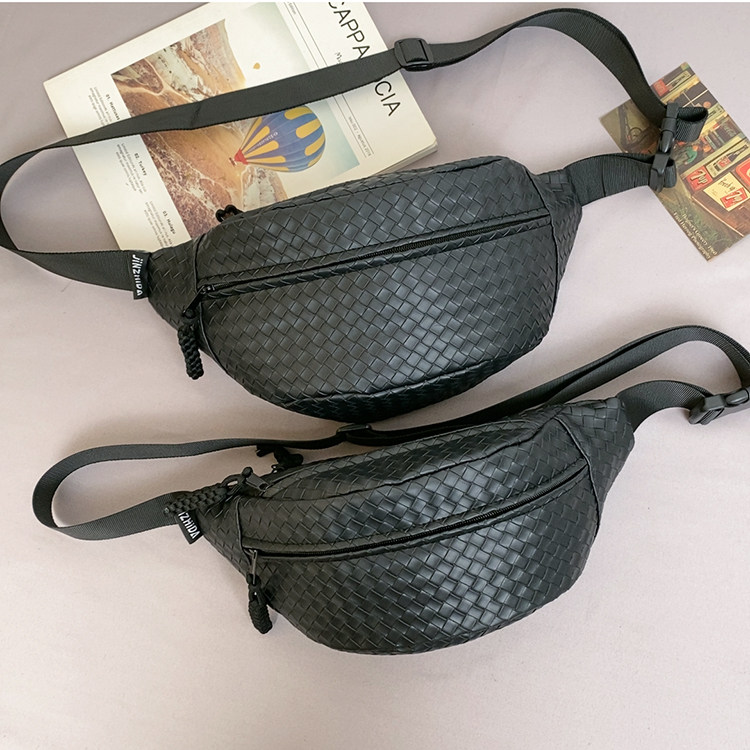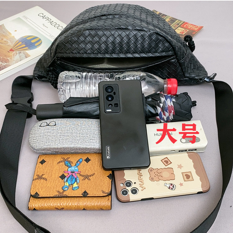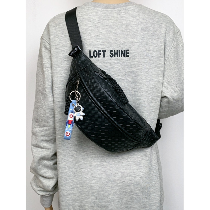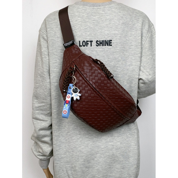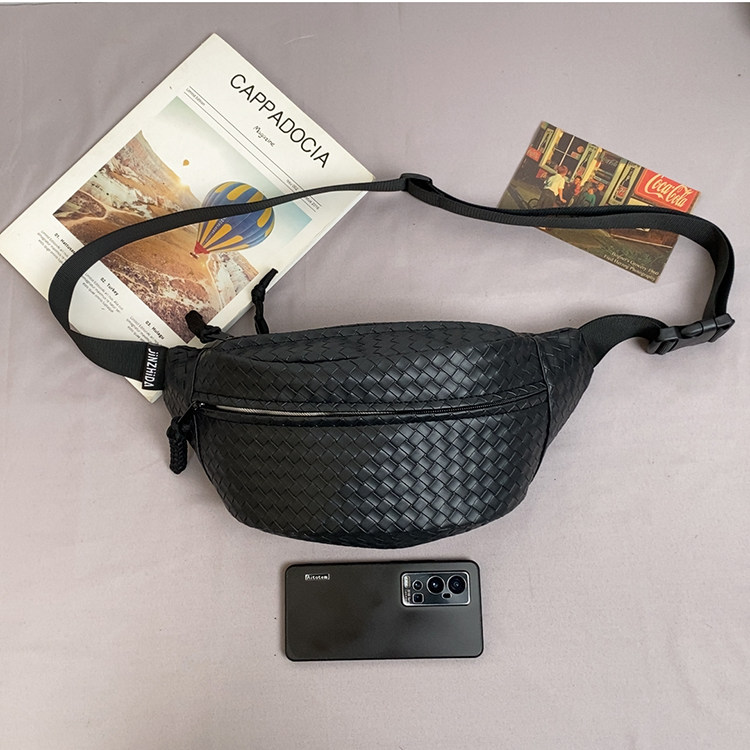 pu編織胸包男女生斜後後背包簡約休閒通勤包騎行包機車後後背包運動單肩包