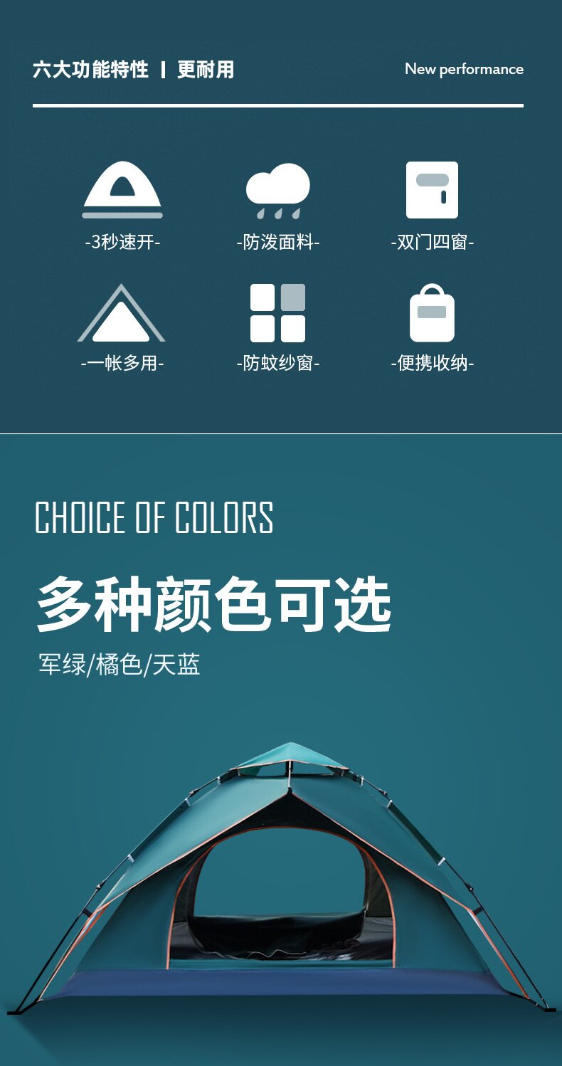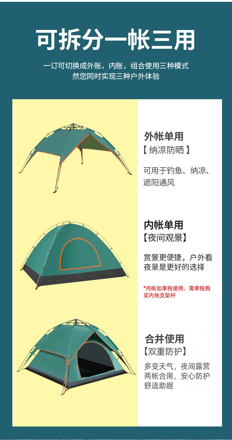 帳篷戶外折曡便捷式露營野營過夜全自動防曬沙灘室內雙層加厚防雨