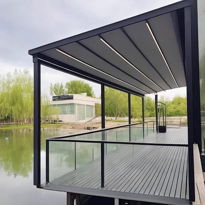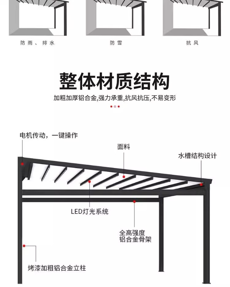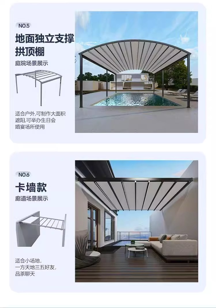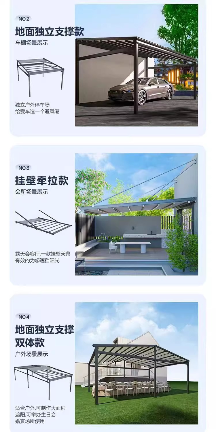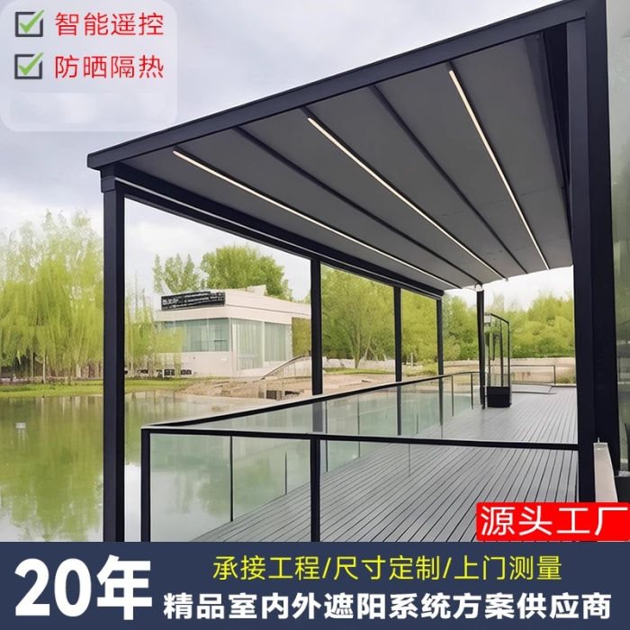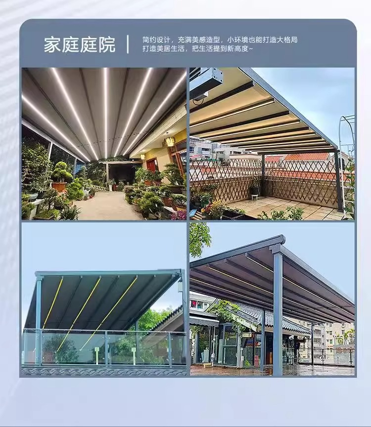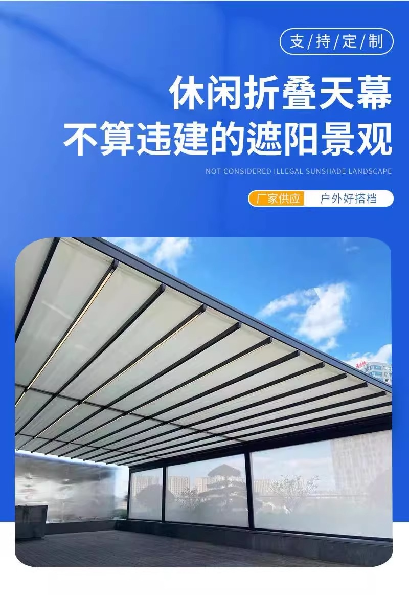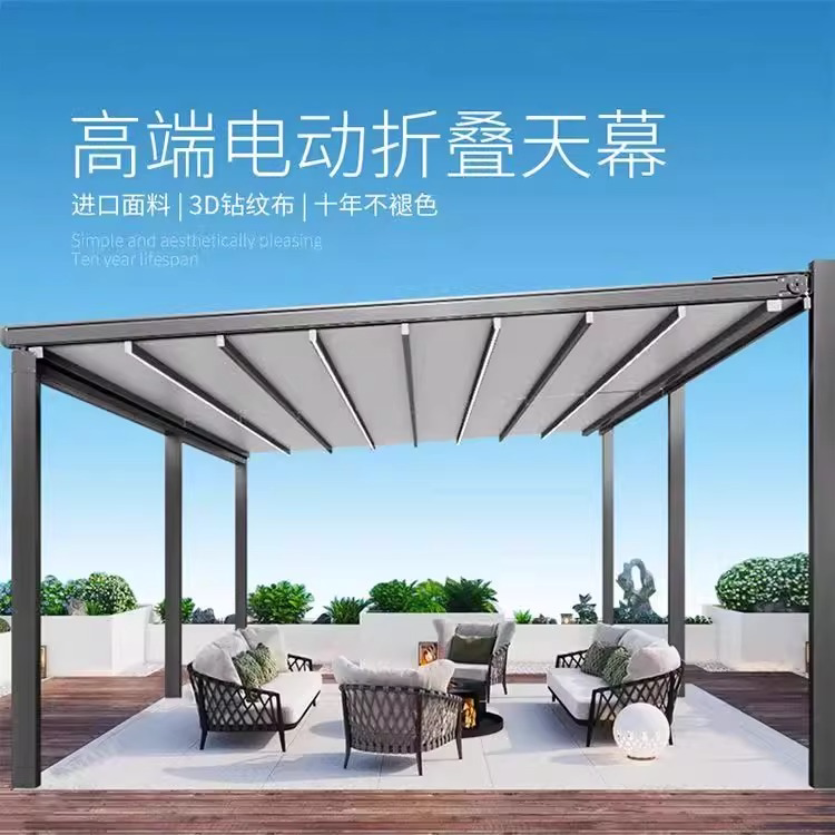戶外電動折曡天幕庭院露台樓頂遙控遮陽棚家用防雨鋁合金折曡雨蓬