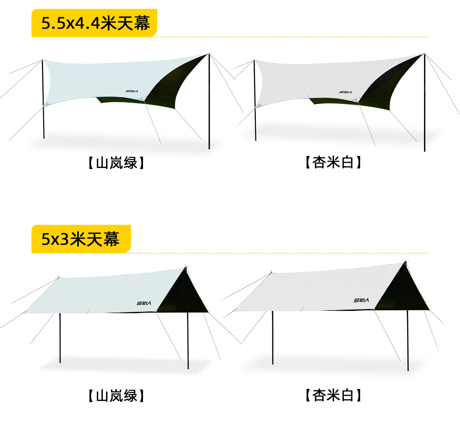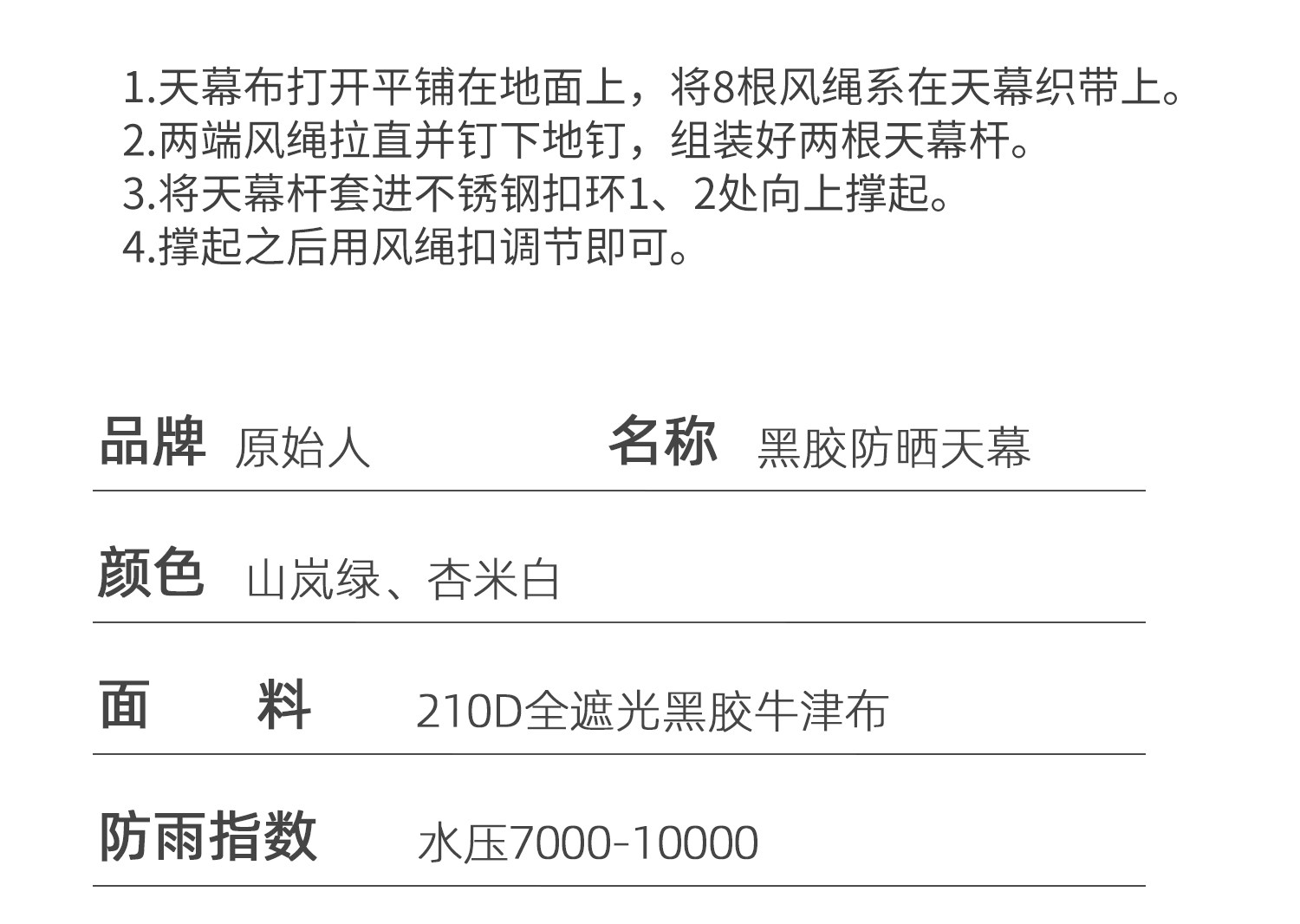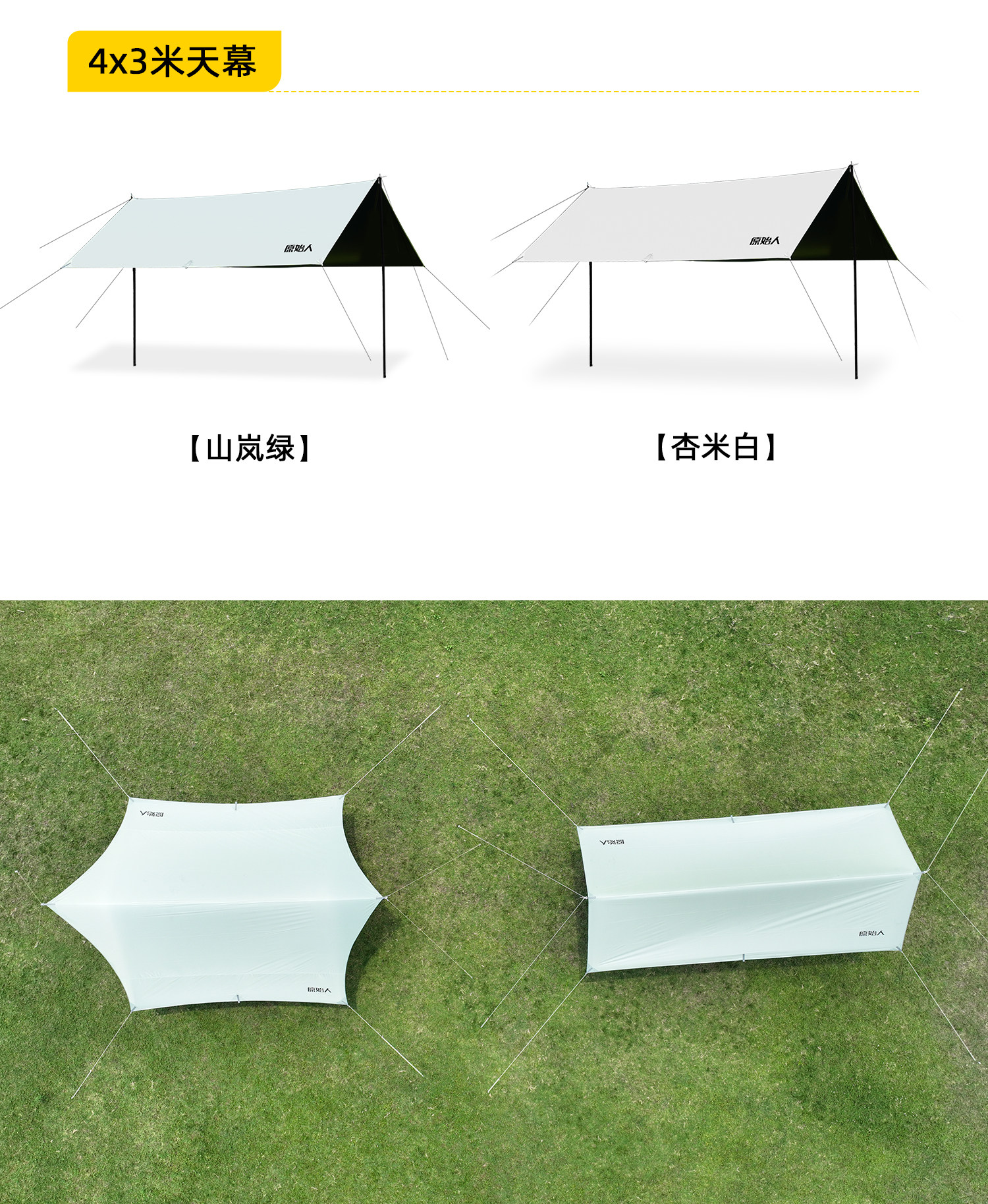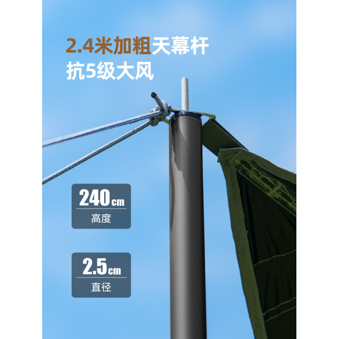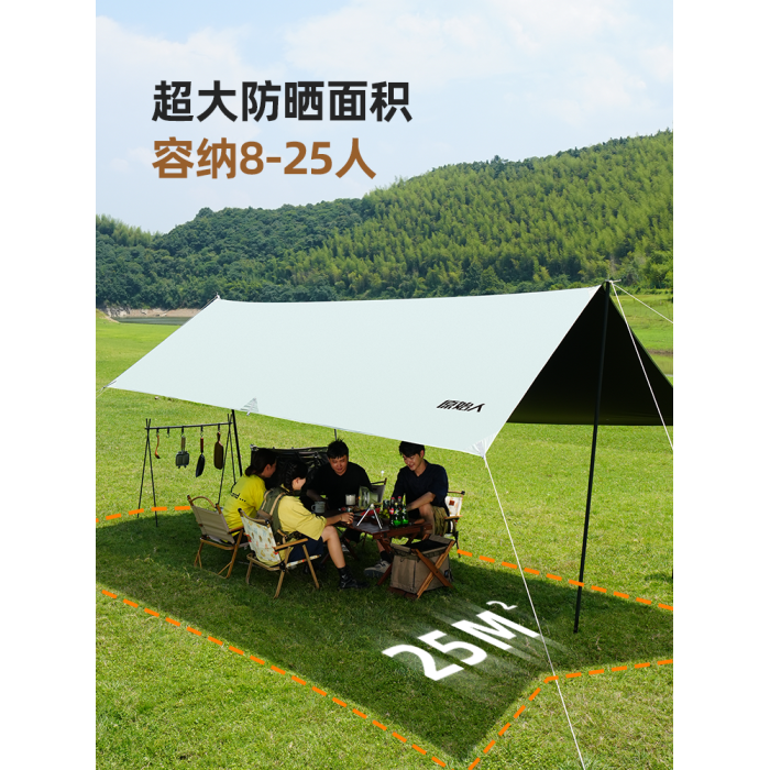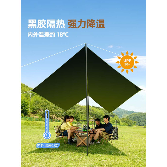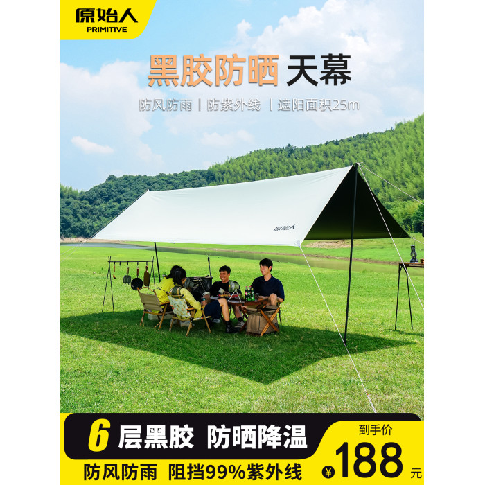 原始人黑膠天幕帳篷戶外露營遮陽可攜式防曬塗層野營防雨大遮陽棚