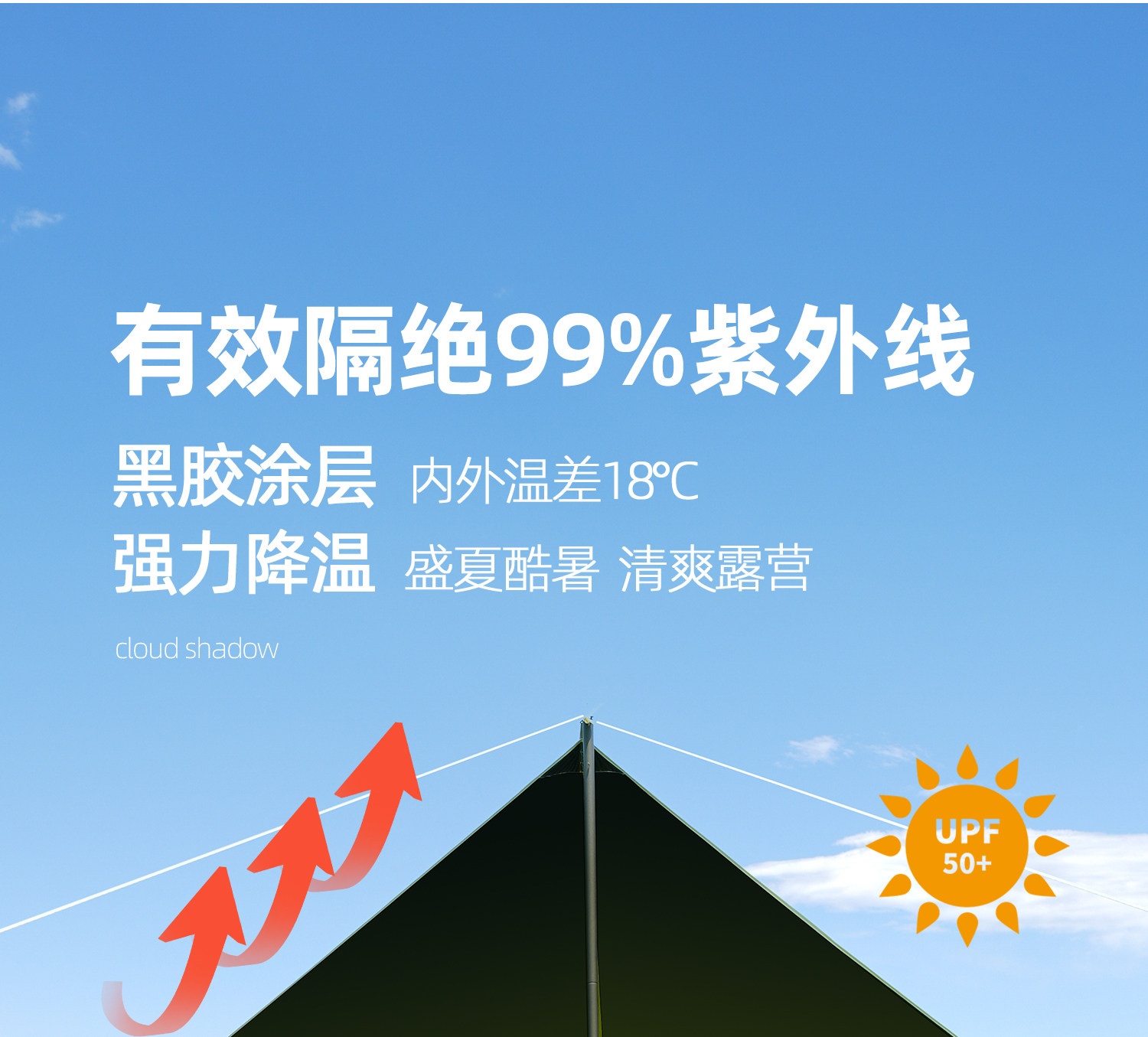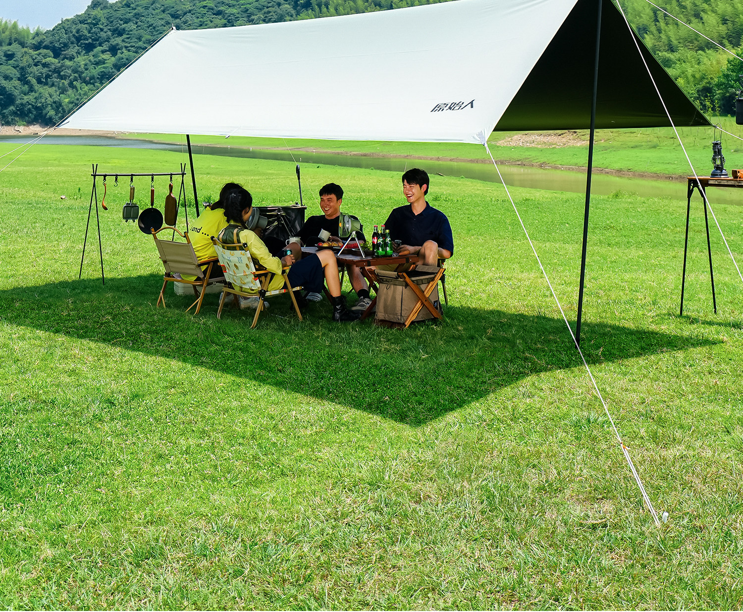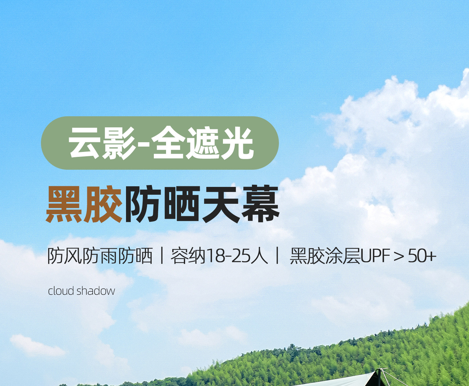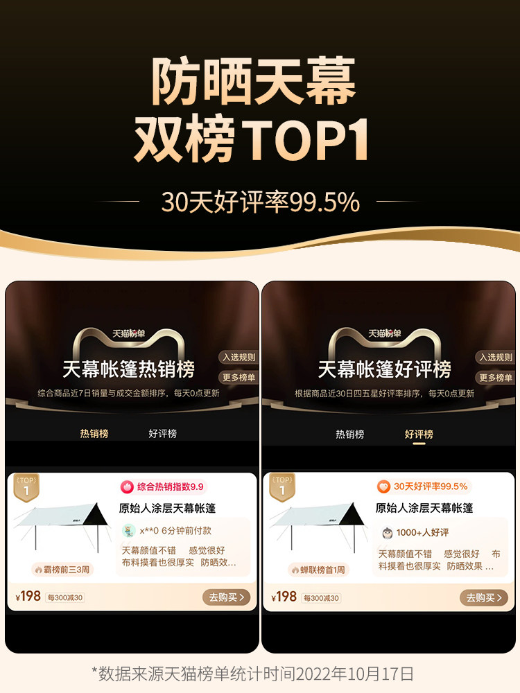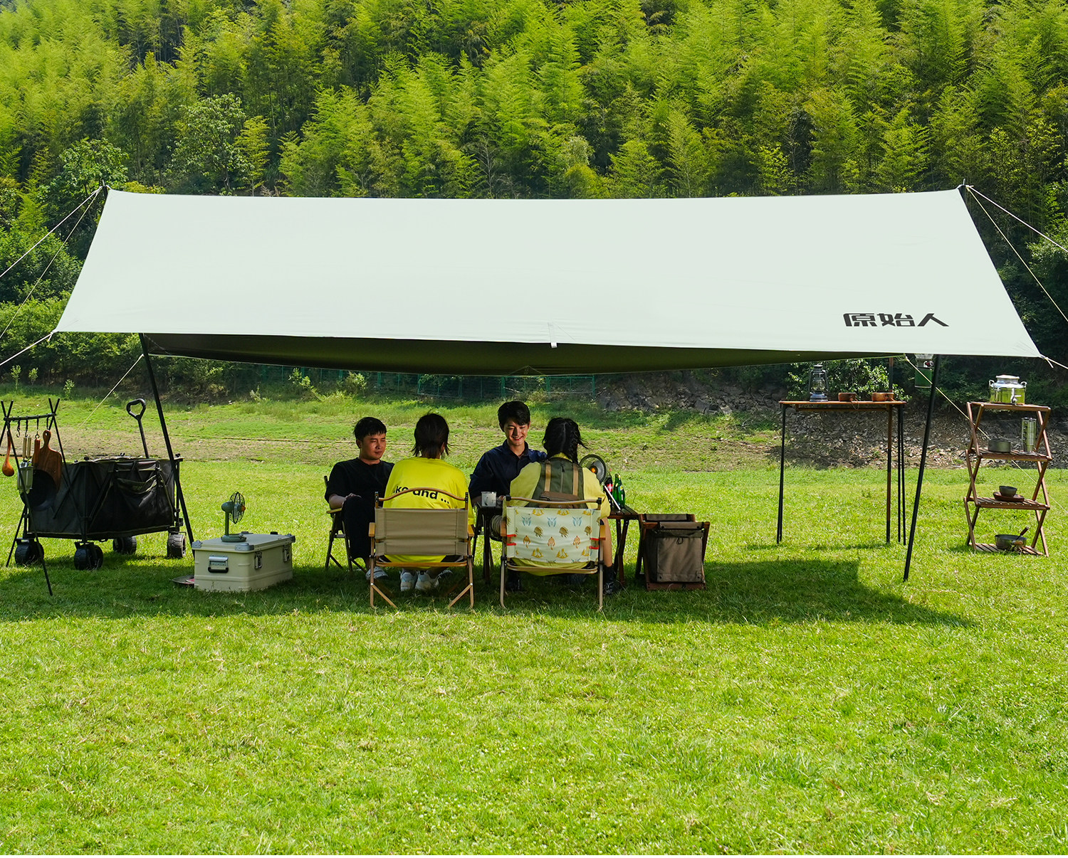 原始人黑膠天幕帳篷戶外露營遮陽可攜式防曬塗層野營防雨大遮陽棚