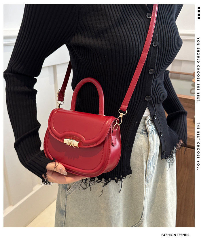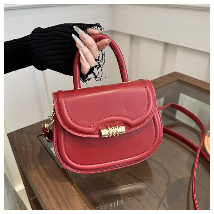 手提紅色包包春夏女2024新款潮復古馬鞍包小衆百搭單肩斜後後背包婚包