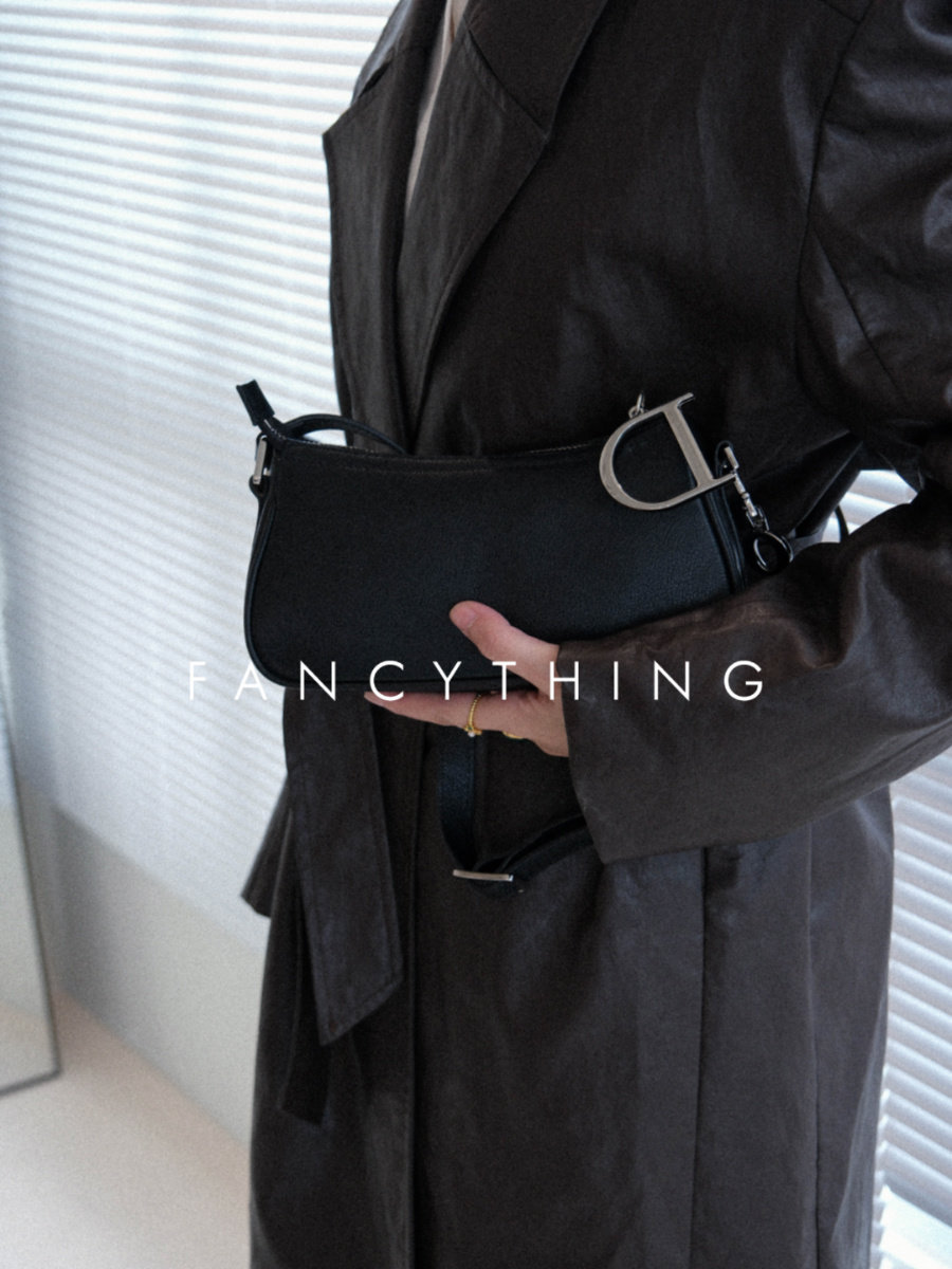 Fancything 巴黎法式vintage復古D釦女單肩包法棍包腋下包