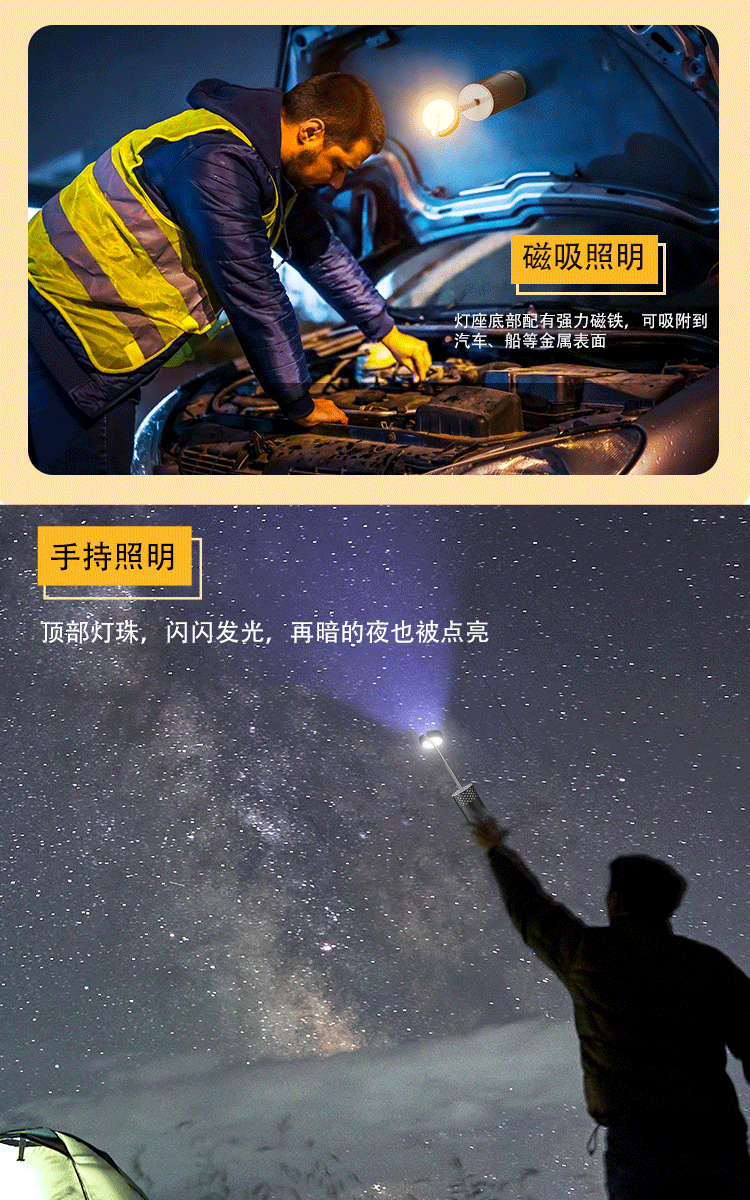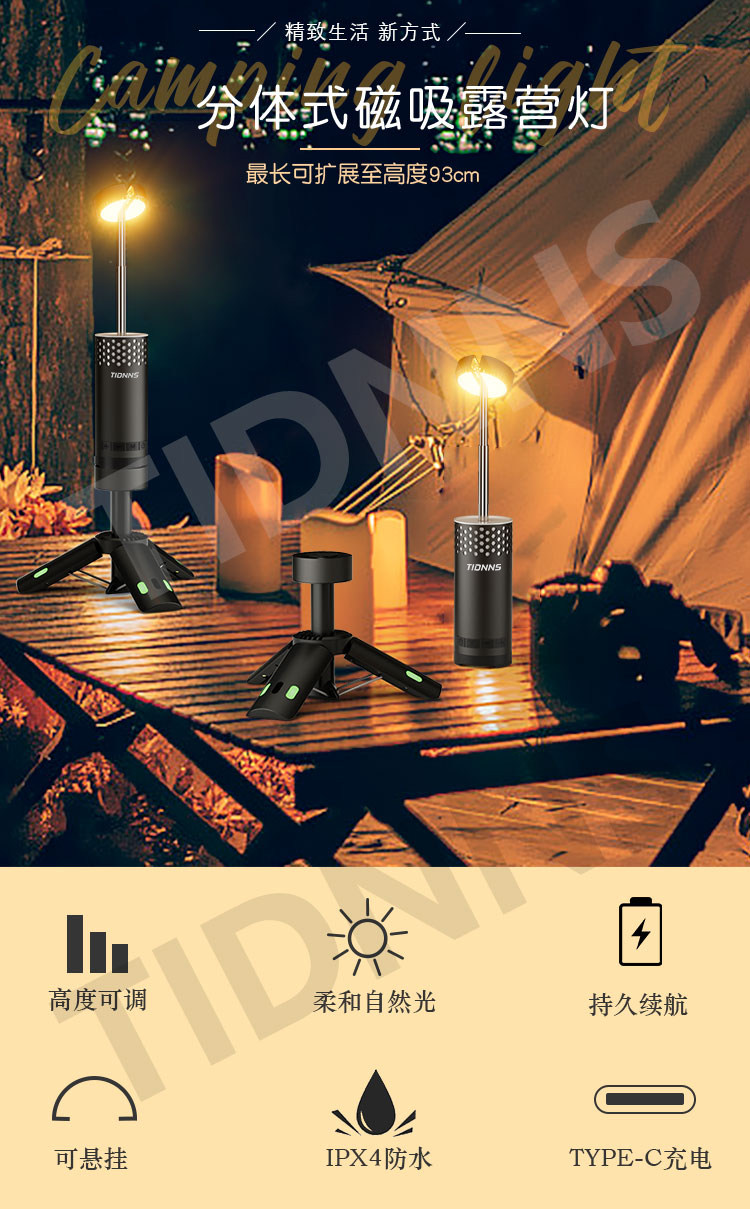 TIDNNS戶外露營燈可拆卸伸縮帶支架多功能超長續航應急工作燈防水