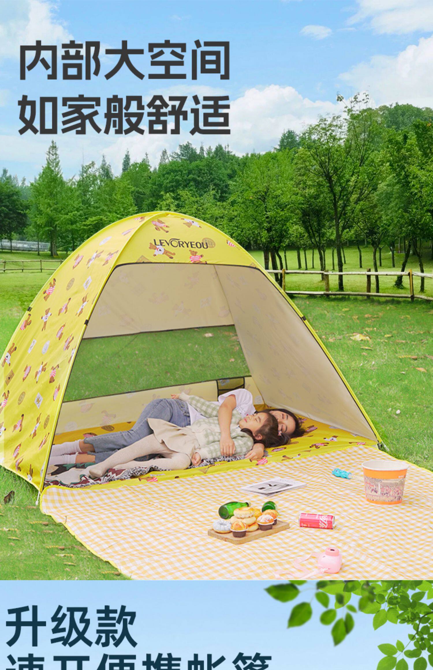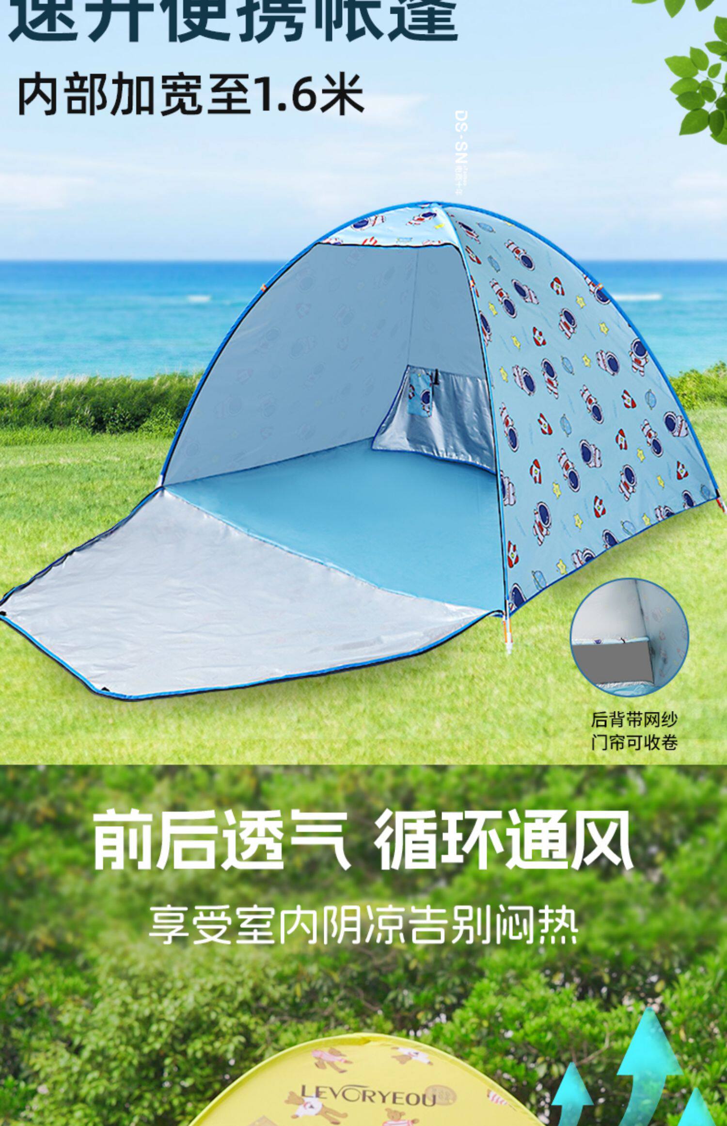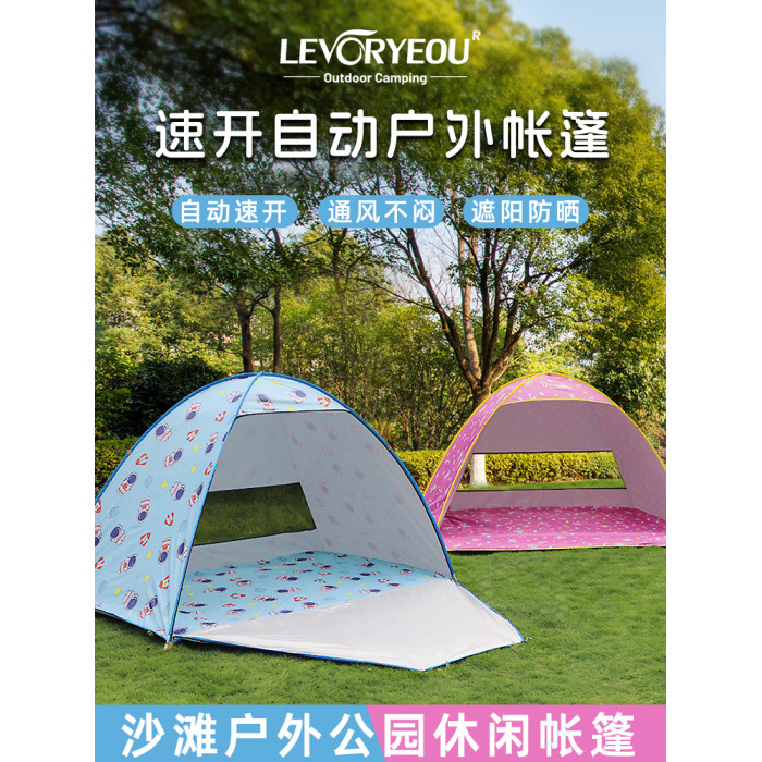 戶外速開帳篷沙灘帳遮陽簡易兒童公園海邊休閒全自動露營帳篷防曬