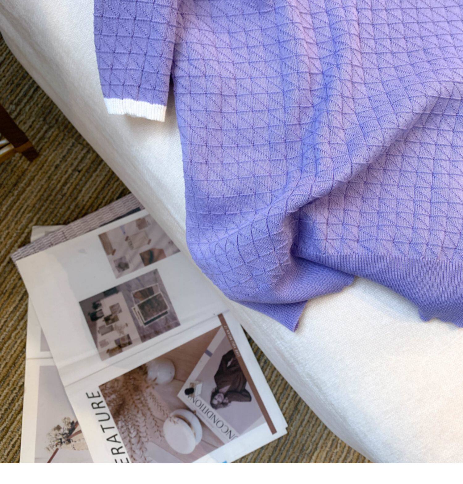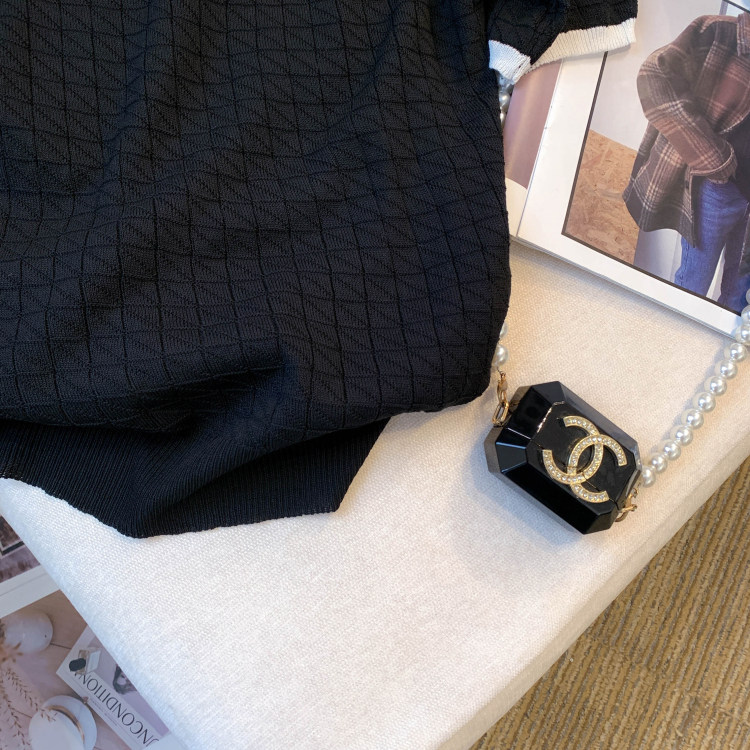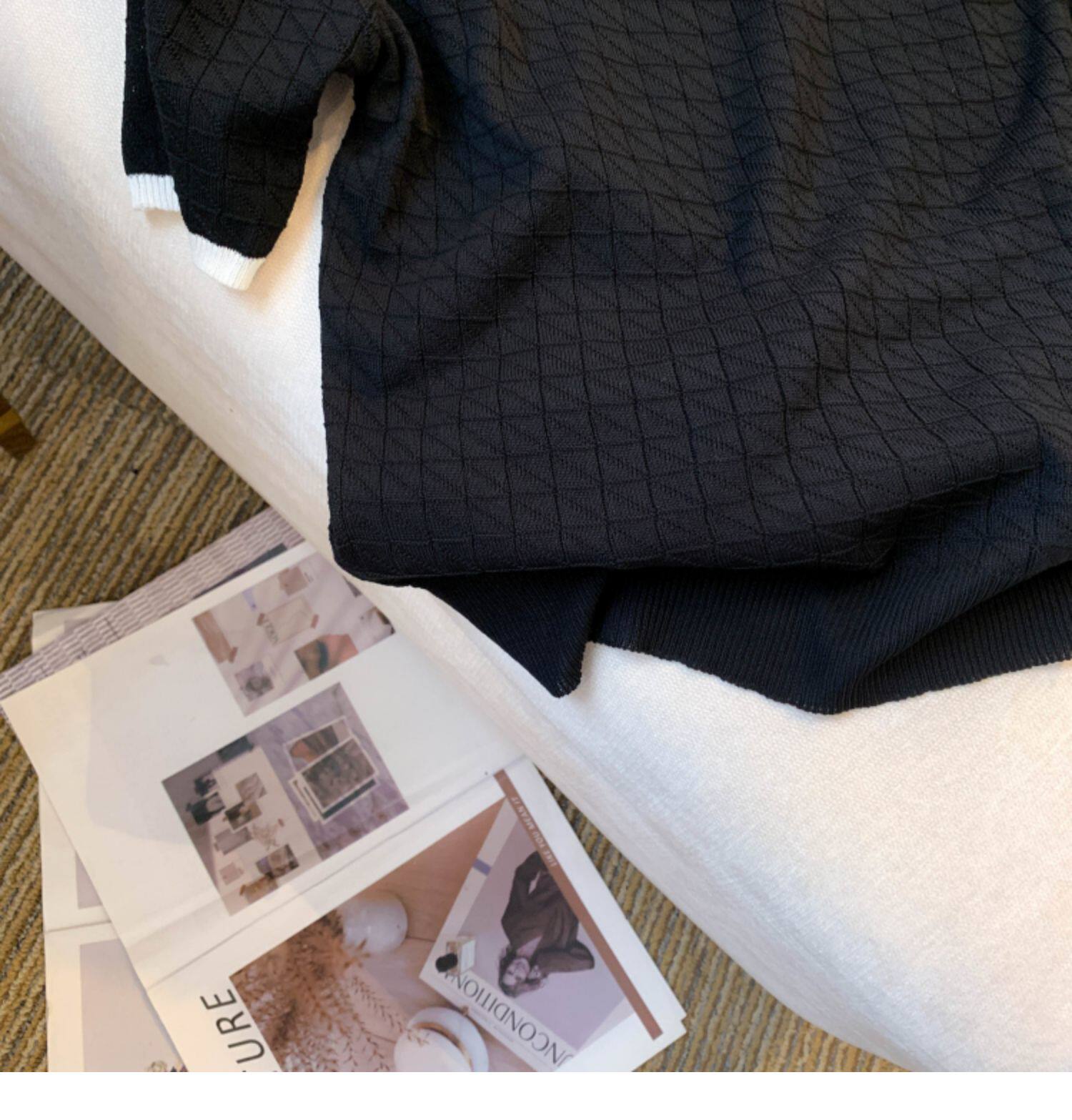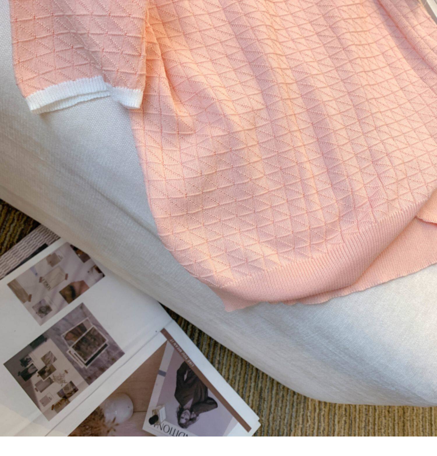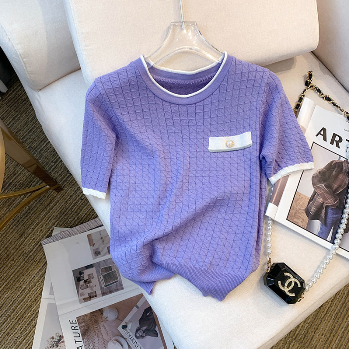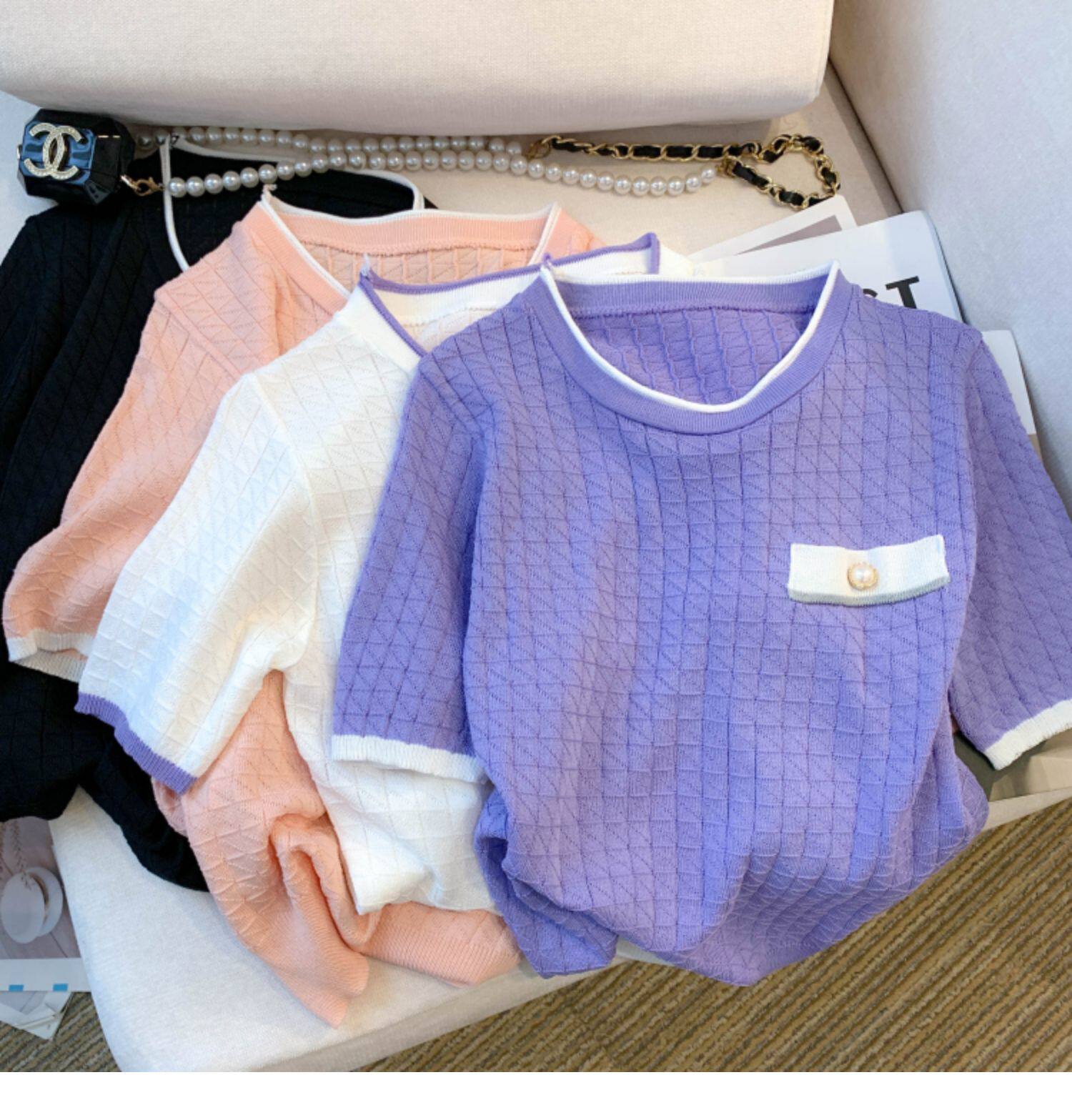 專櫃撤廻剪標設計感小香風圓領短袖T恤女春夏新款冰絲針織短上衣