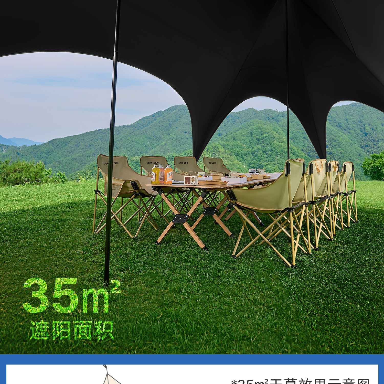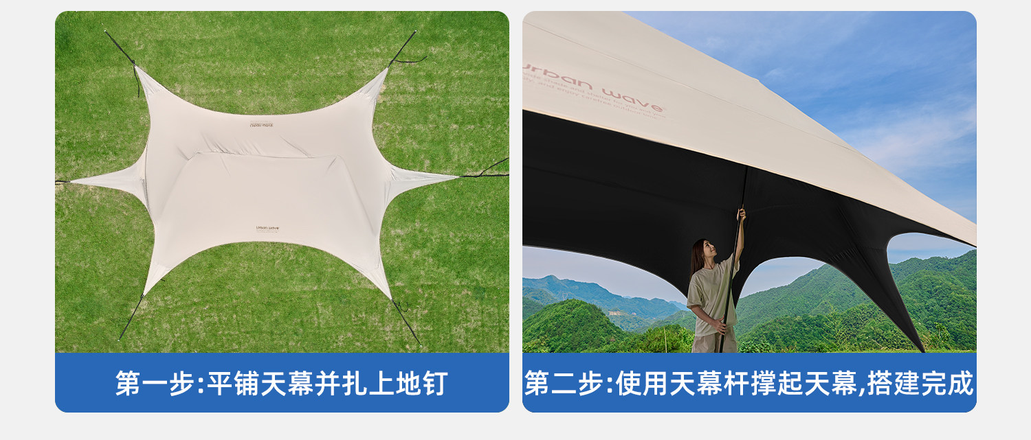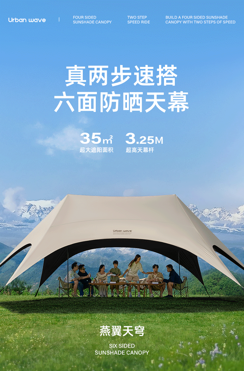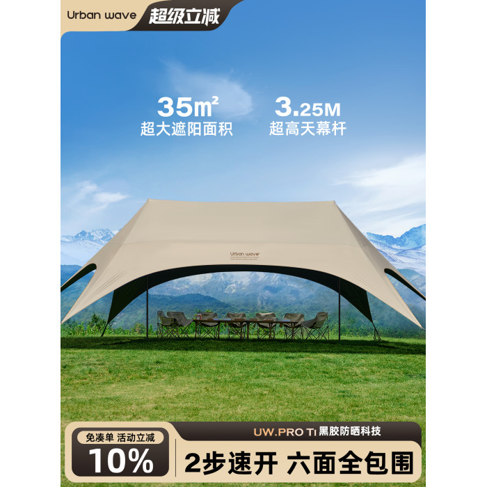 Urbanwave黑膠天幕帳篷戶外25新款桌椅露營六件套防曬遮陽免搭布