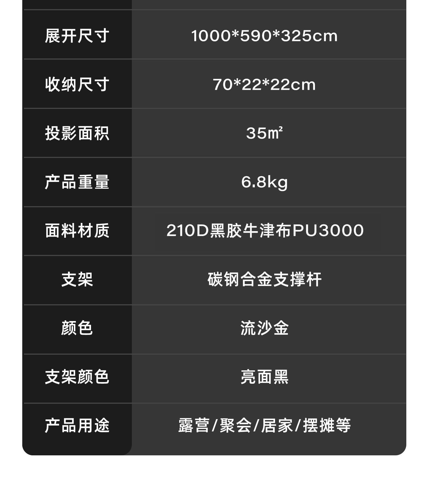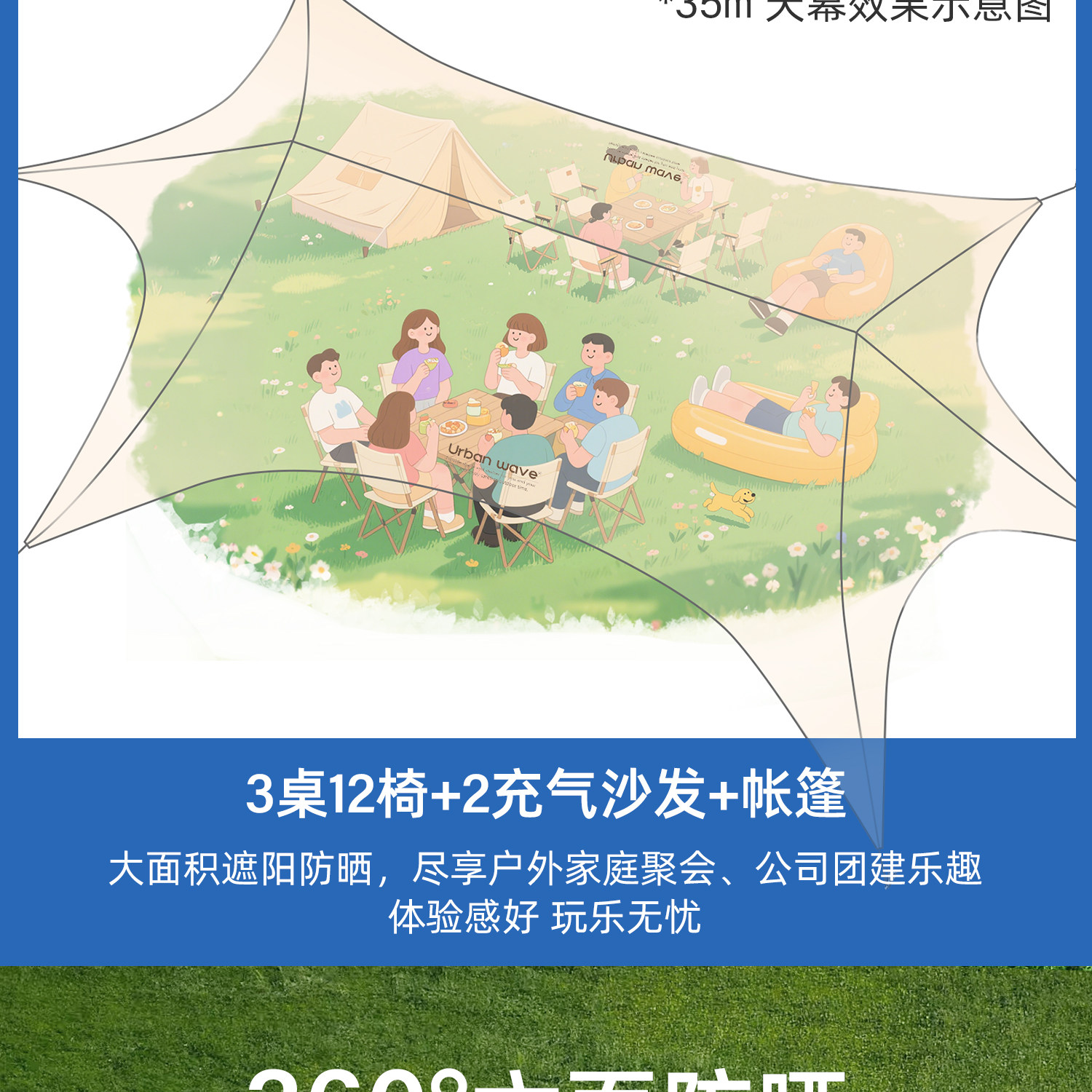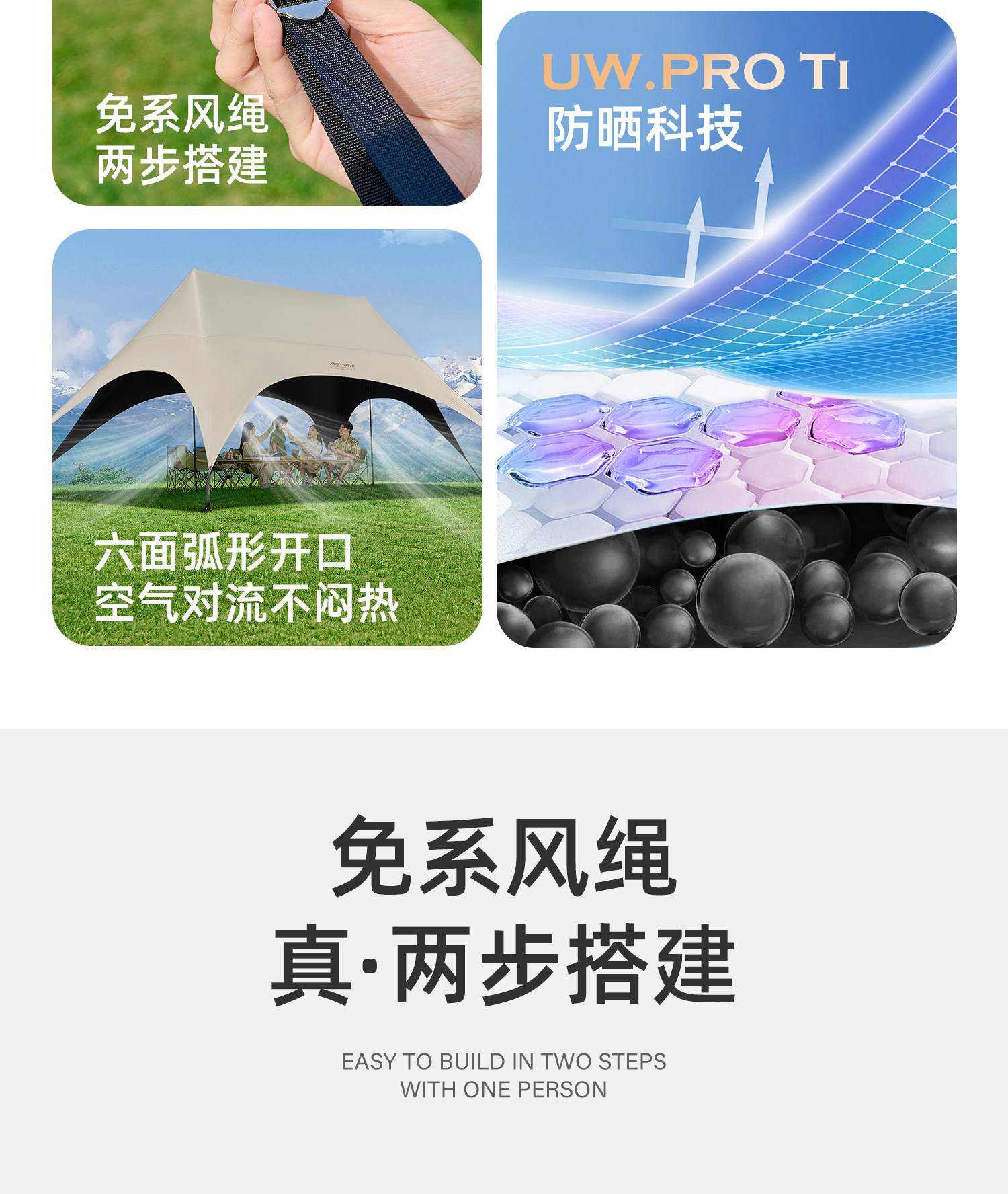 Urbanwave黑膠天幕帳篷戶外25新款桌椅露營六件套防曬遮陽免搭布
