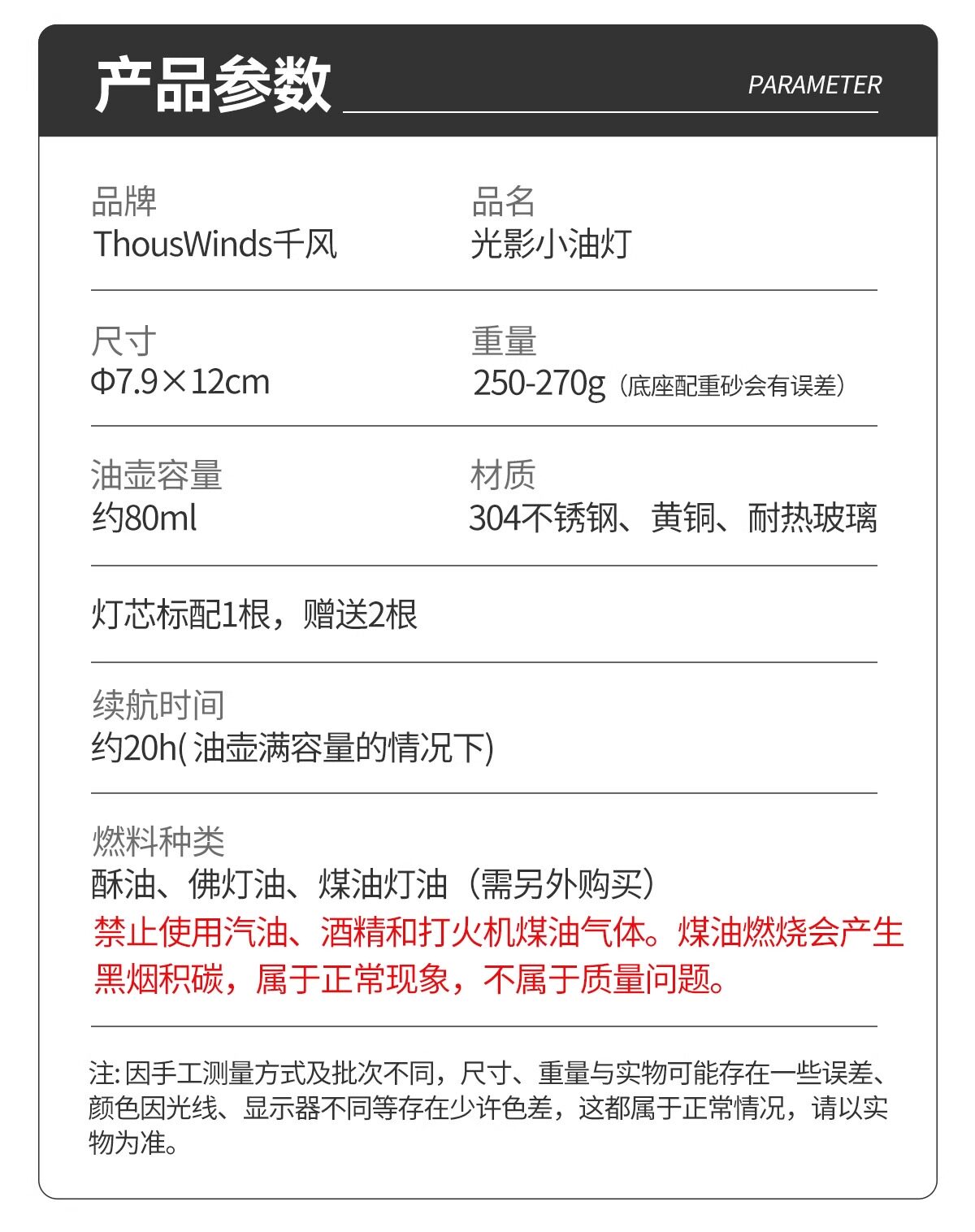 Thous Winds千風光影小油燈煤油燈戶外影花氛圍燈老式復古燭台燈