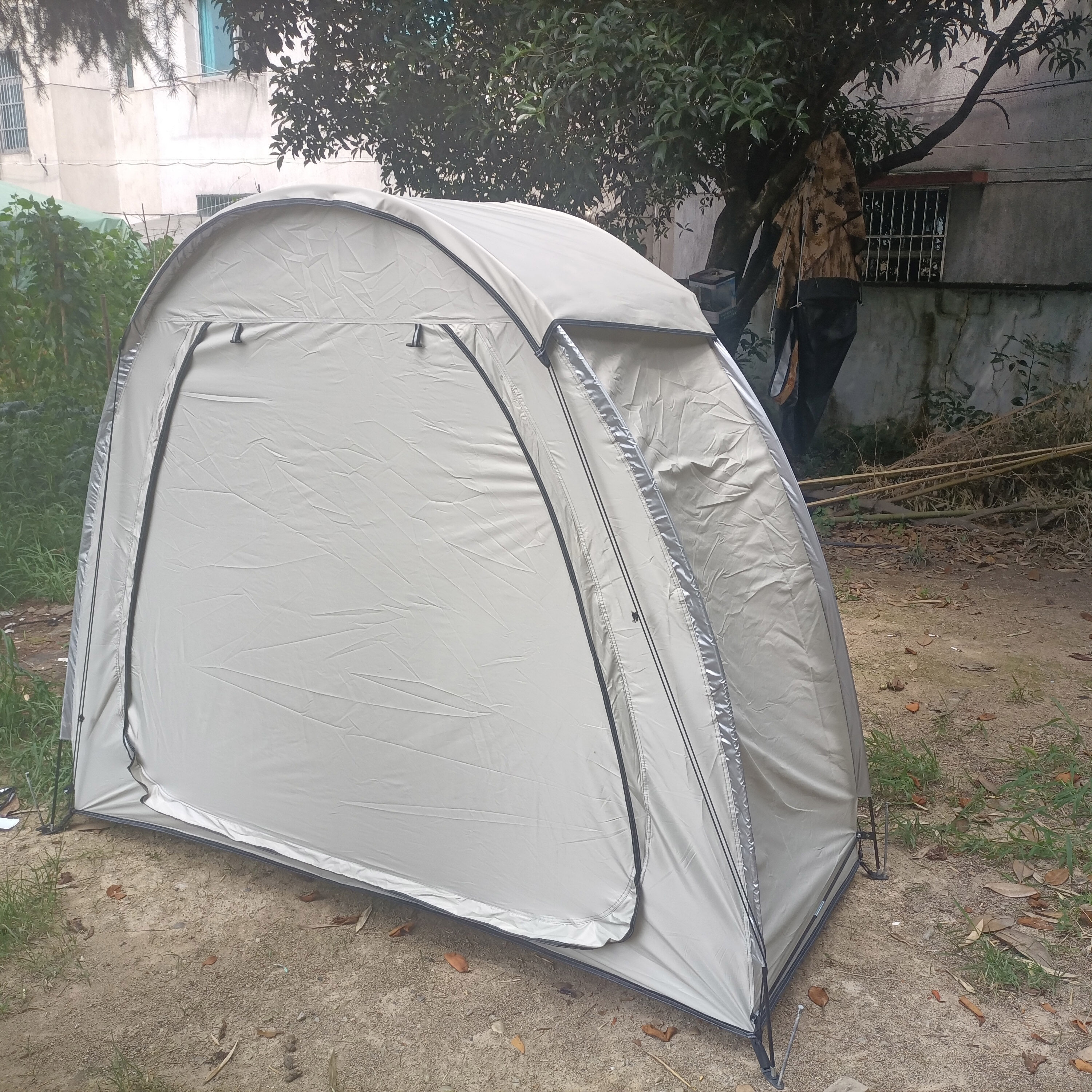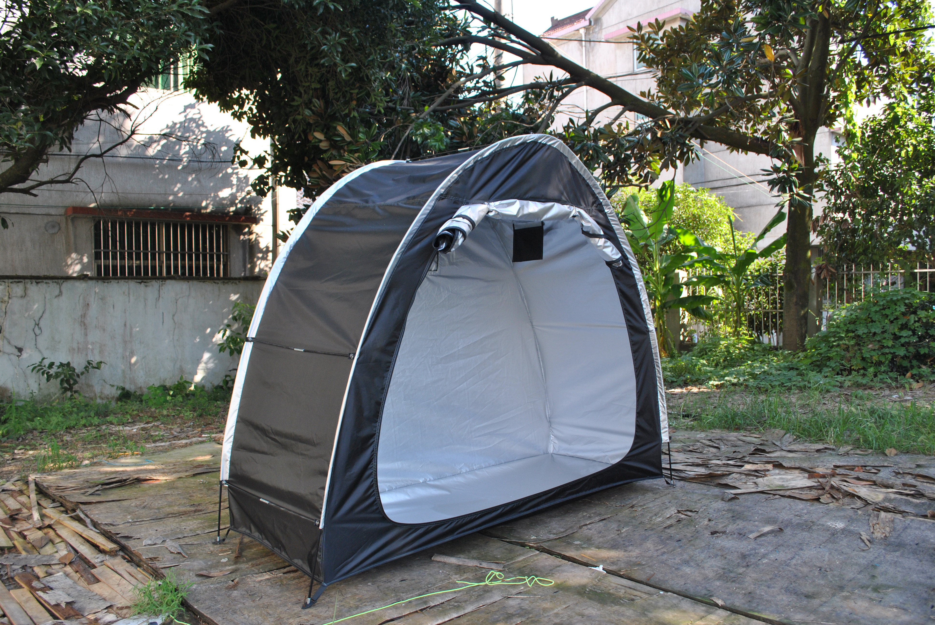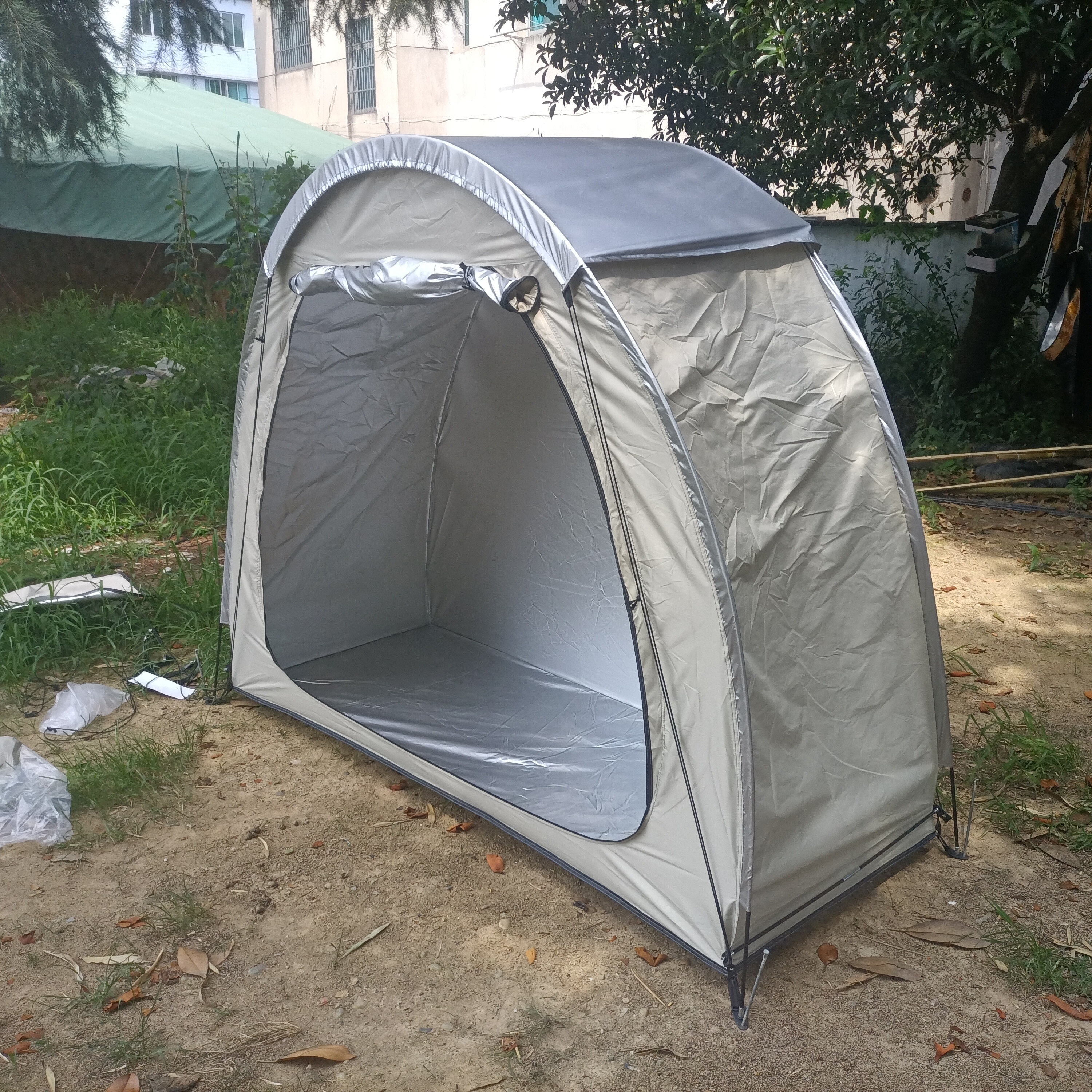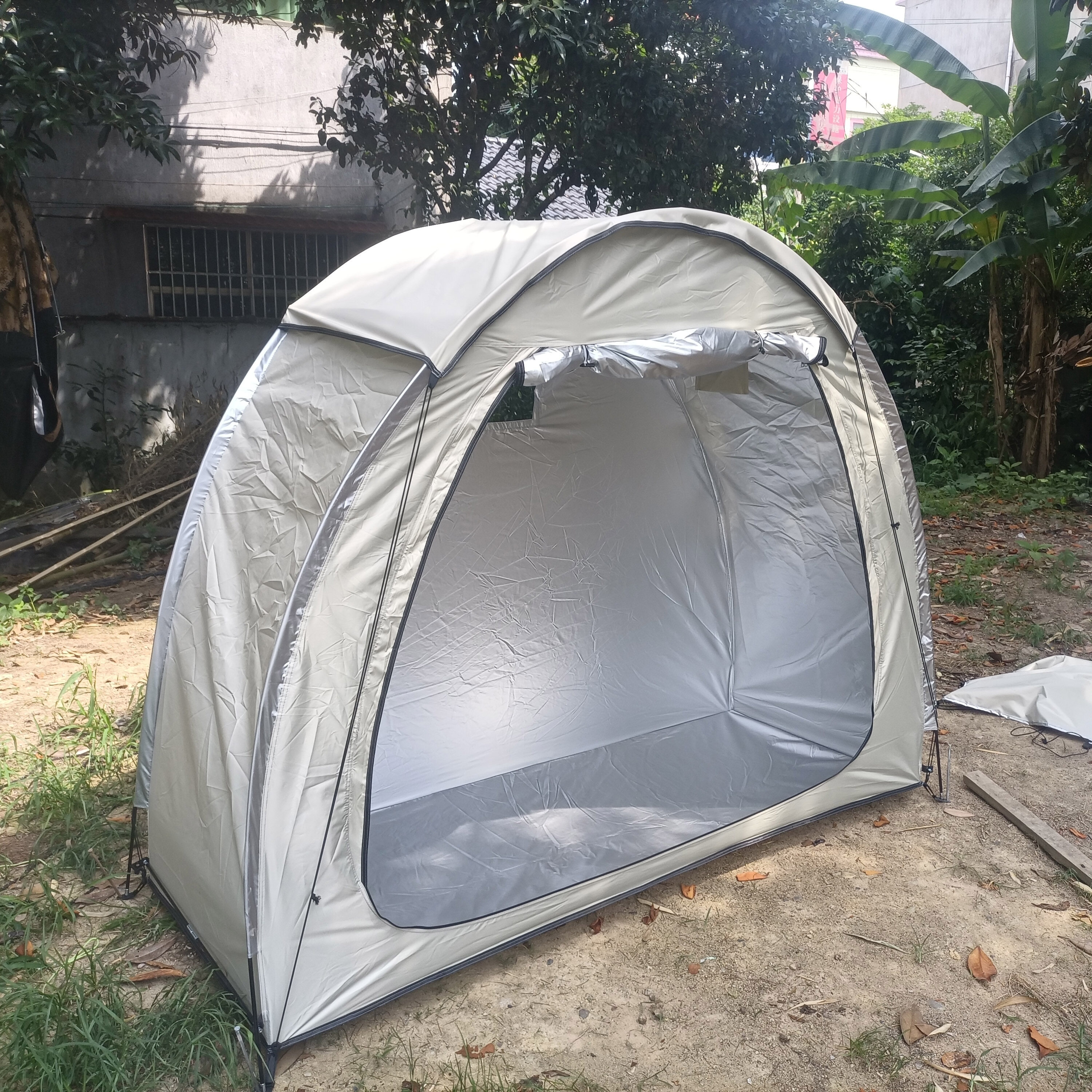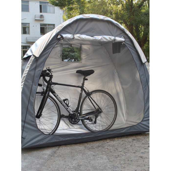 防暴雨加防雨罩深灰色騎行自行車帳篷儲物室帳篷,雙層山地車帳篷