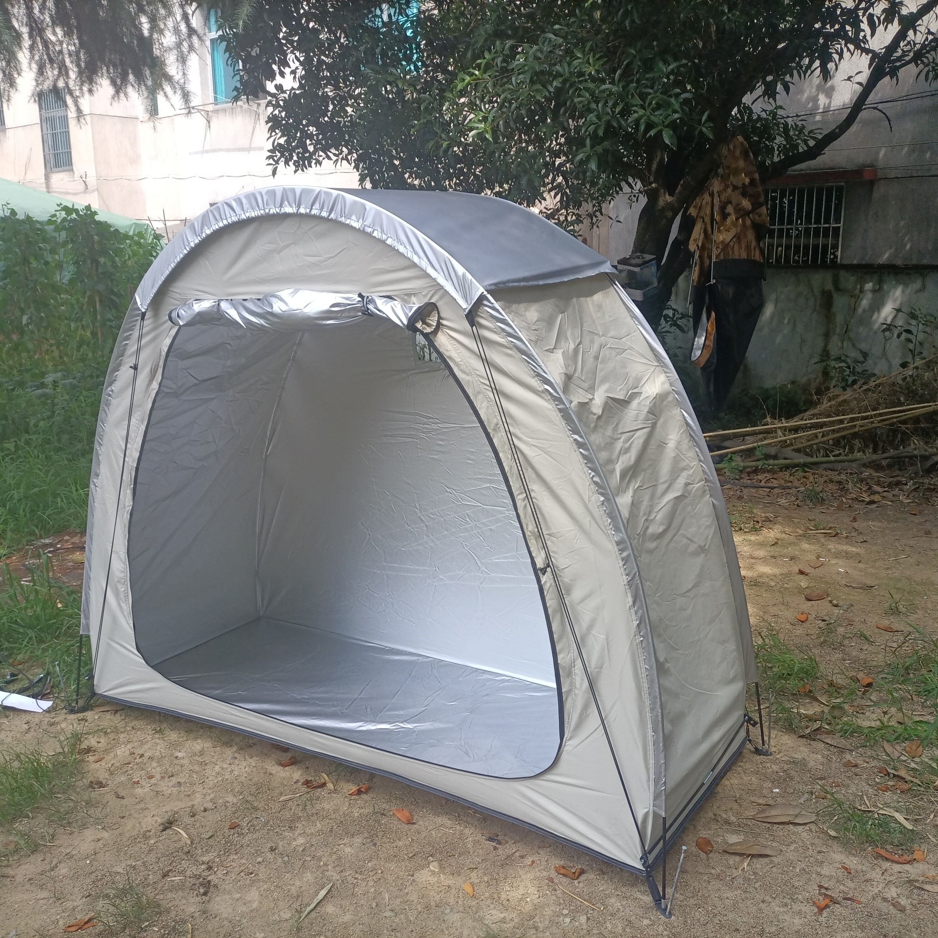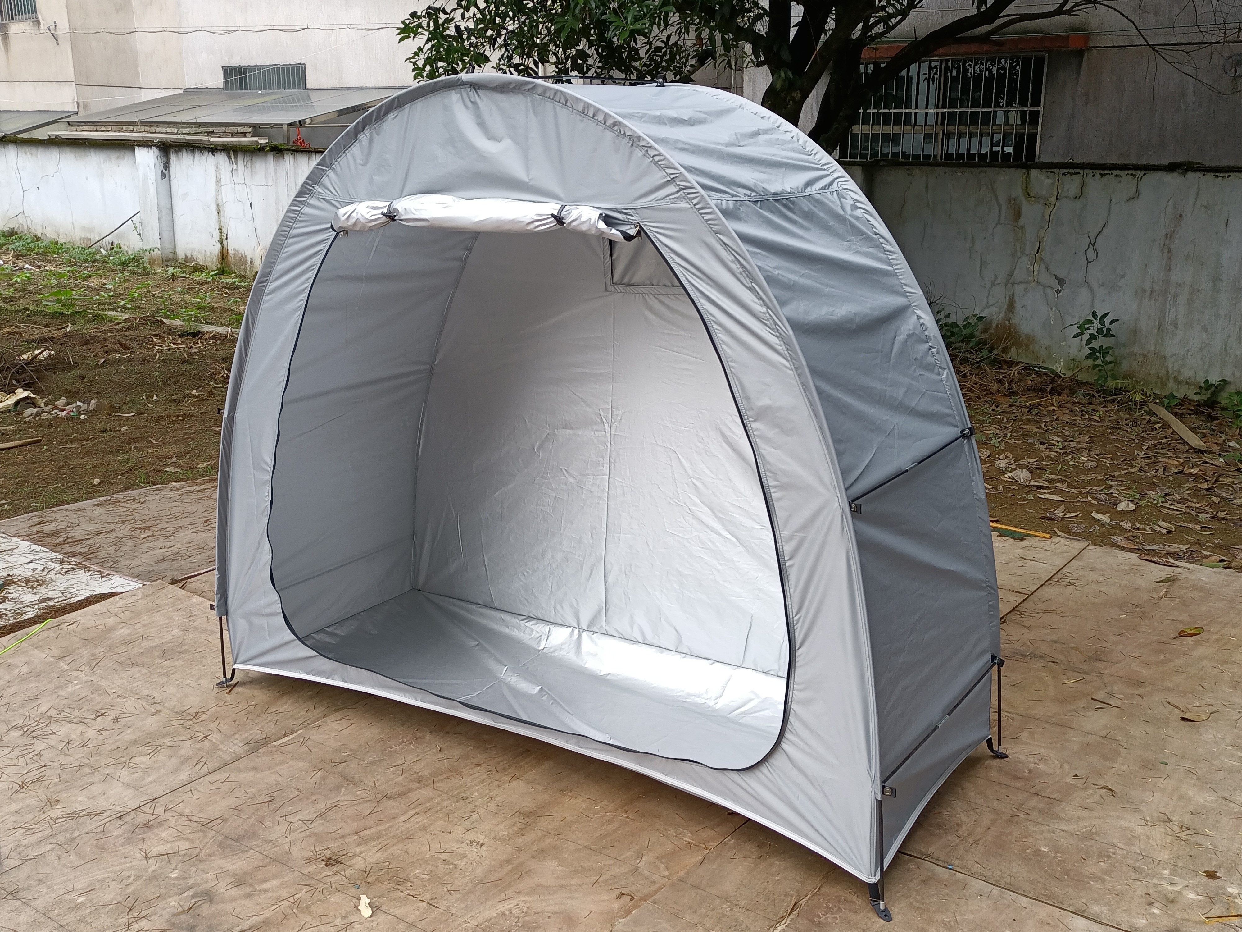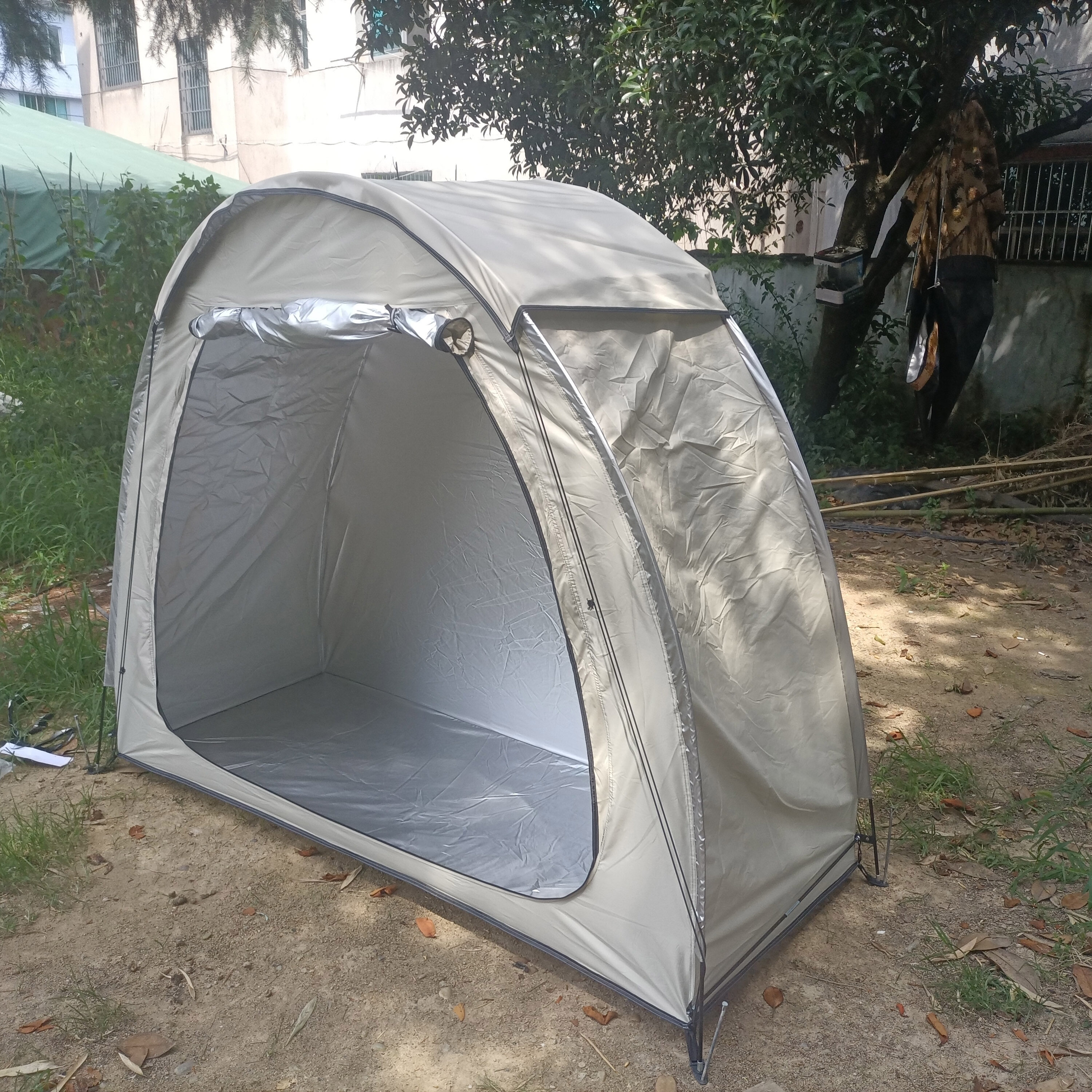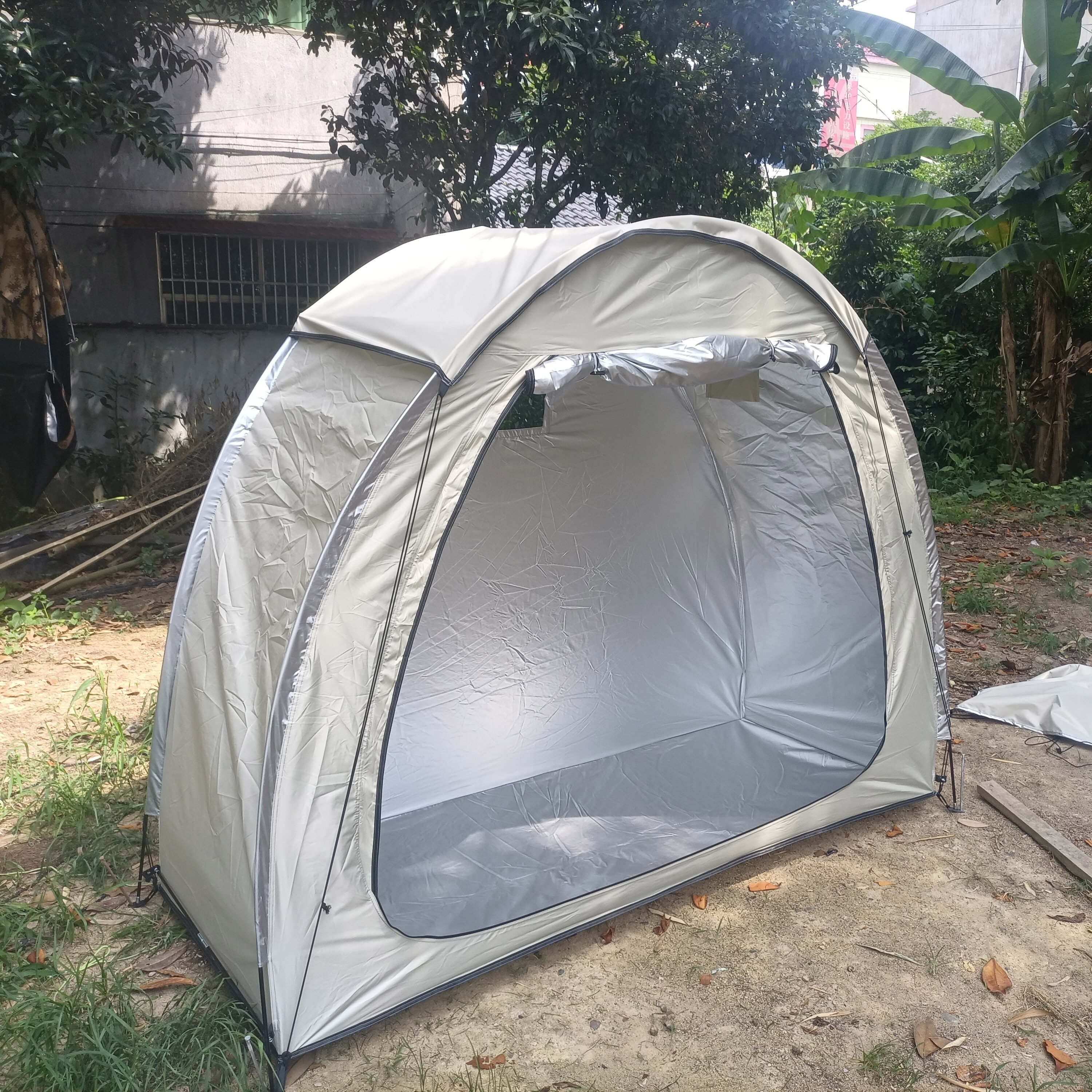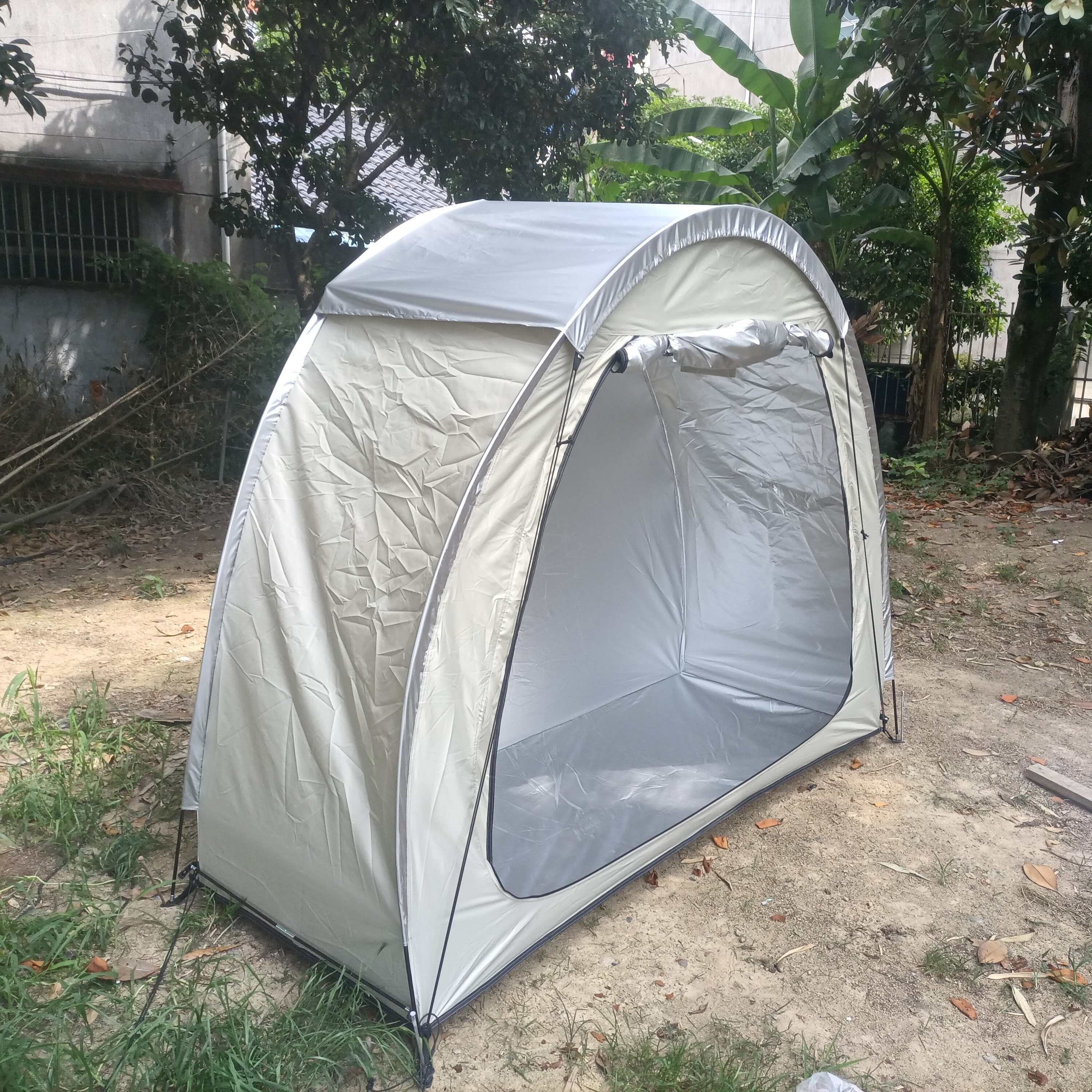 防暴雨加防雨罩深灰色騎行自行車帳篷儲物室帳篷,雙層山地車帳篷