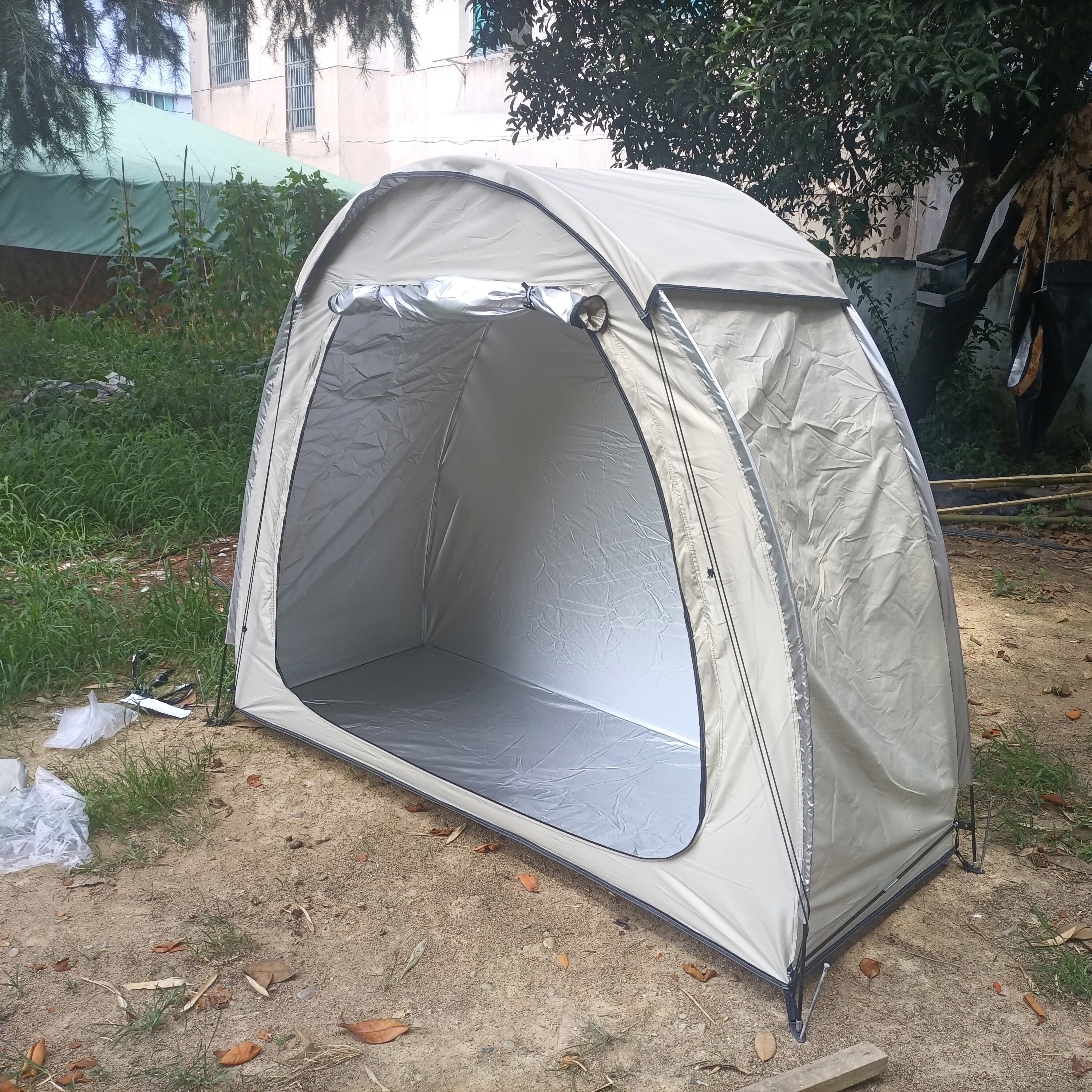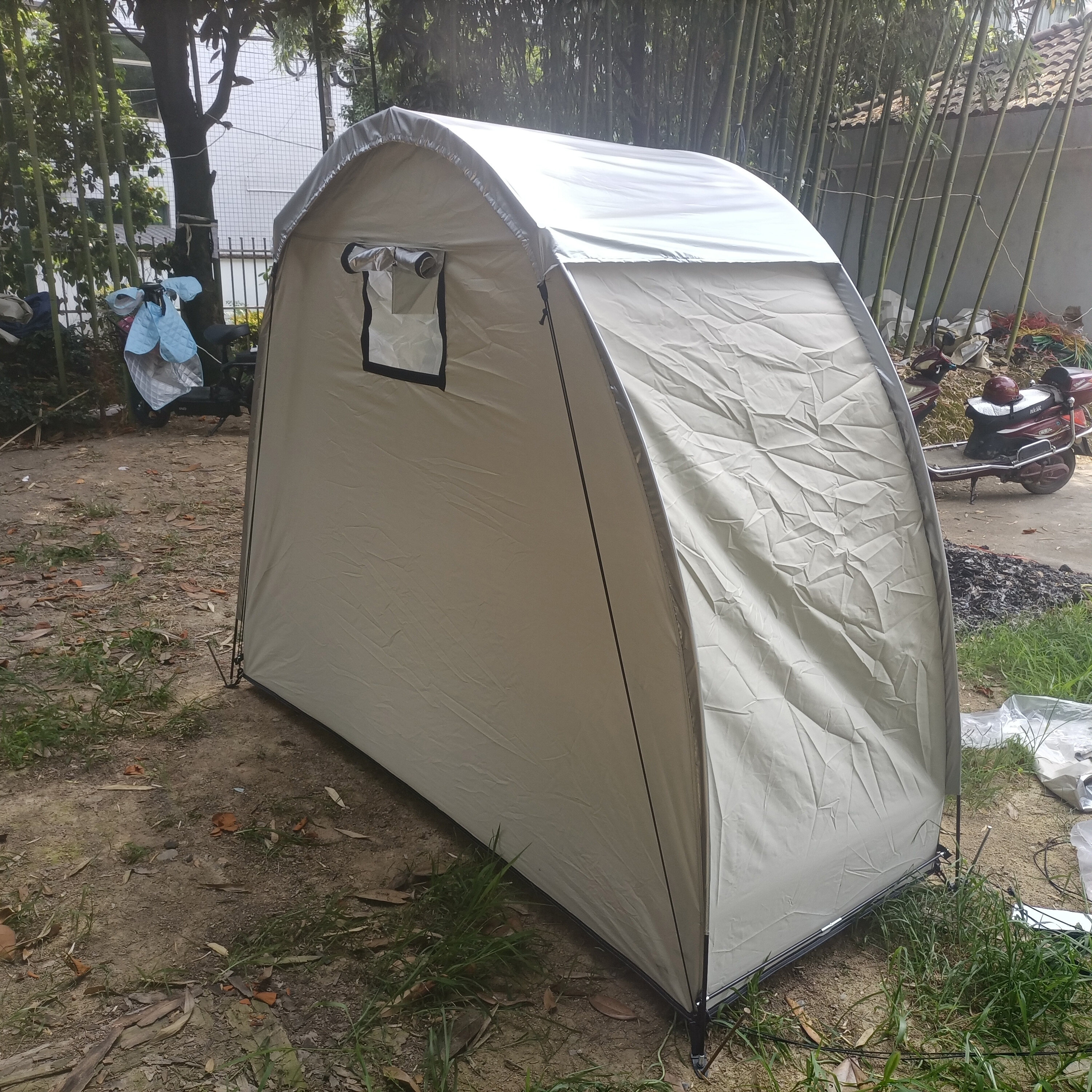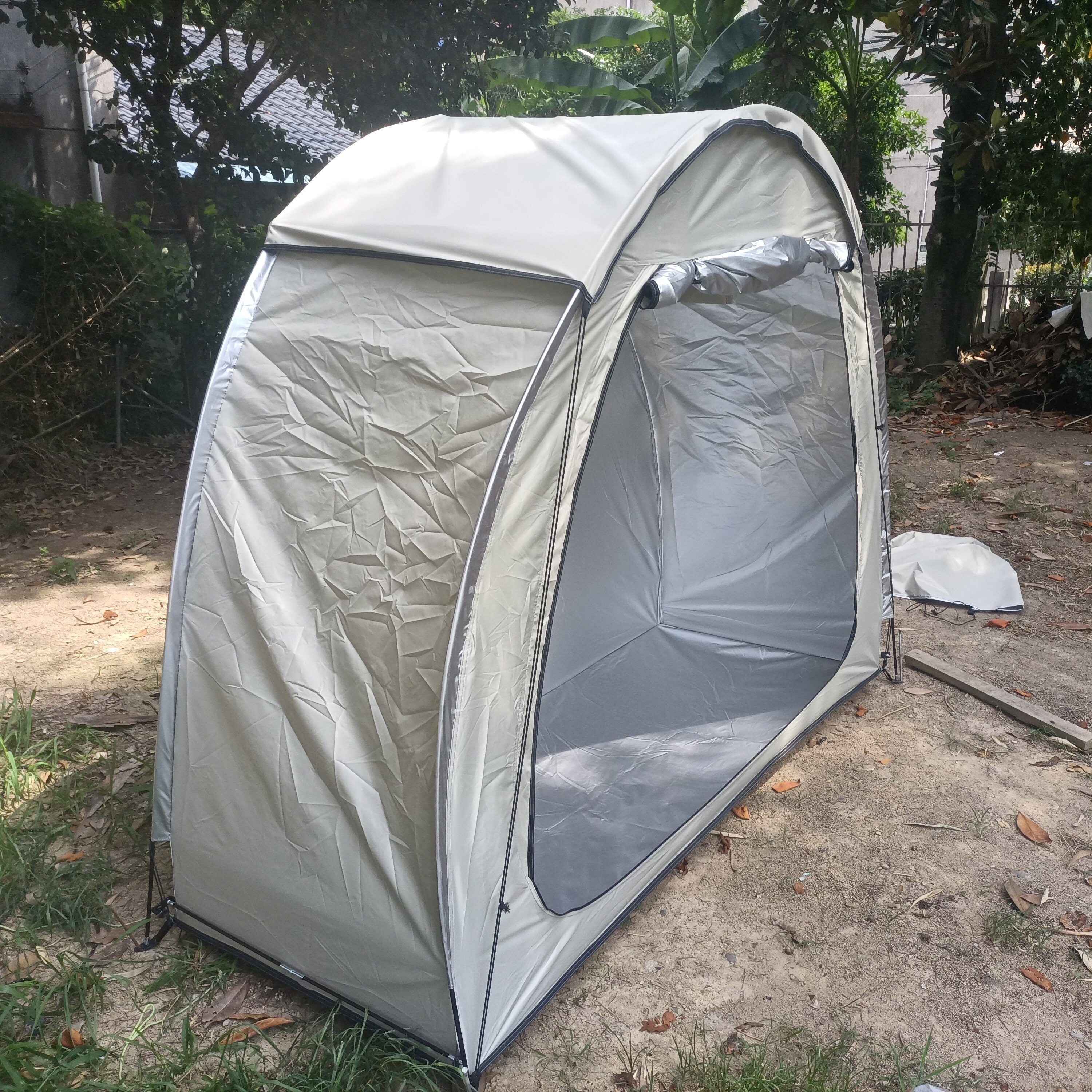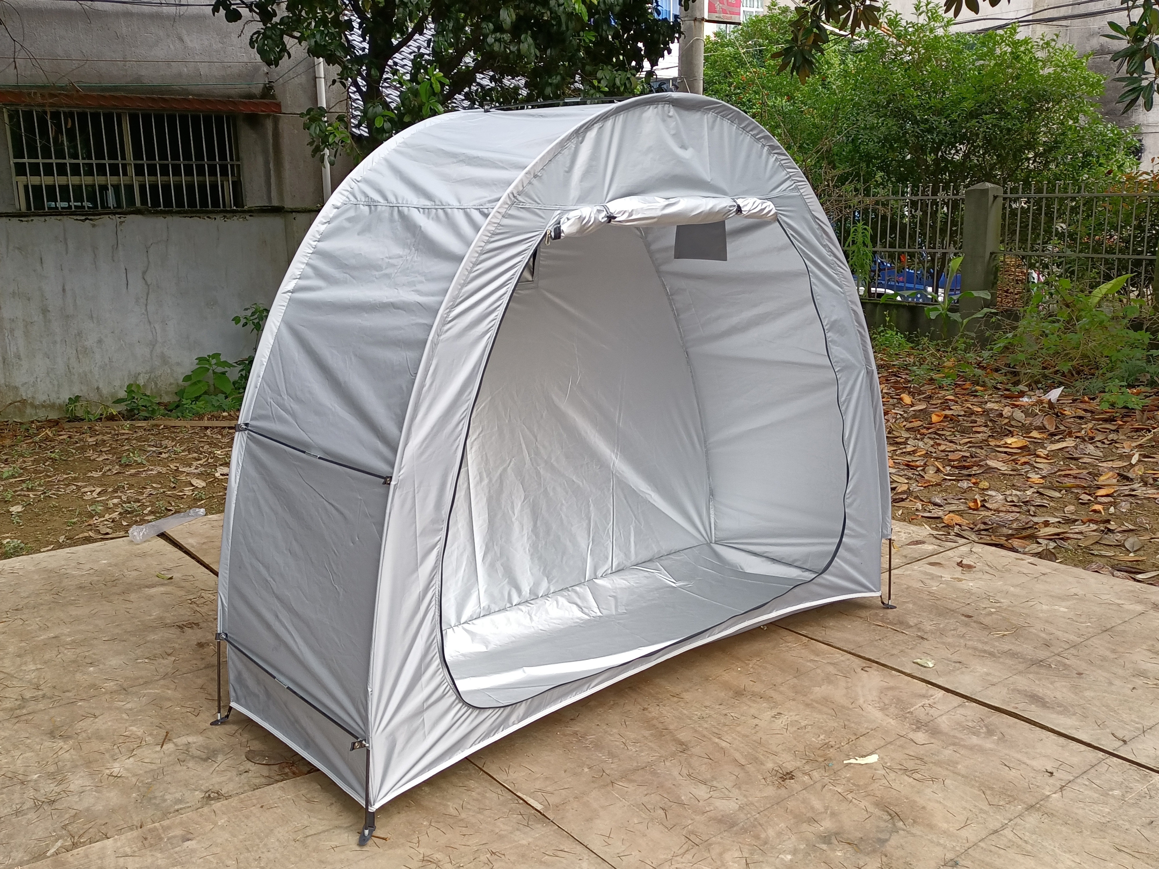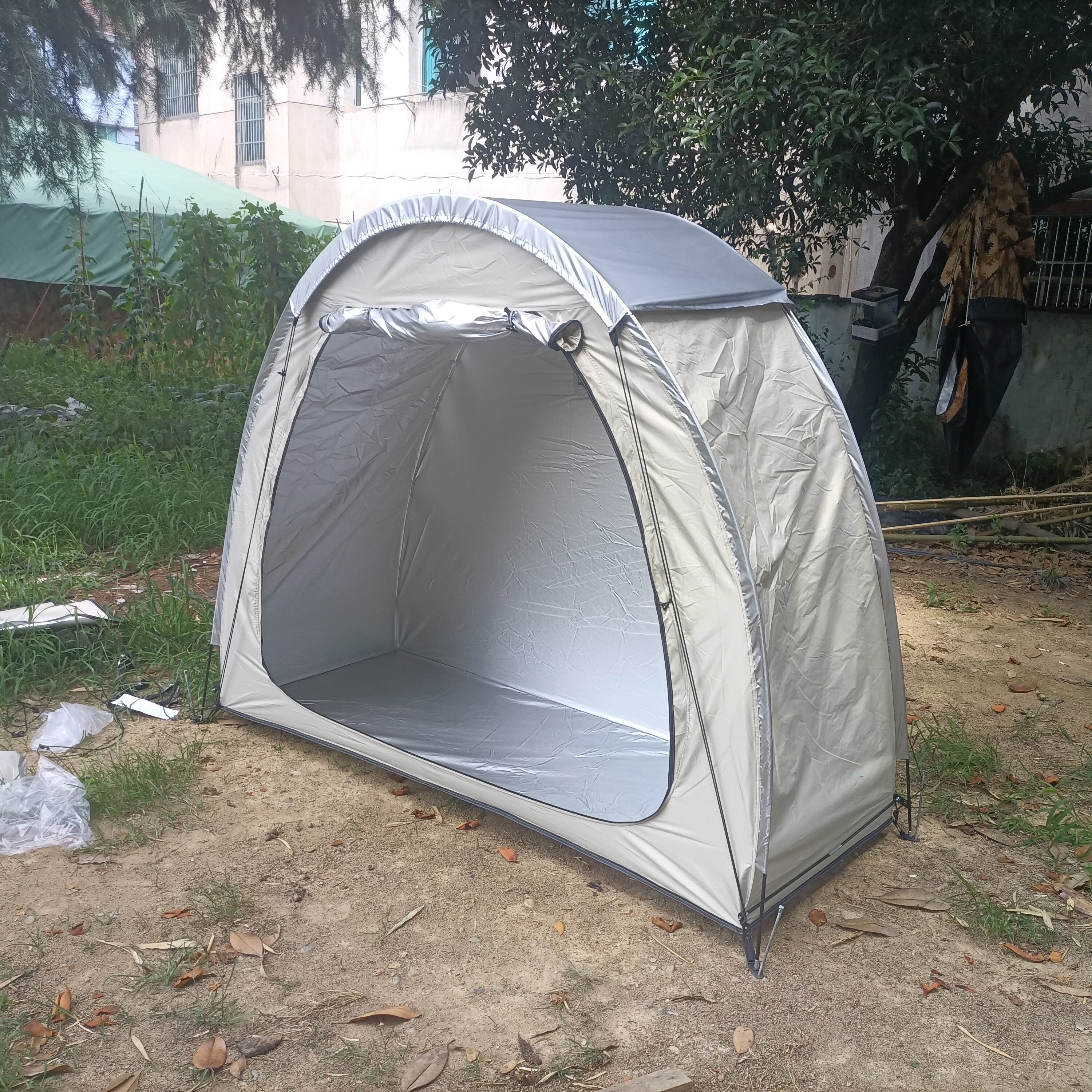 防暴雨加防雨罩深灰色騎行自行車帳篷儲物室帳篷,雙層山地車帳篷