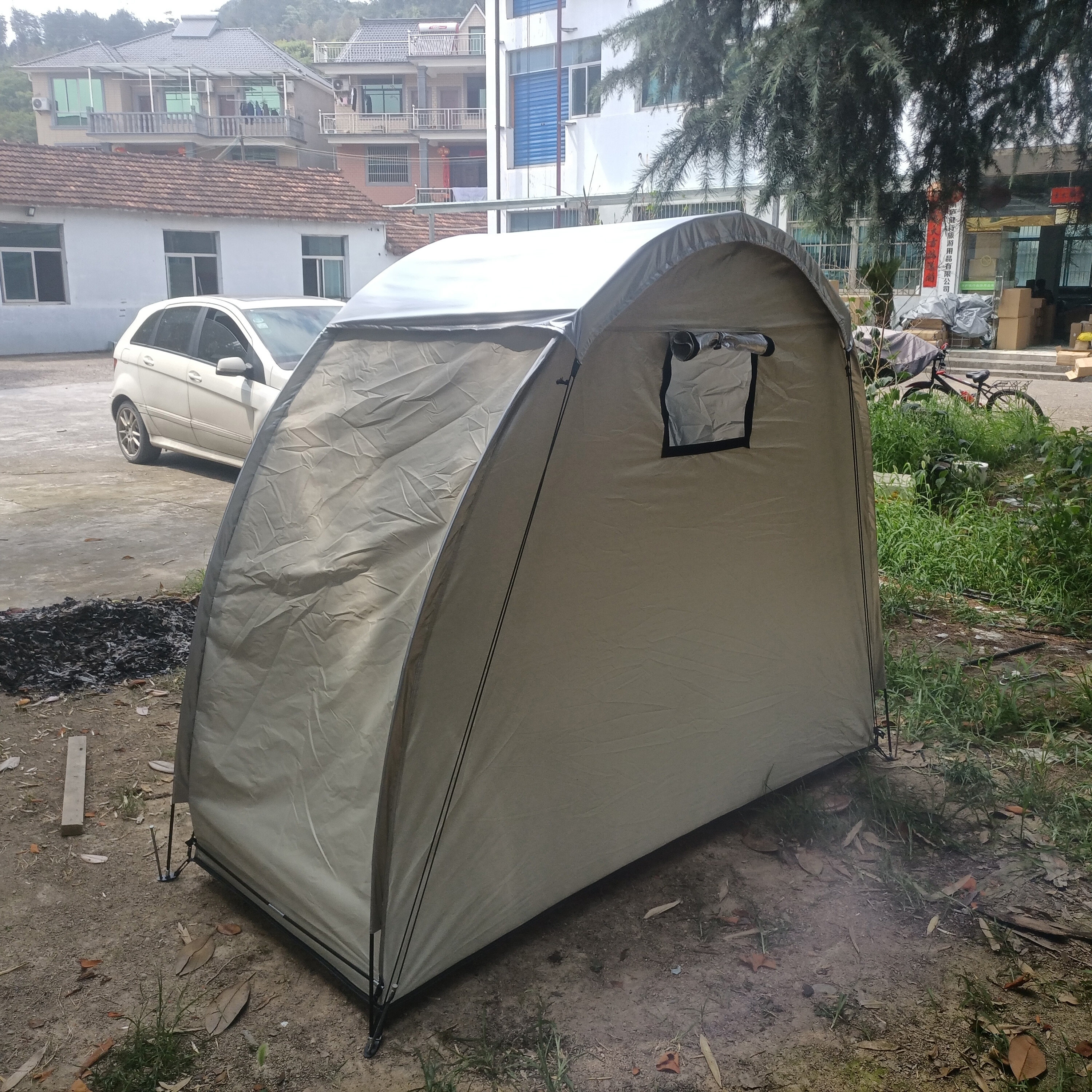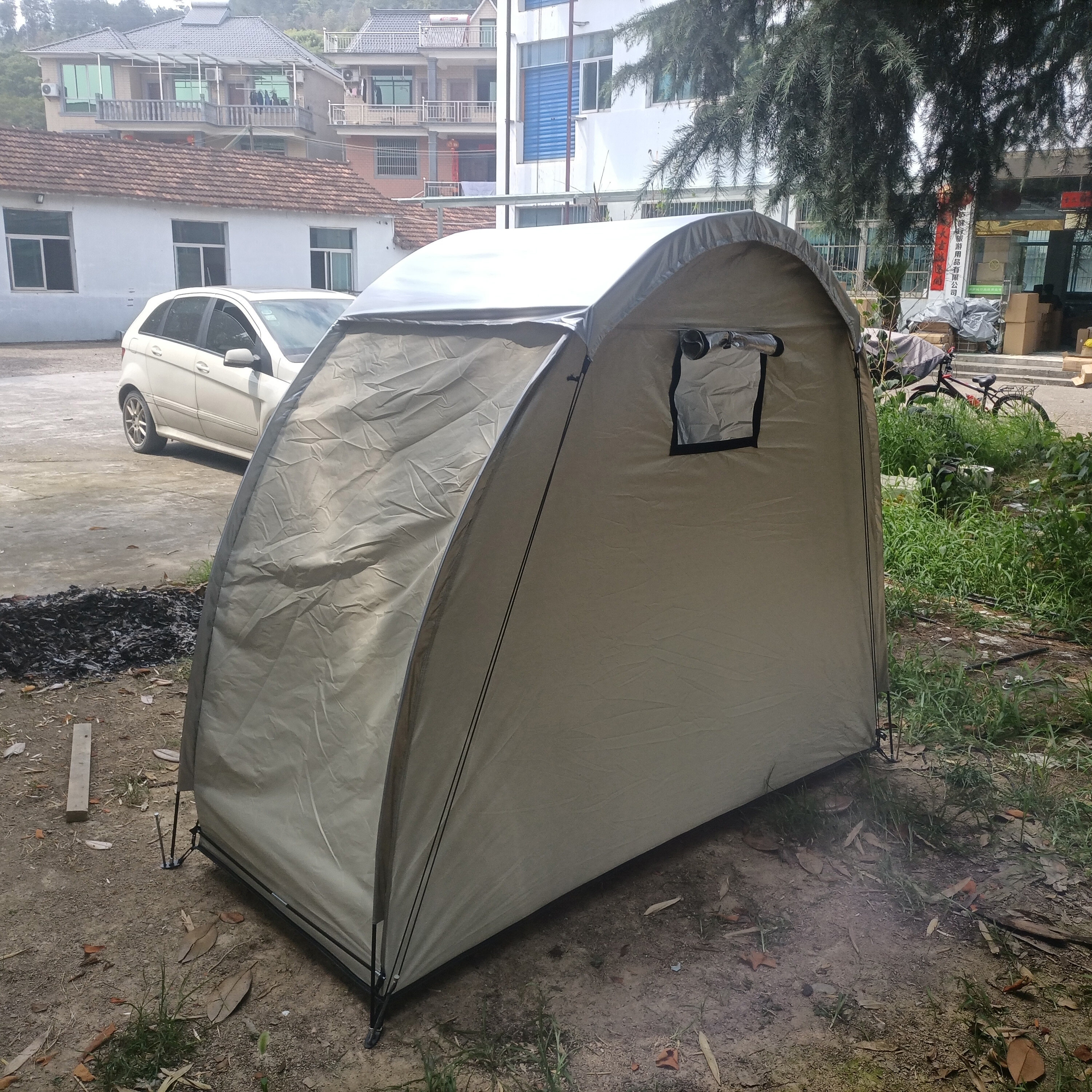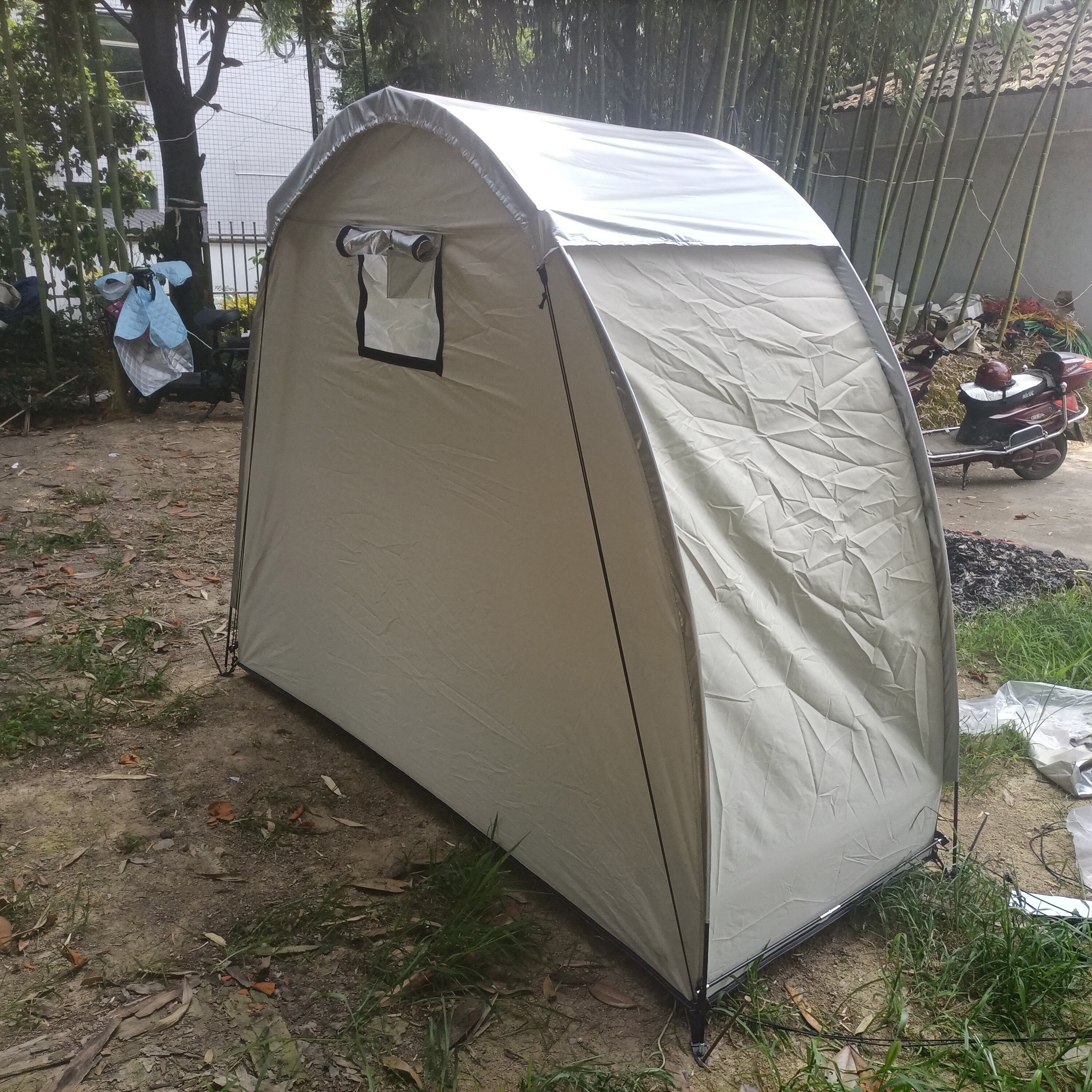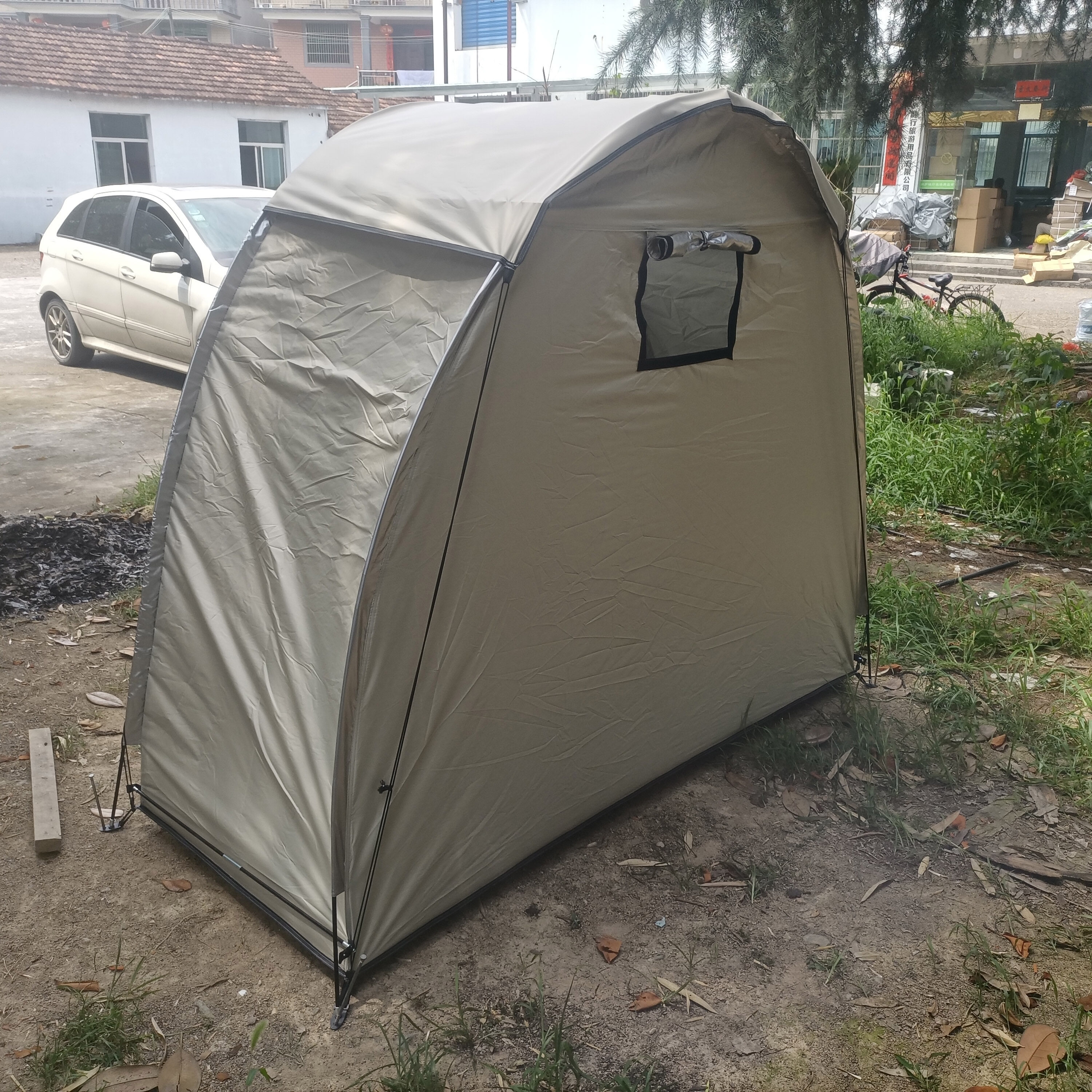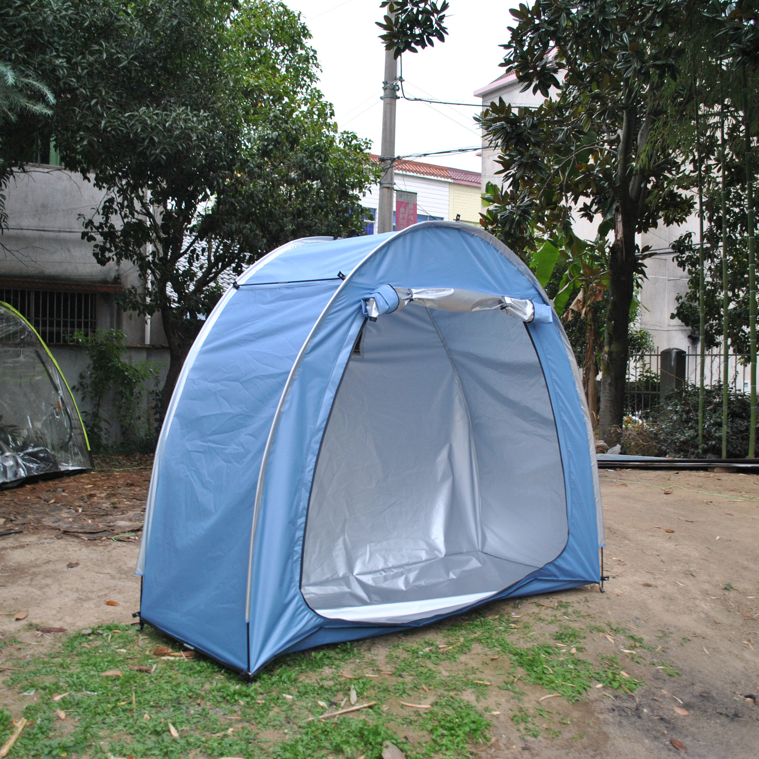 防暴雨加防雨罩深灰色騎行自行車帳篷儲物室帳篷,雙層山地車帳篷