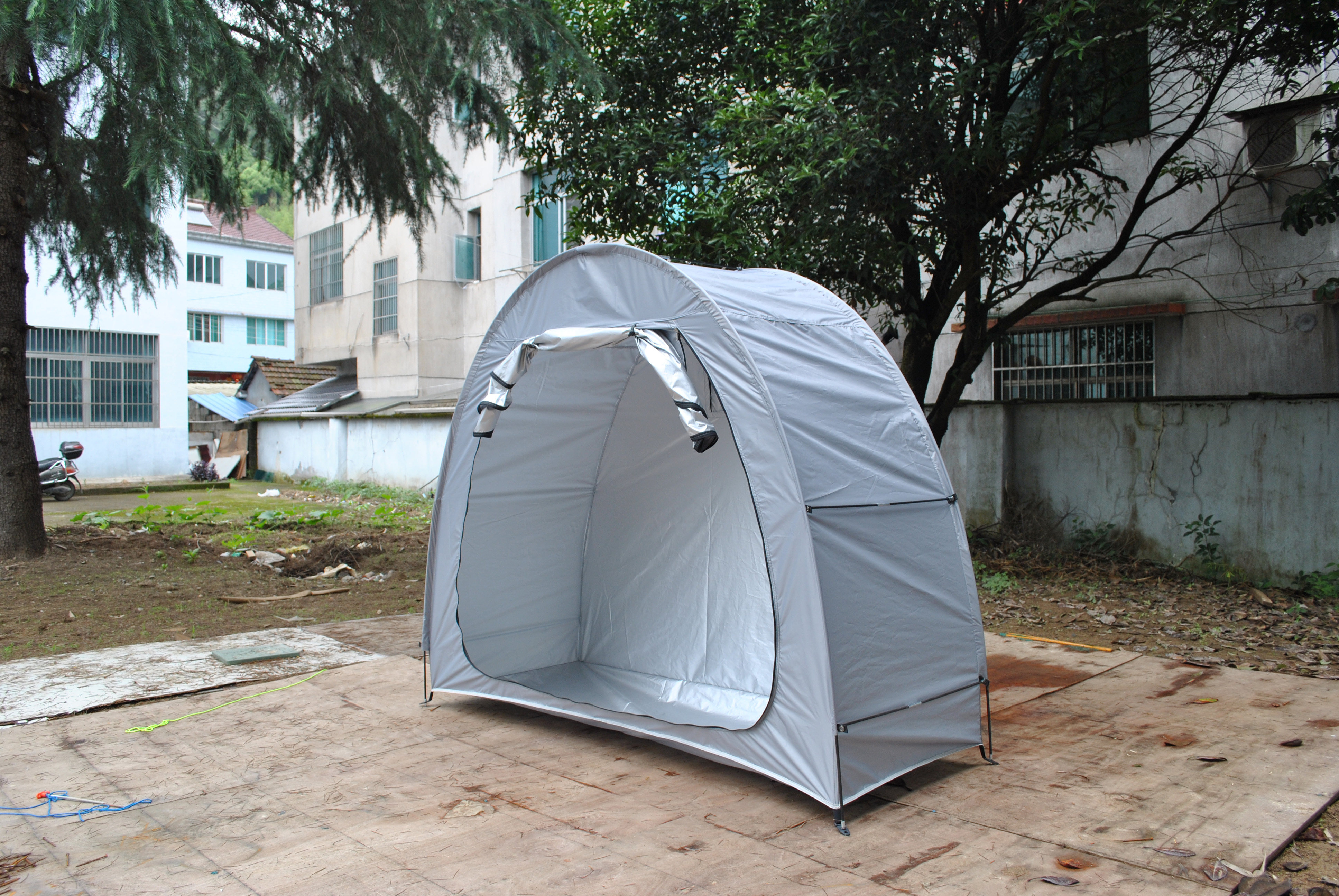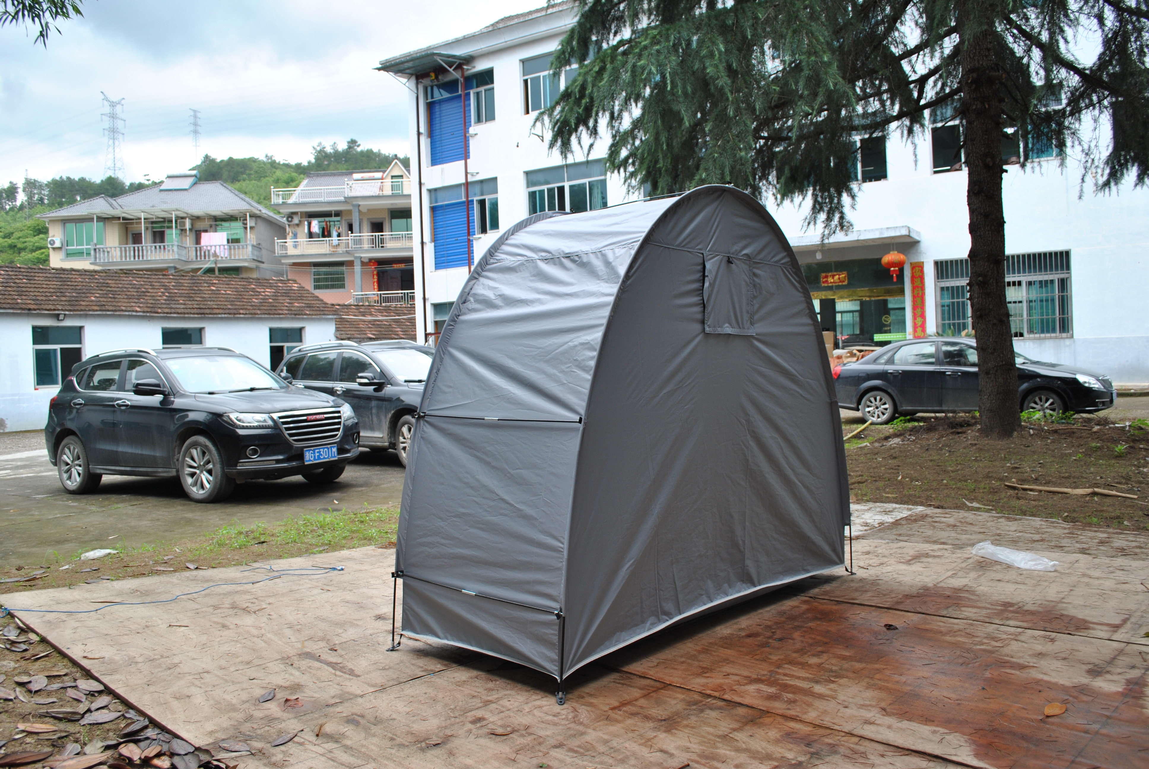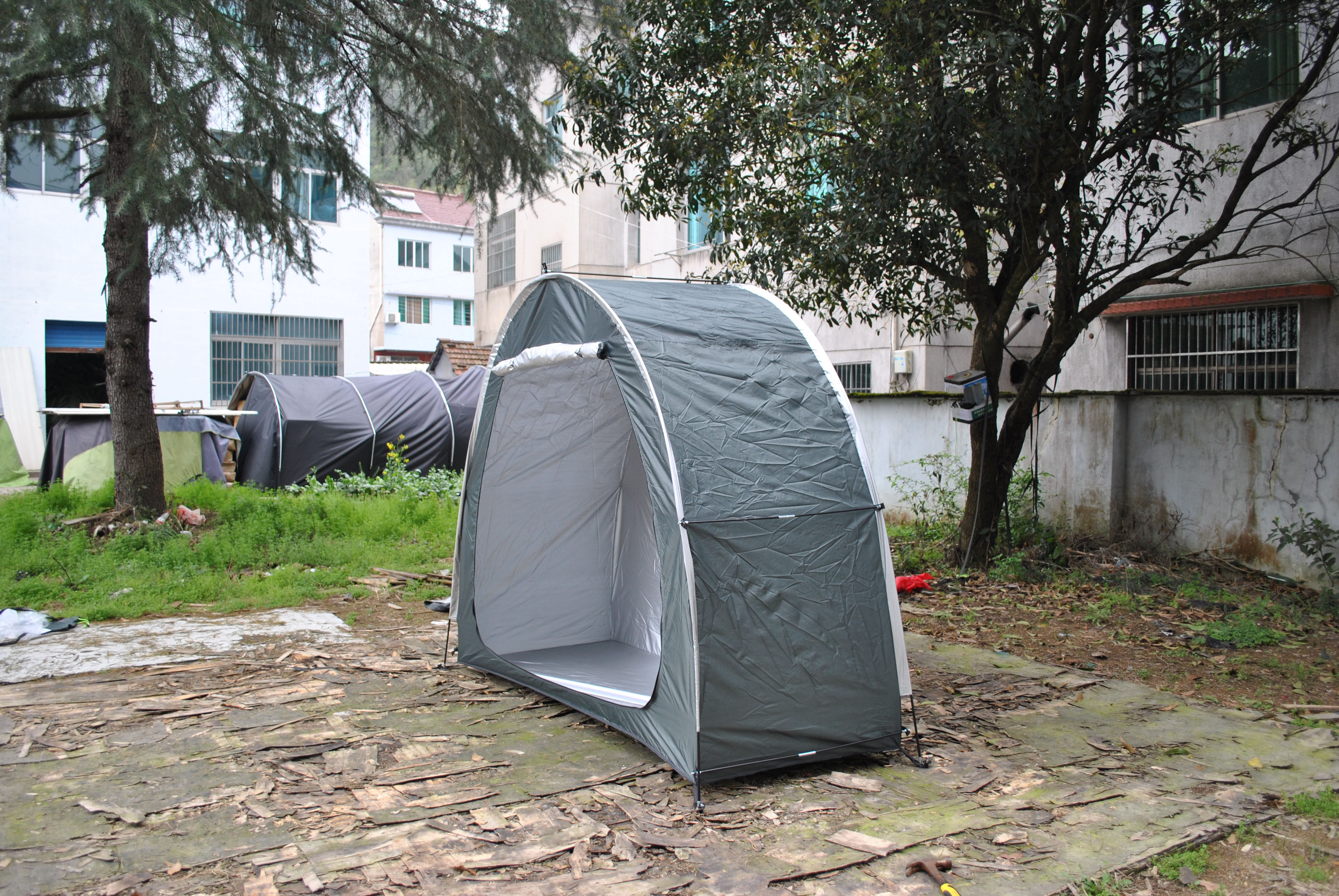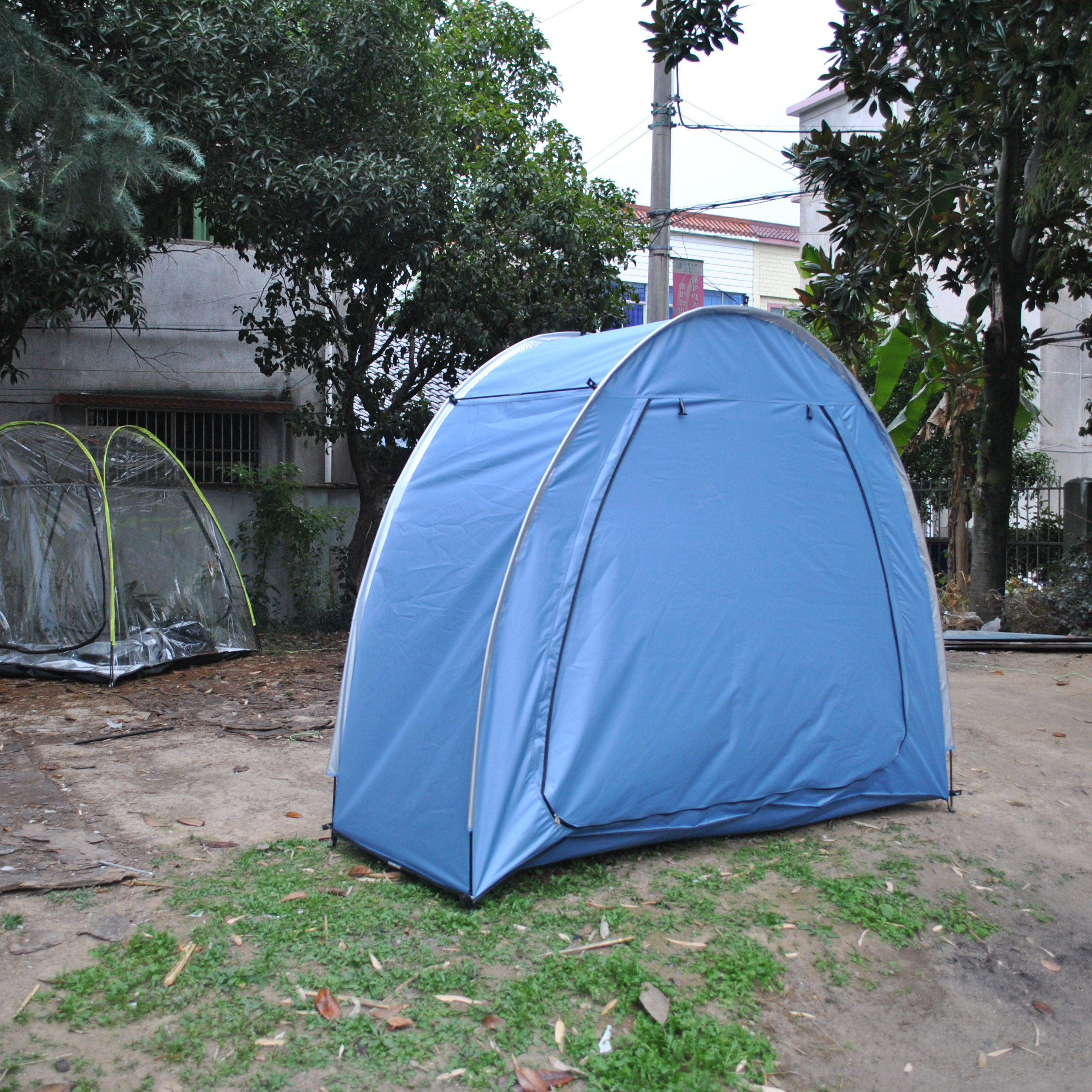防暴雨加防雨罩深灰色騎行自行車帳篷儲物室帳篷,雙層山地車帳篷