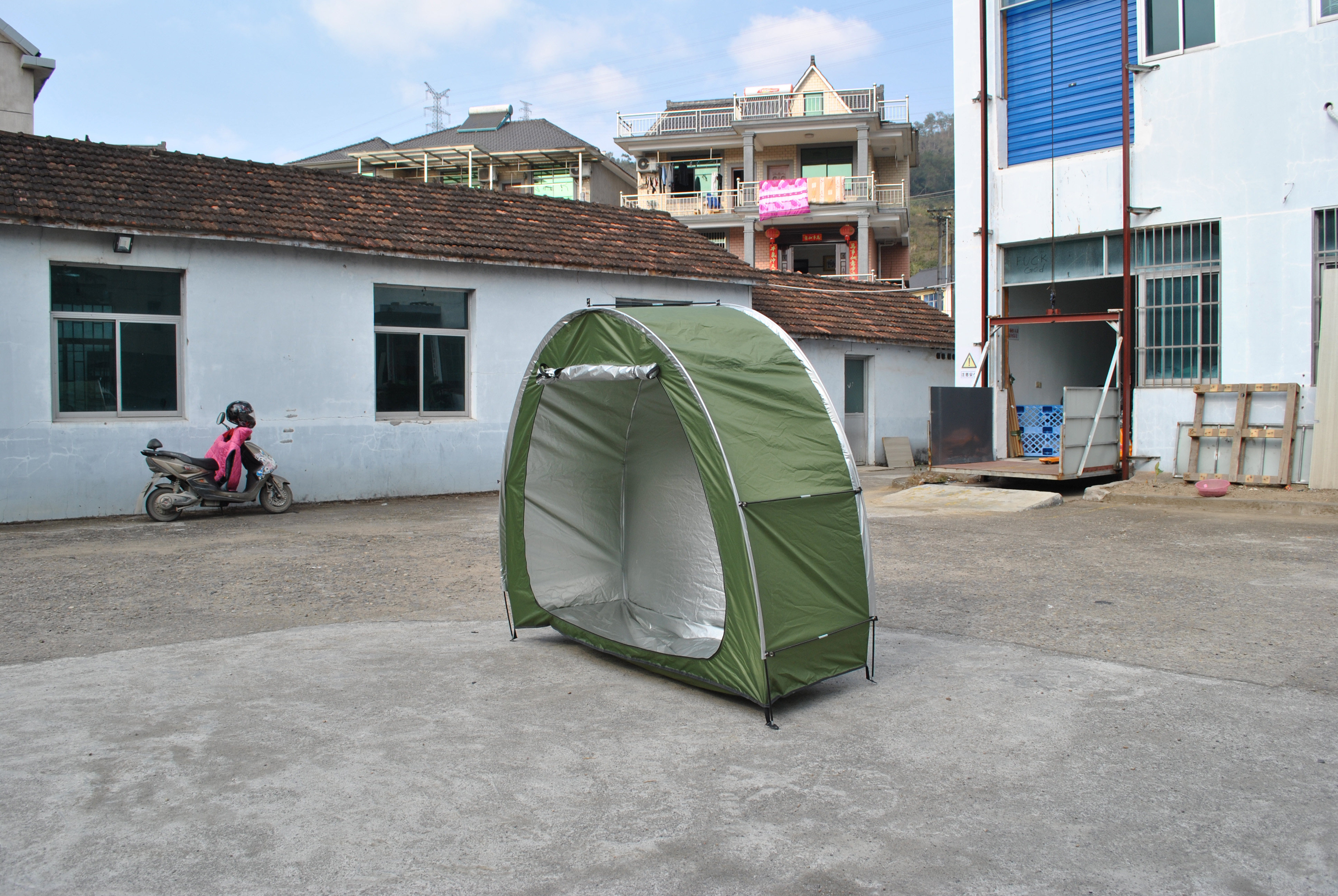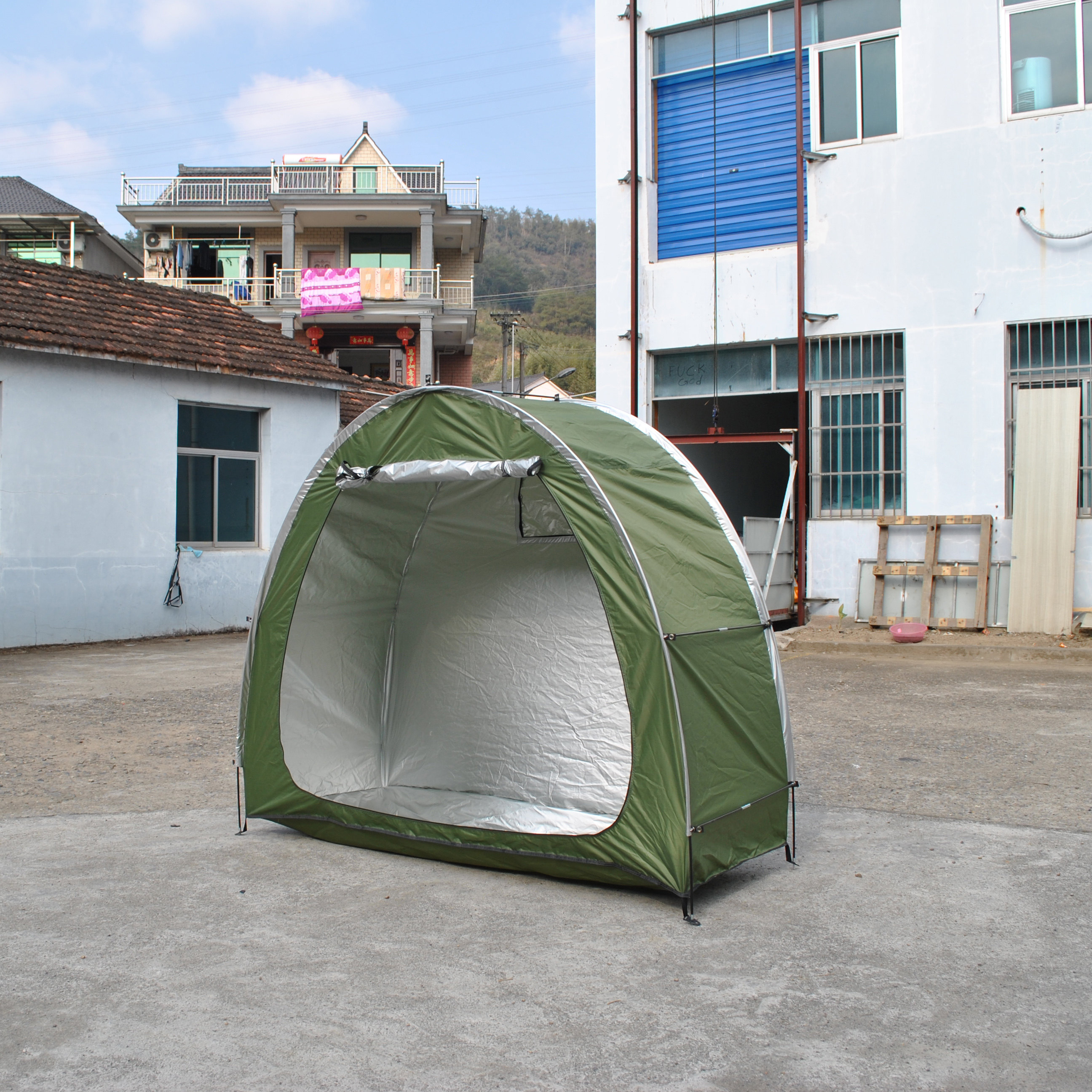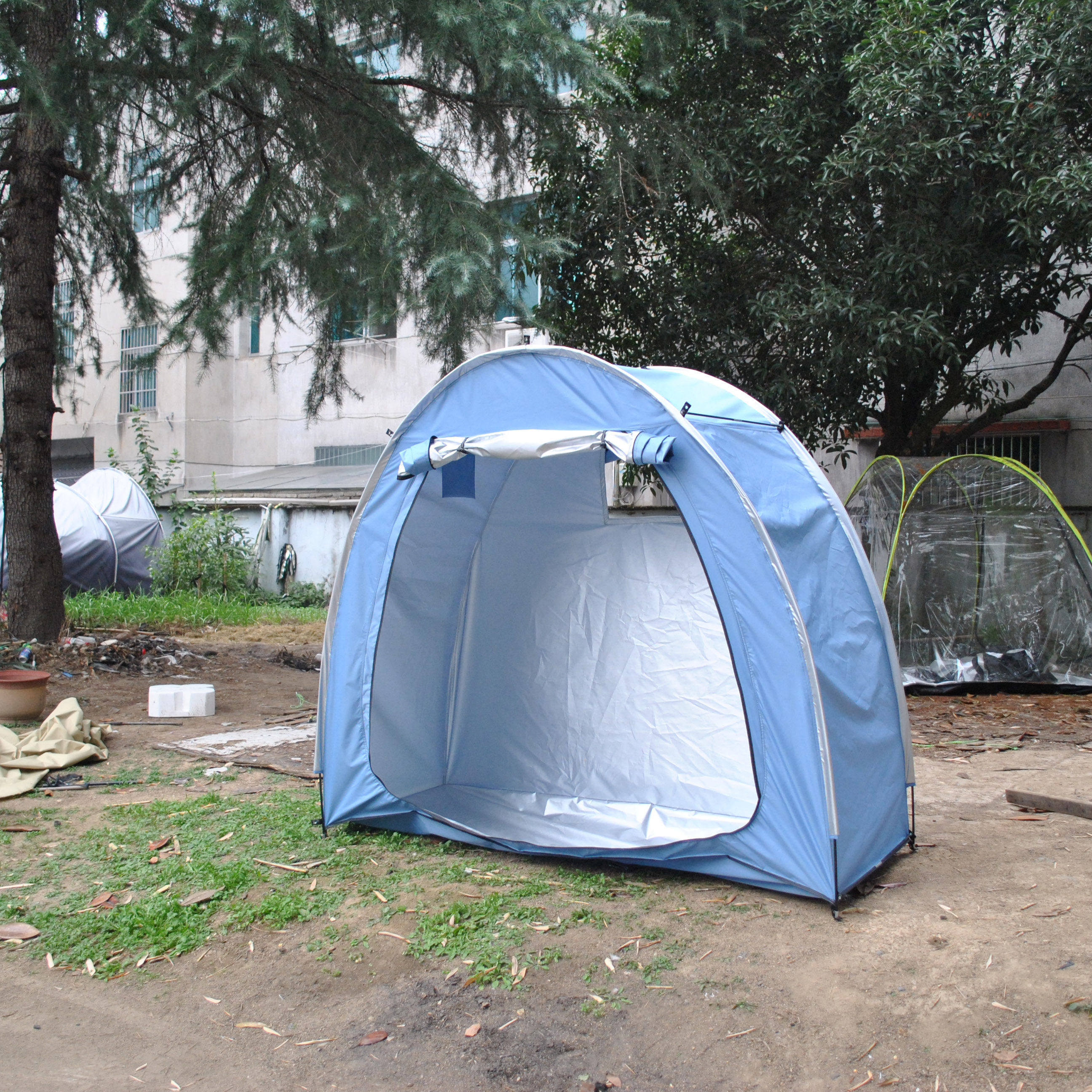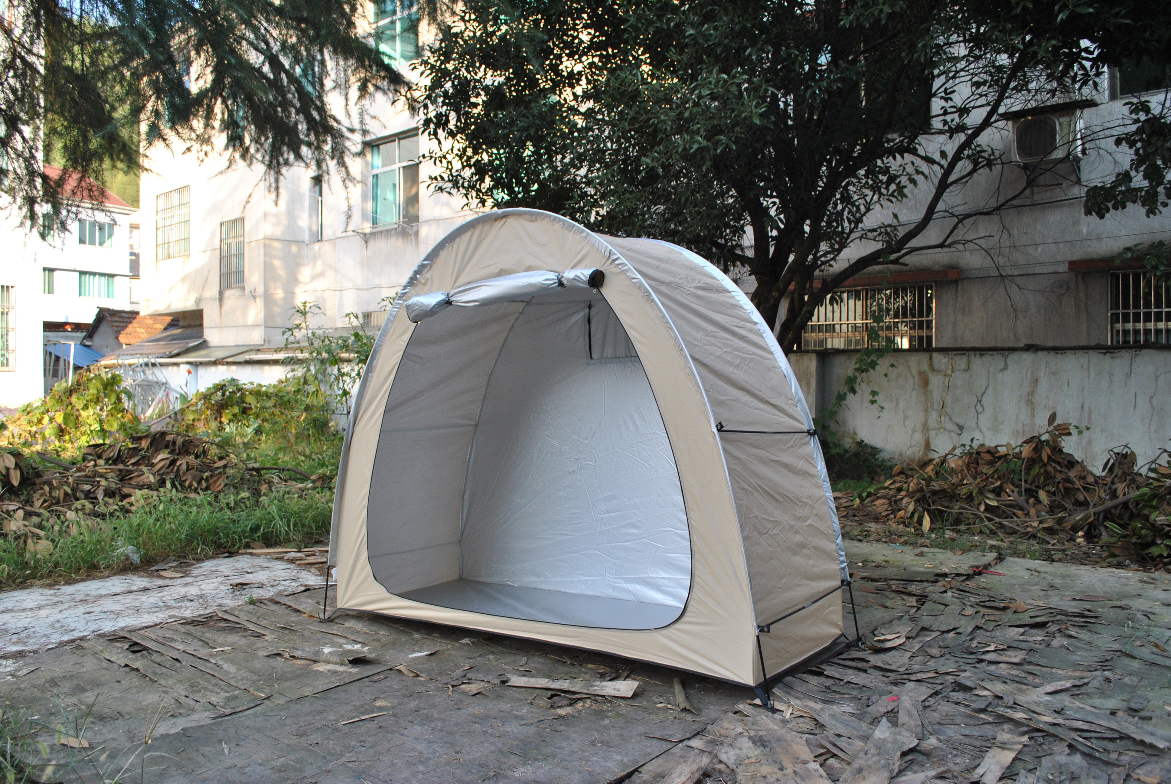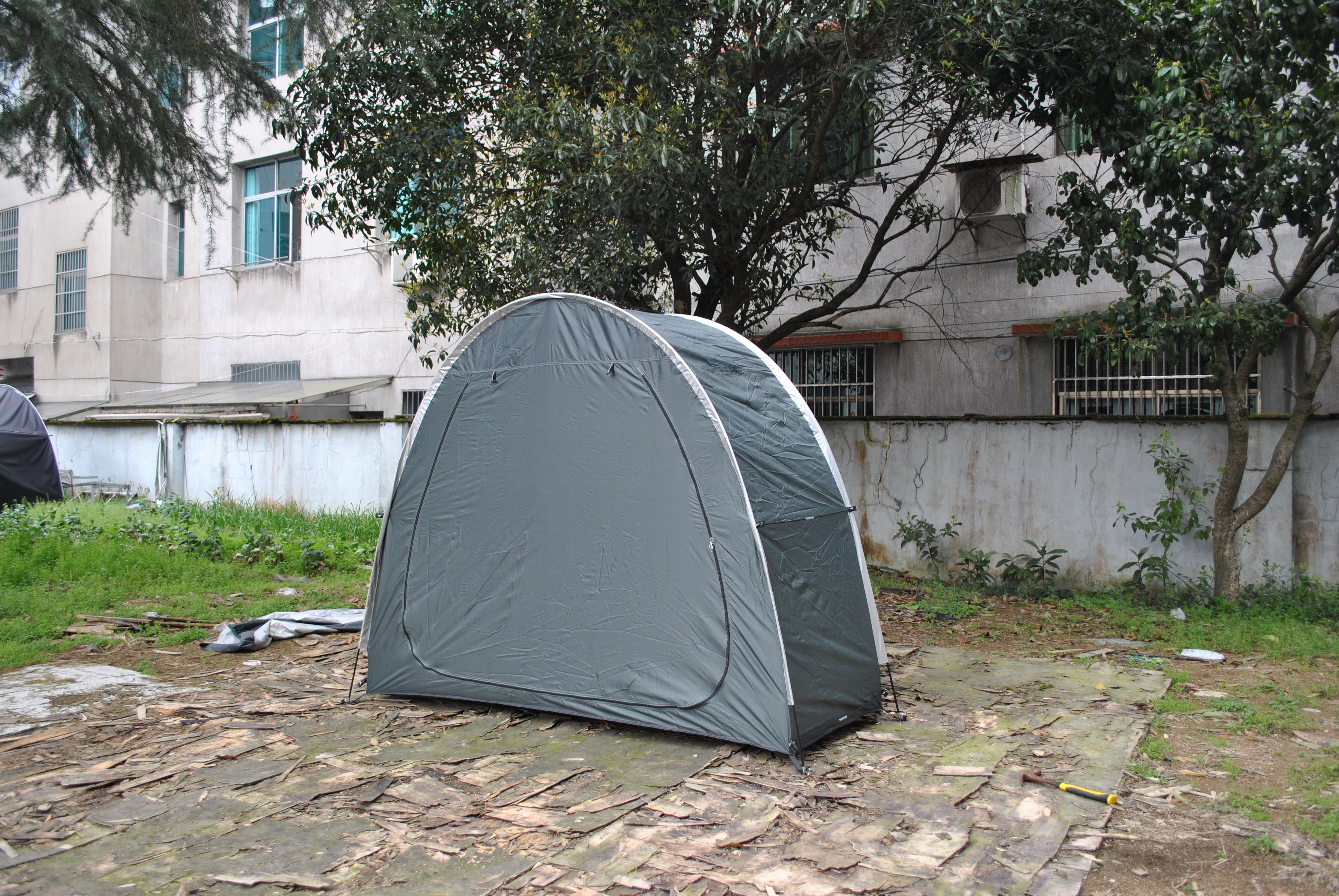 防暴雨加防雨罩深灰色騎行自行車帳篷儲物室帳篷,雙層山地車帳篷