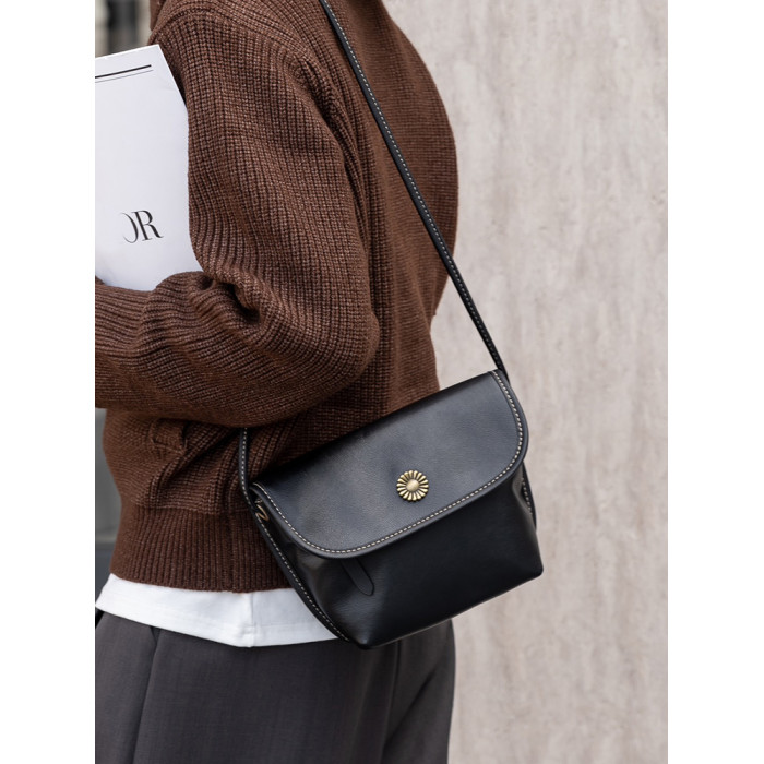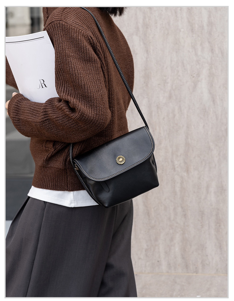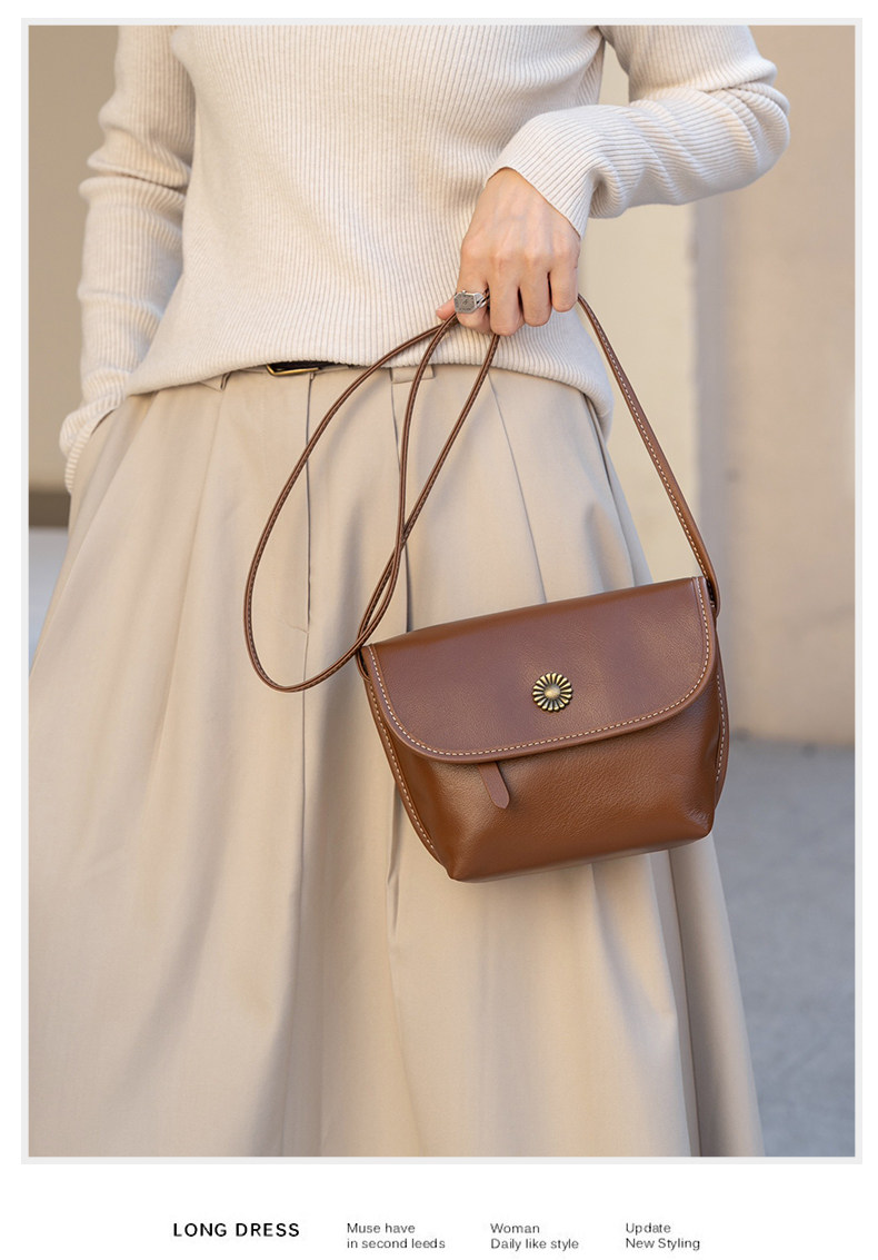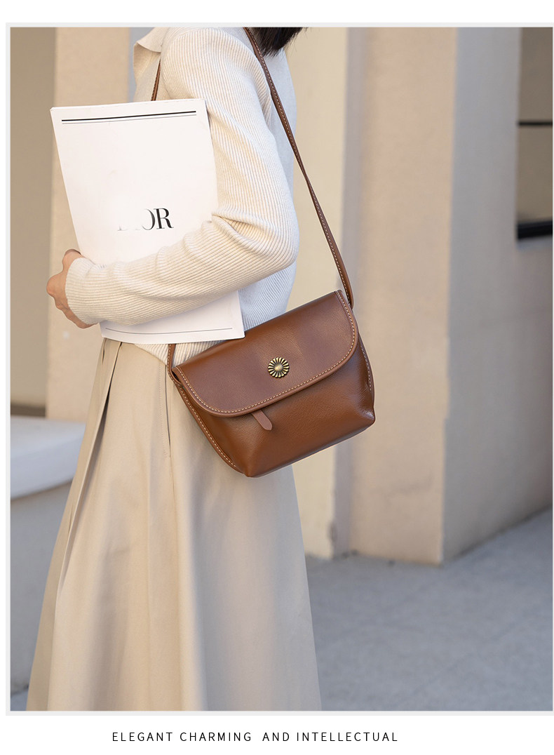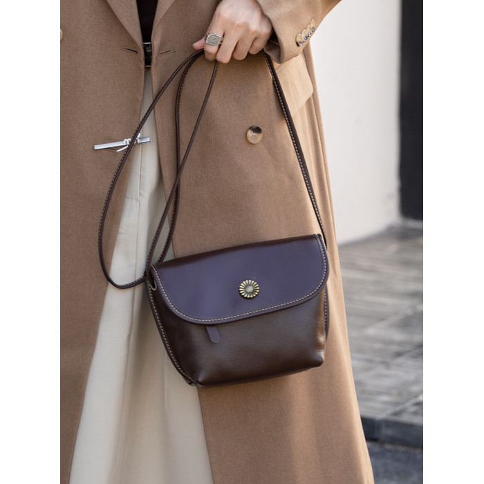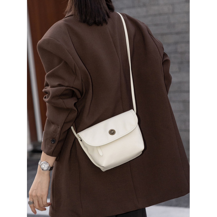 真皮小包包女2024新款美拉德復古女包軟牛皮斜後後背包簡約百搭馬鞍包