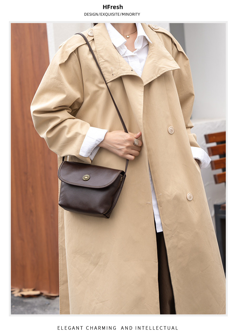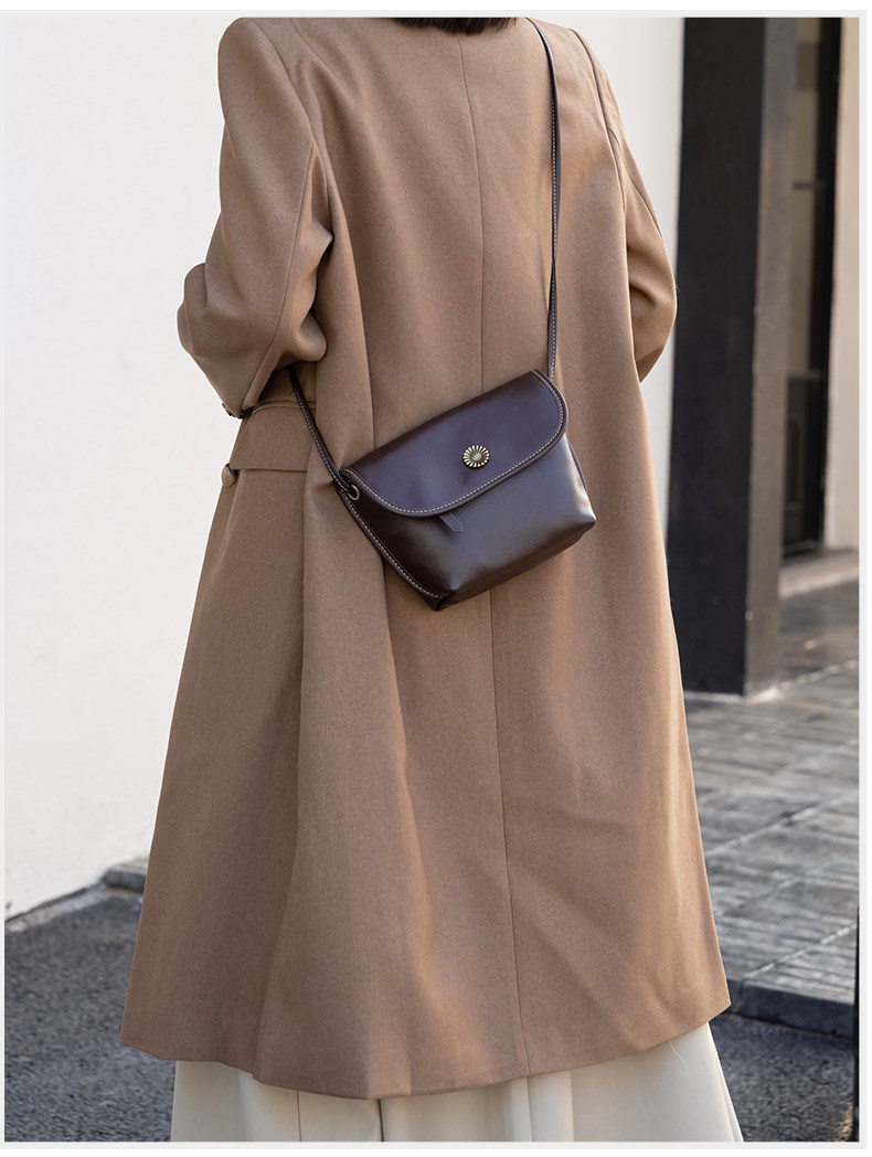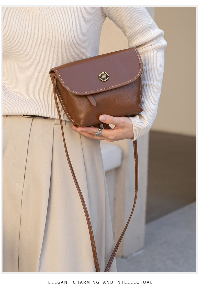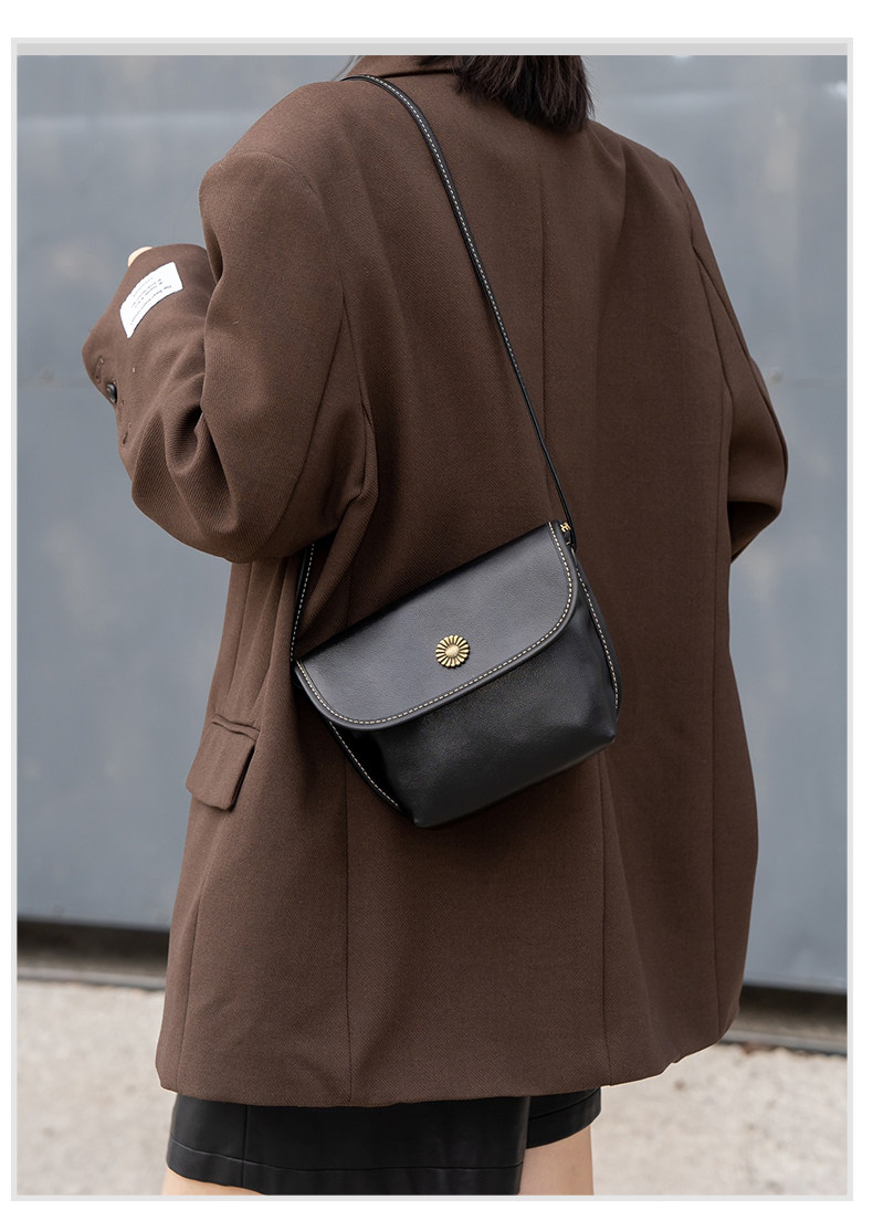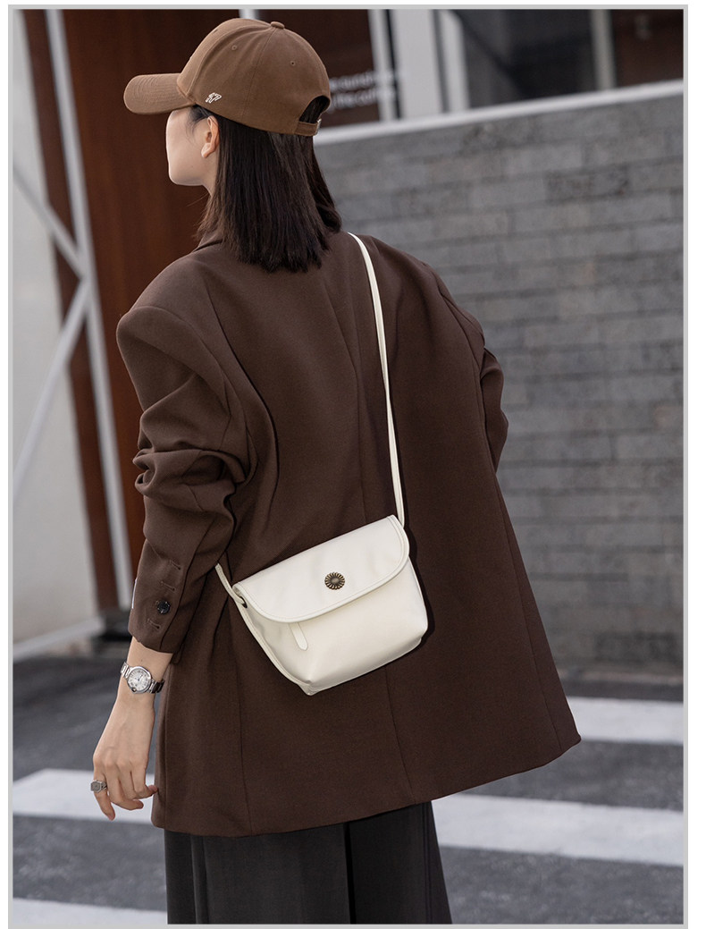 真皮小包包女2024新款美拉德復古女包軟牛皮斜後後背包簡約百搭馬鞍包