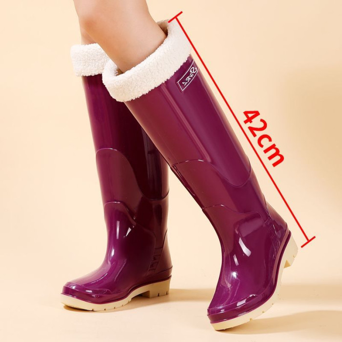高筒女士加絨防滑水鞋雨鞋雨靴膠鞋耐磨防水水靴時尚成人套鞋保暖