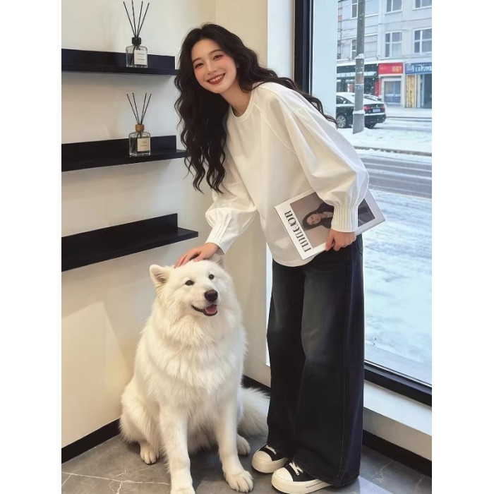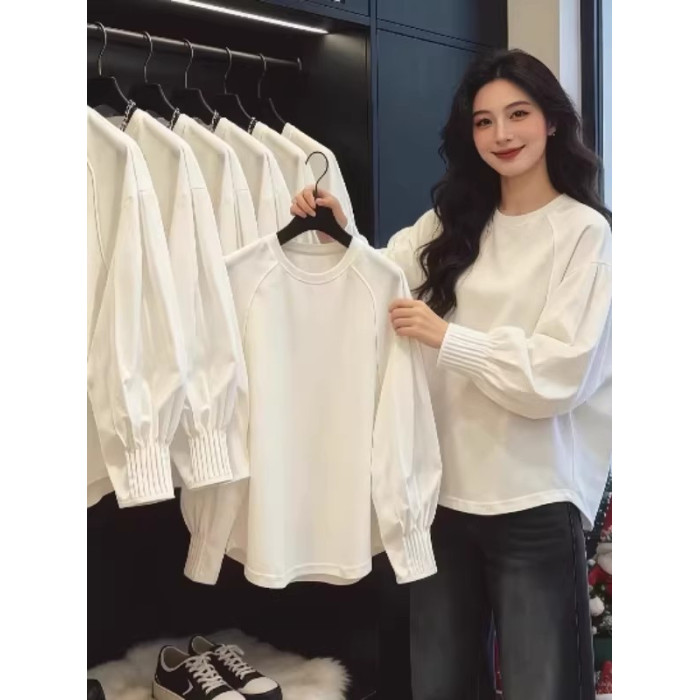 高級感輕奢白色燈籠袖襯衫女2026年早春大碼胖mm寬鬆百搭長袖上衣