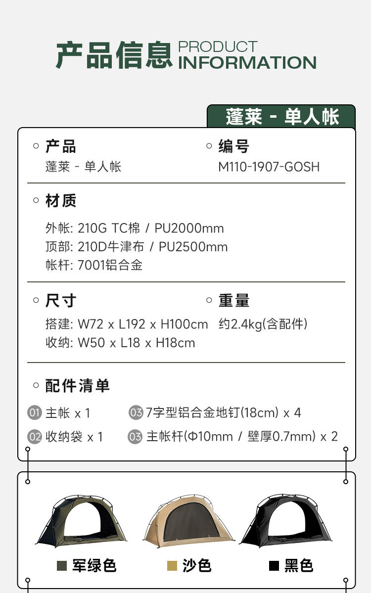 春山蓬萊戶外露營獨立內帳TC棉透氣單人雙人三人袋鼠帳棉布帳篷