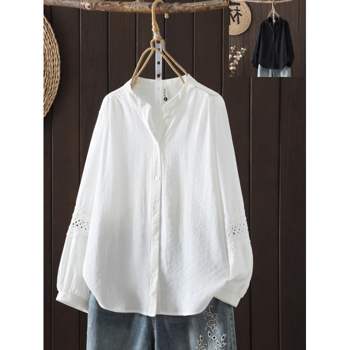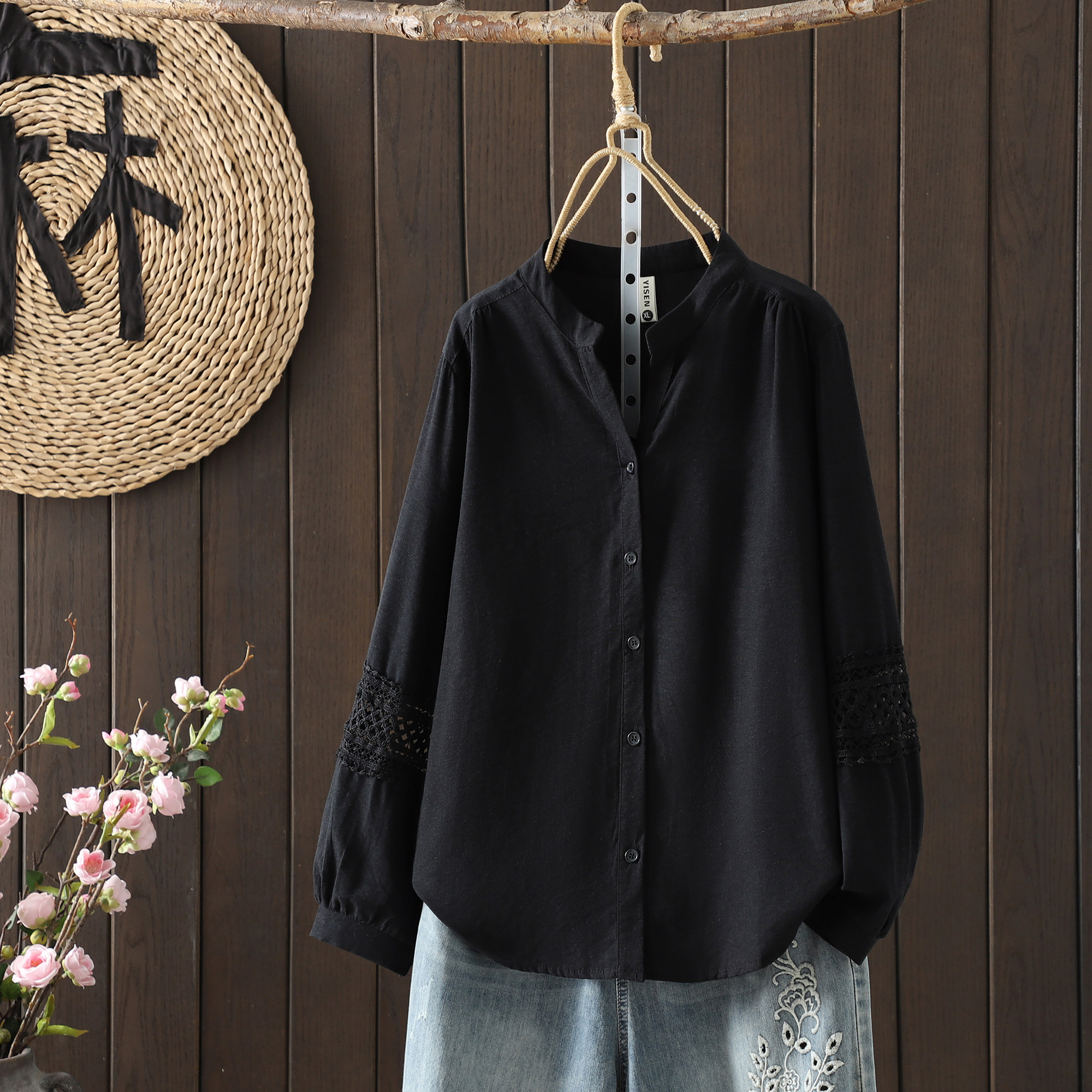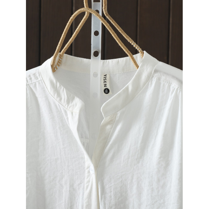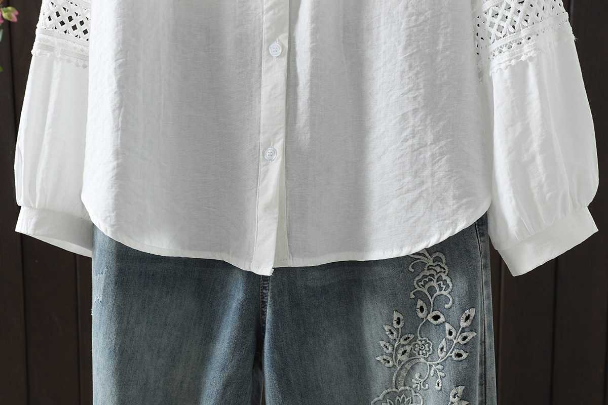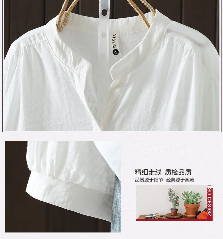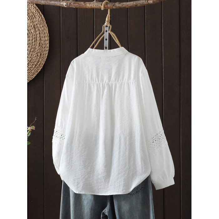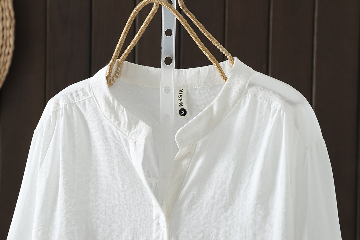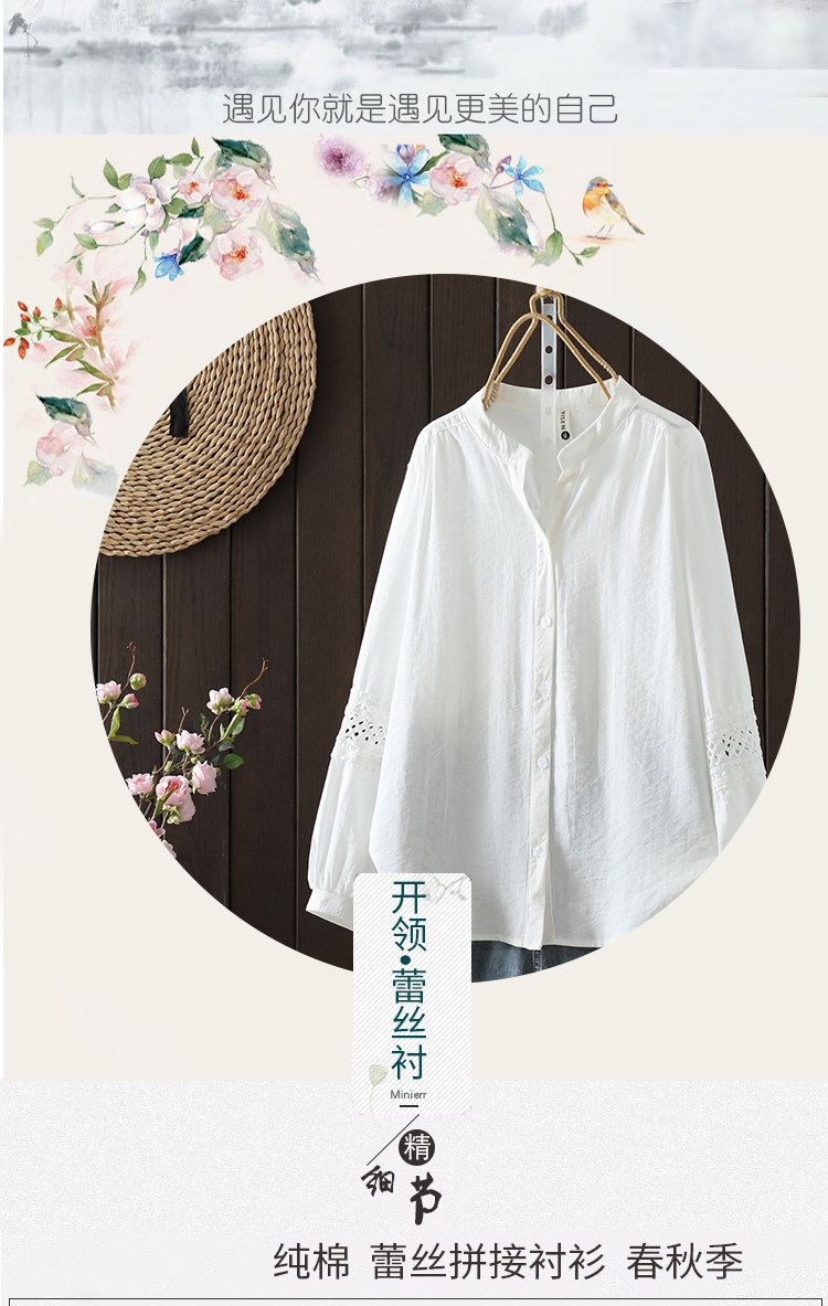 歐貨設計感V領白襯衫女長袖高級輕奢感上衣寬鬆休閒純棉大碼秋季