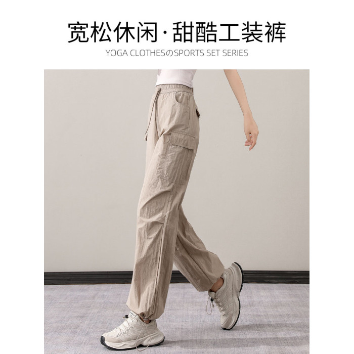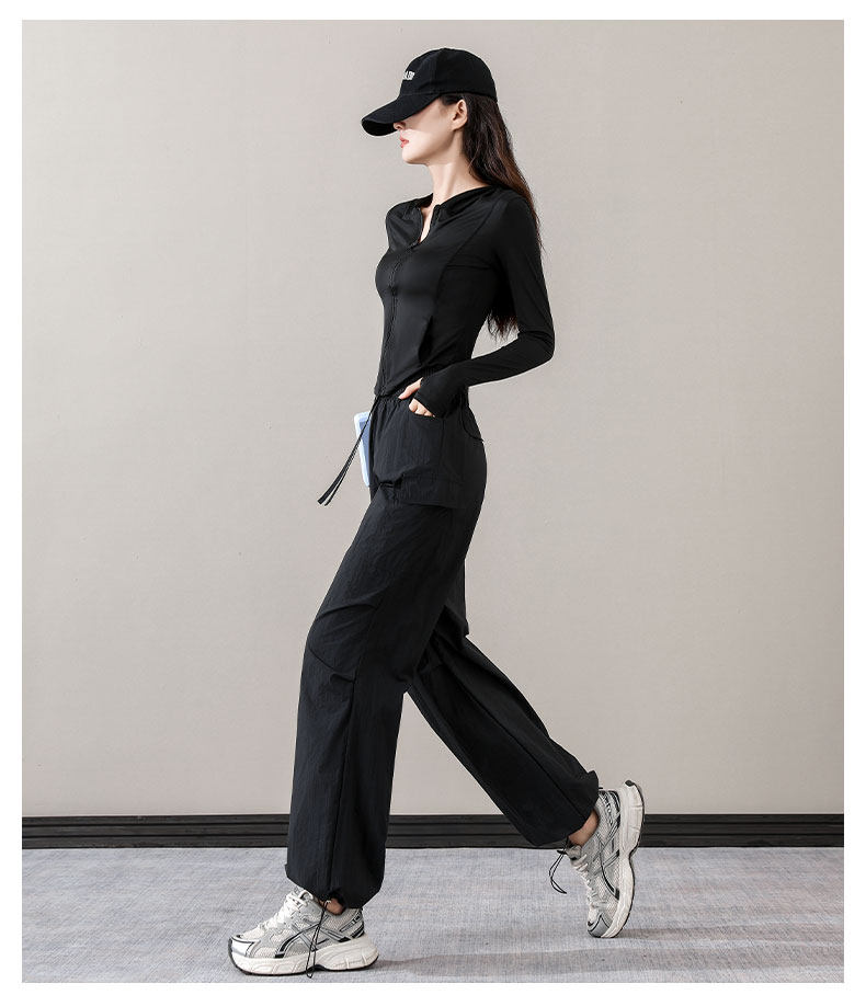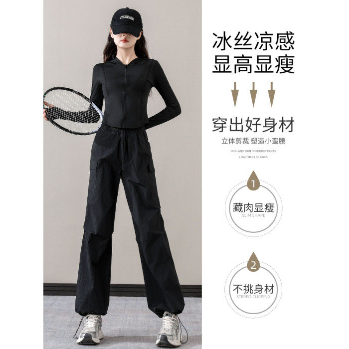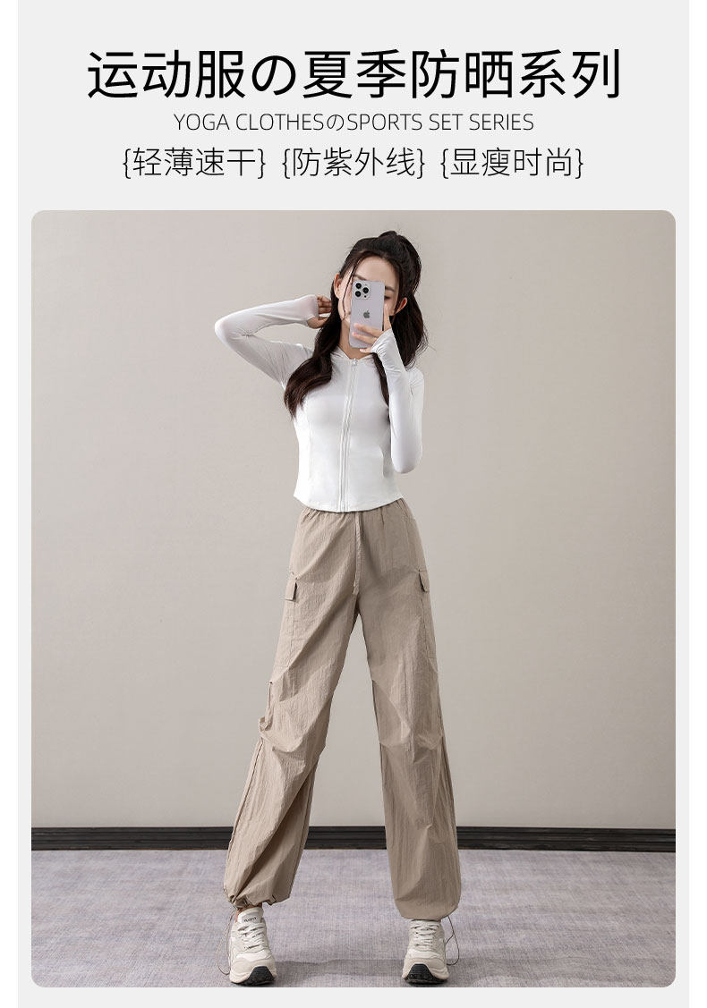 時尚防曬服套裝女夏季薄款戶外徒步登山冰絲速乾衣寬鬆休閒工裝褲