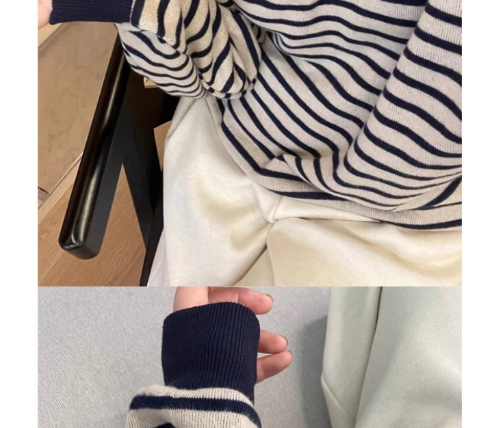 爆款店主自畱百搭條紋圓領撞色小衆寬鬆顯瘦好看條紋德絨上衣